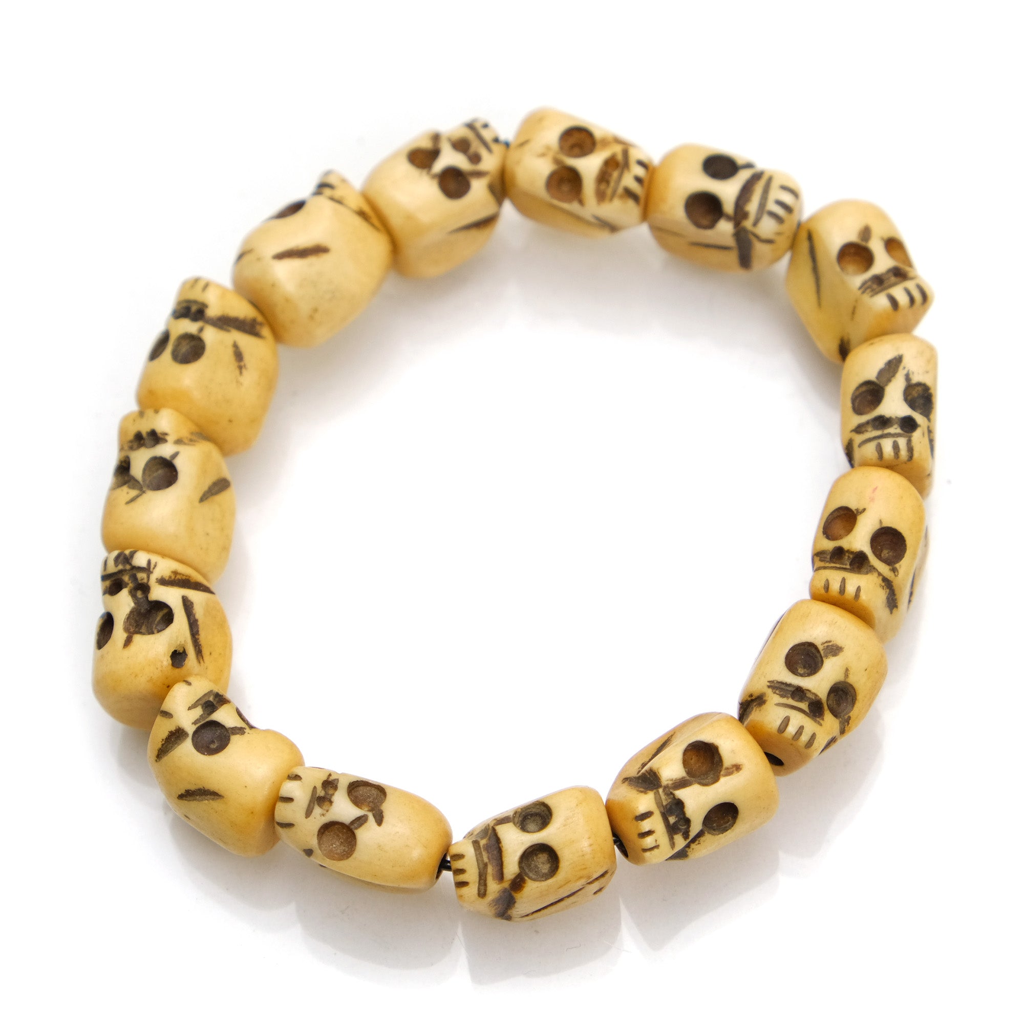Skull Beads in Hand Carved Cow Bone Stretch Bracelet