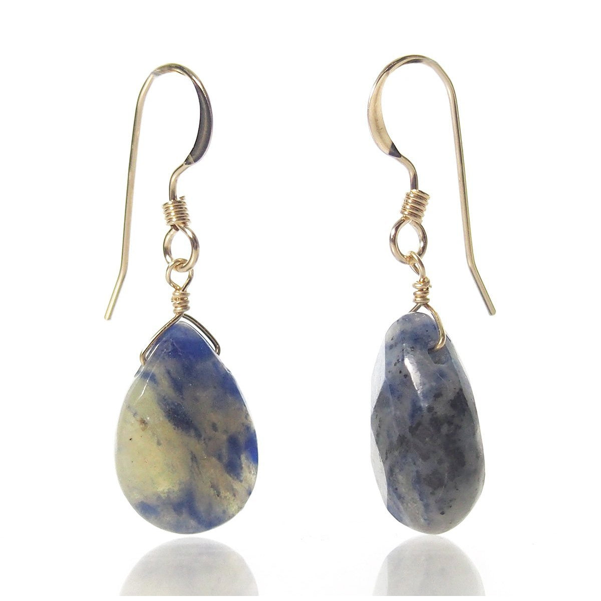 Sodalite Flat Drop Earrings with Gold Filled French Earwires