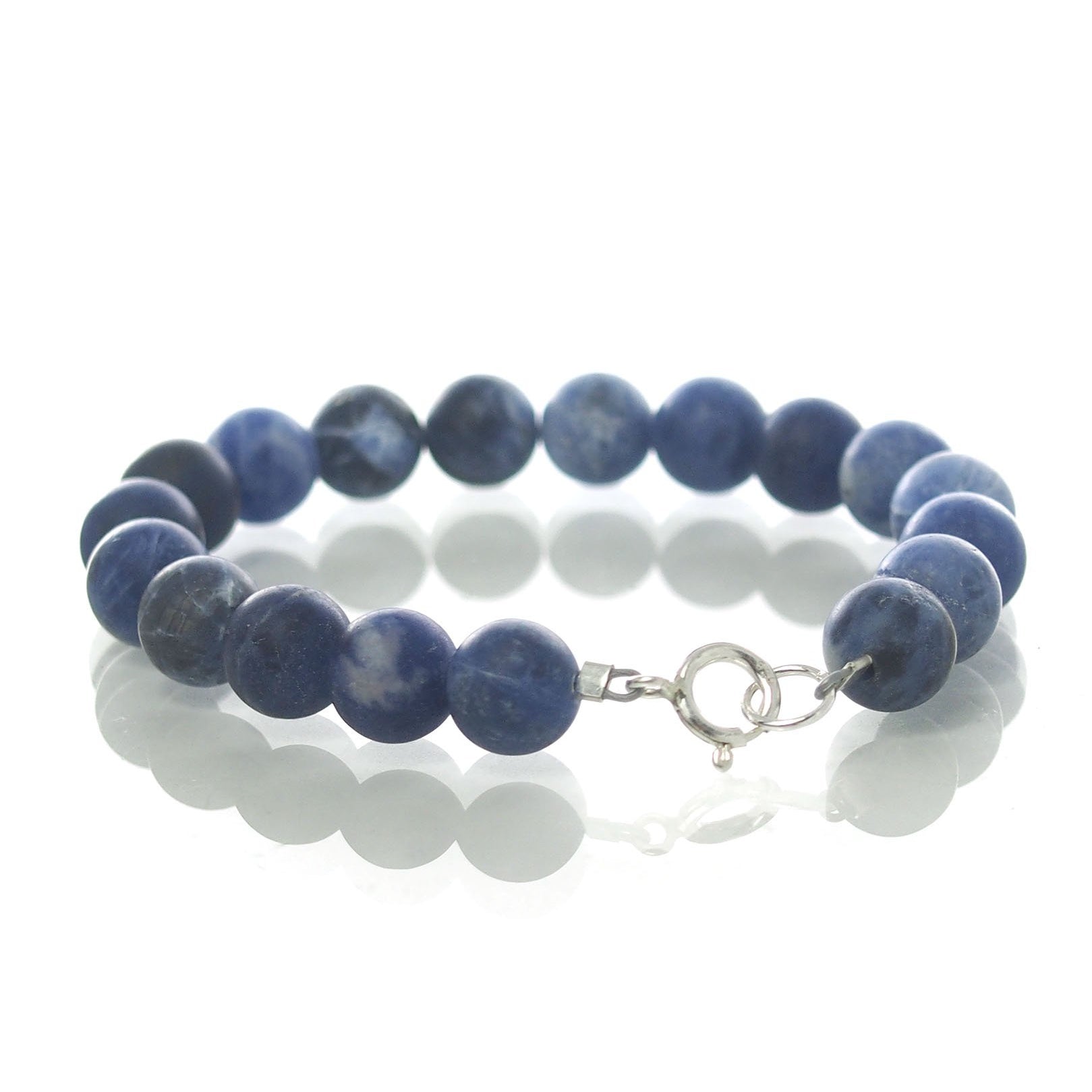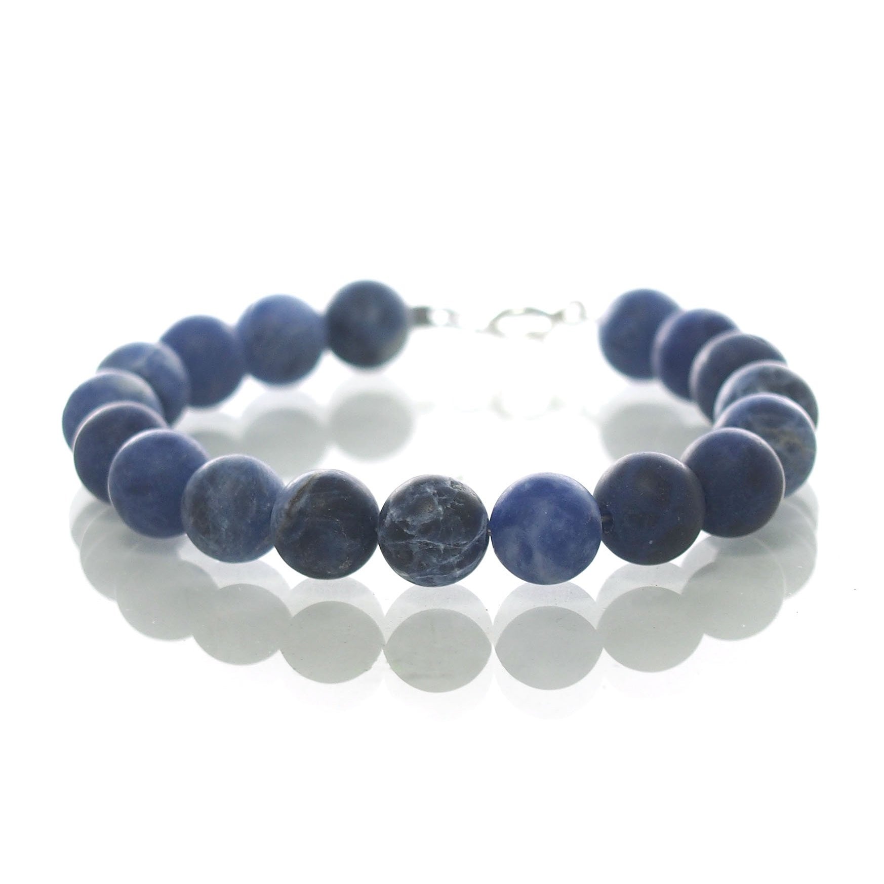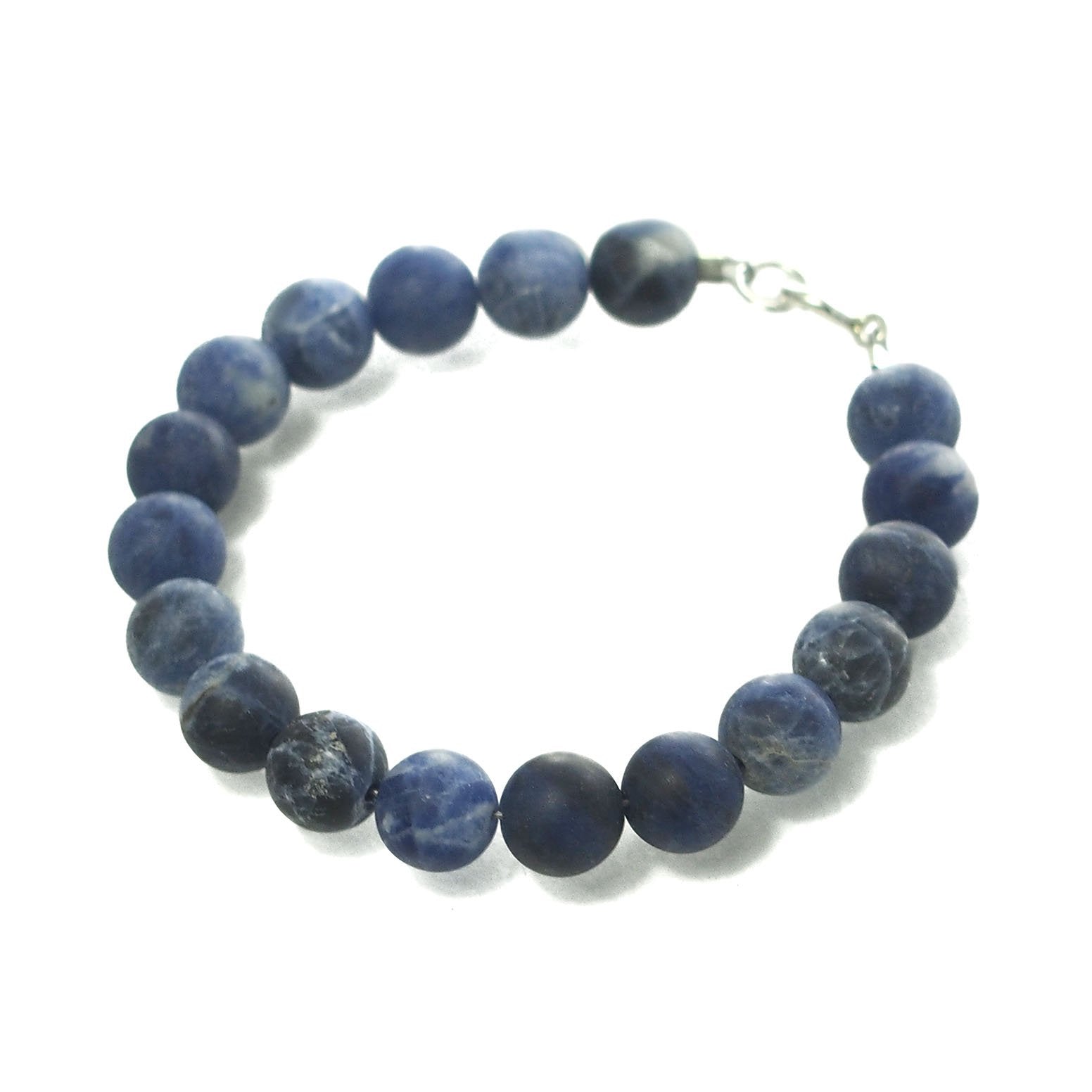Sodalite Matte 8mm Smooth Round Bracelet with Sterling Silver Spring Ring Clasp