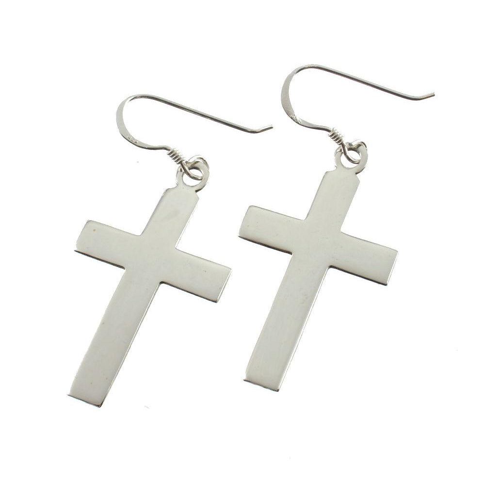 Sterling Silver Plain Cross Earrings