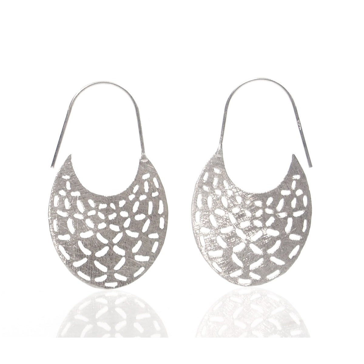 Sterling Silver Brushed Oval Cutout Basket Earrings