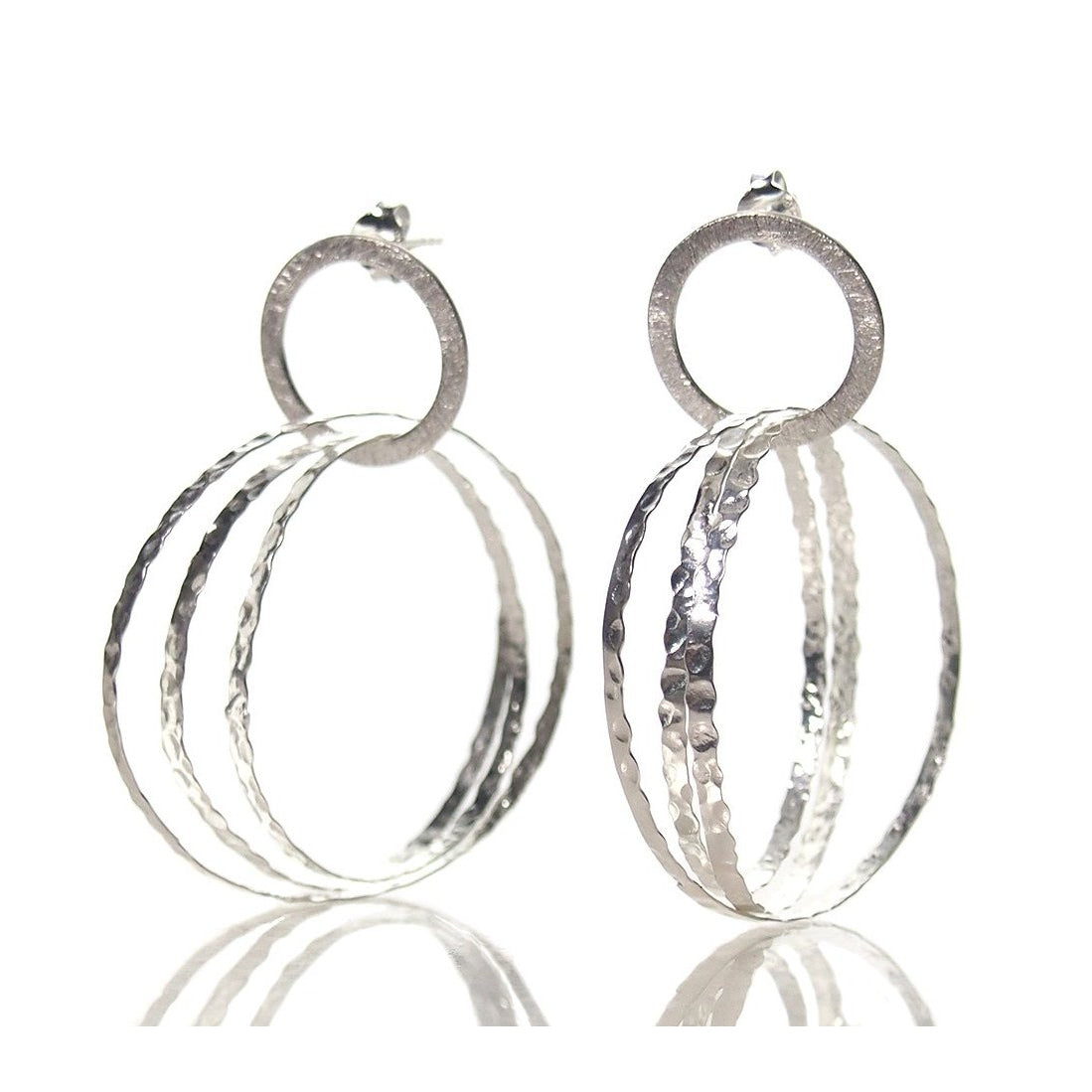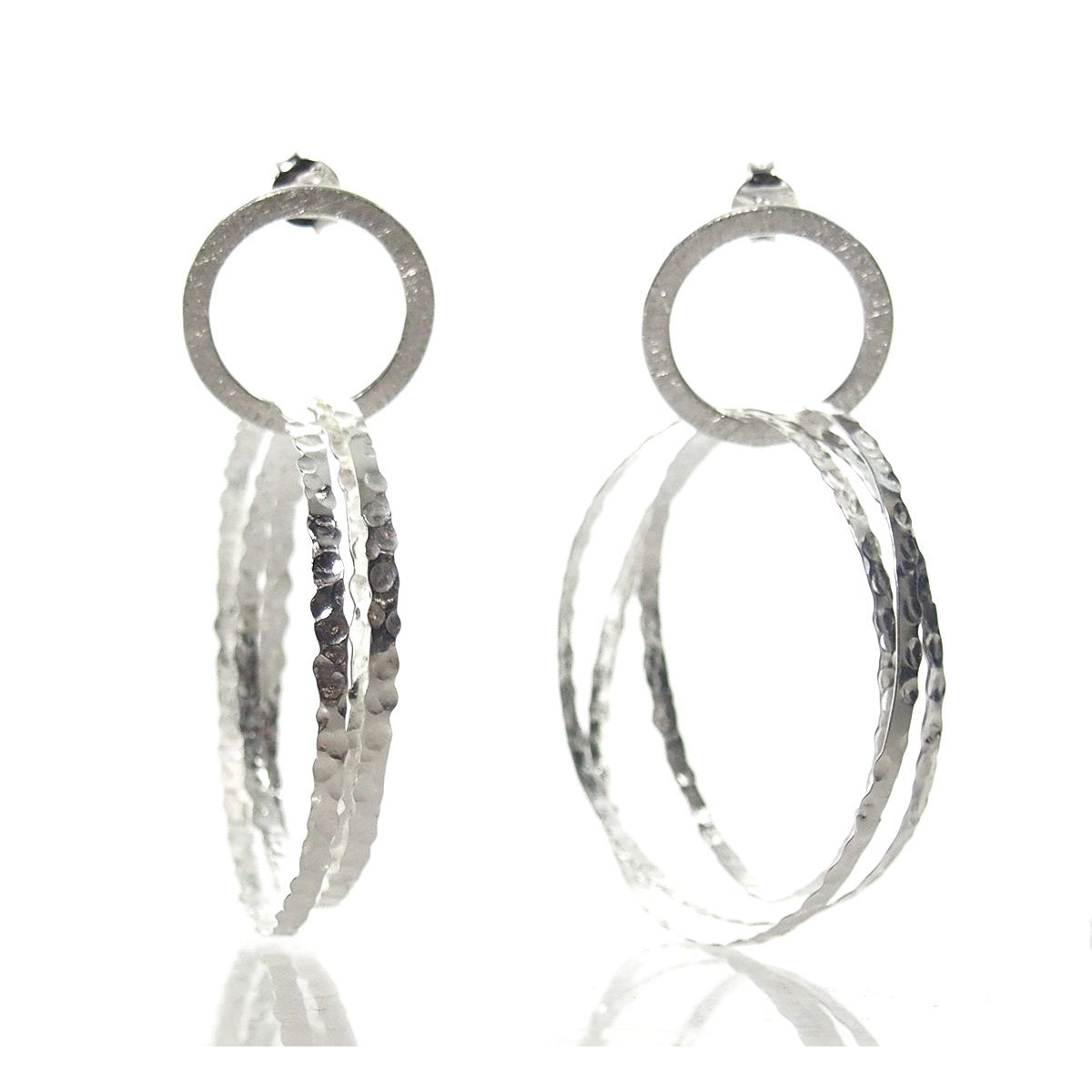 Sterling Silver Brushed Triple Hoop with Post Earrings