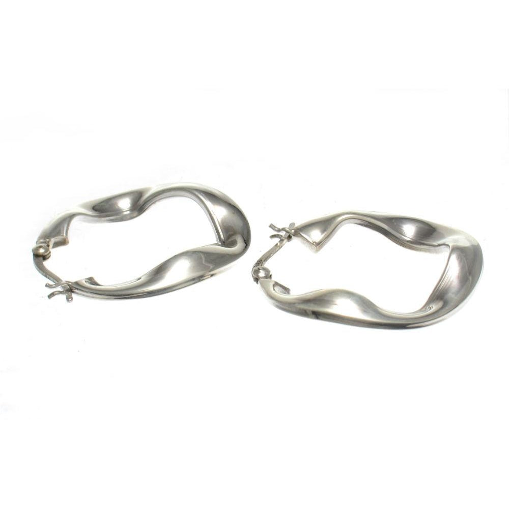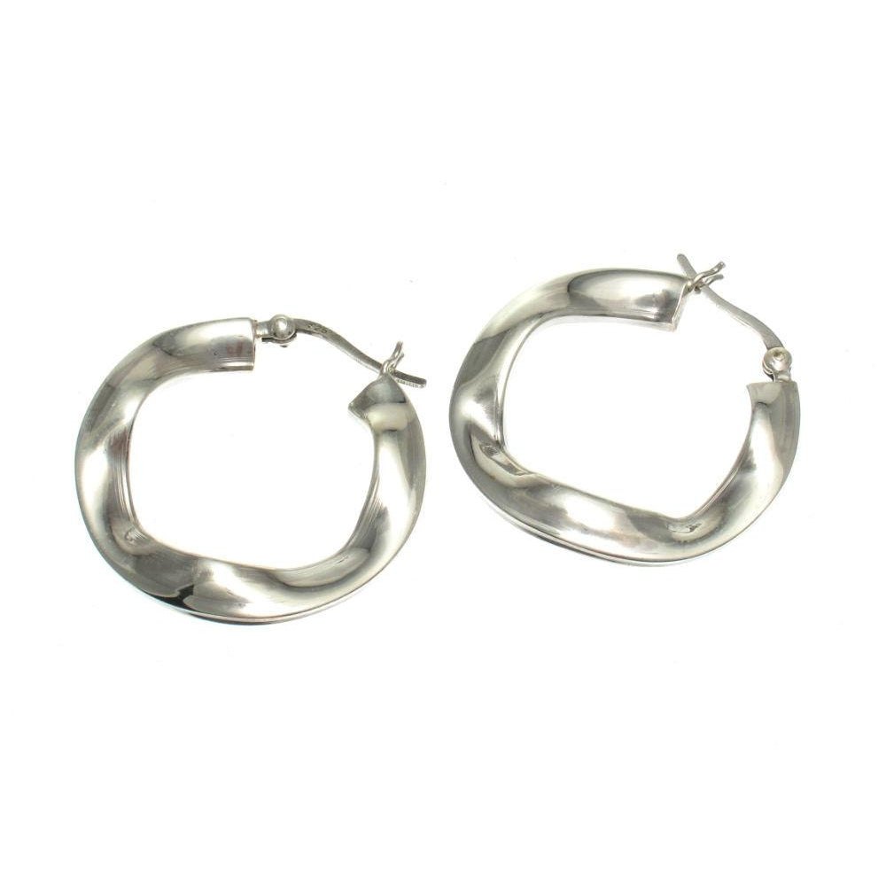 Sterling Silver Flat Ruffle 30mm Round Hoop Earrings
