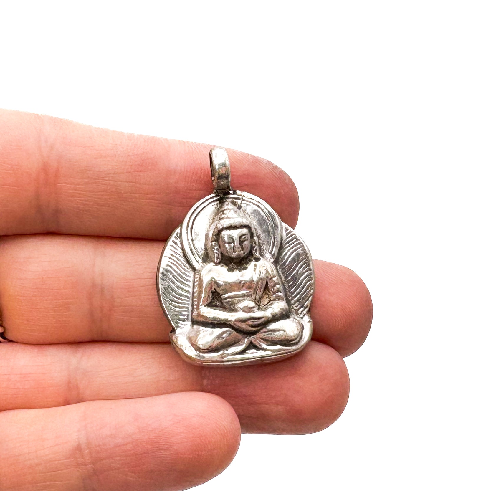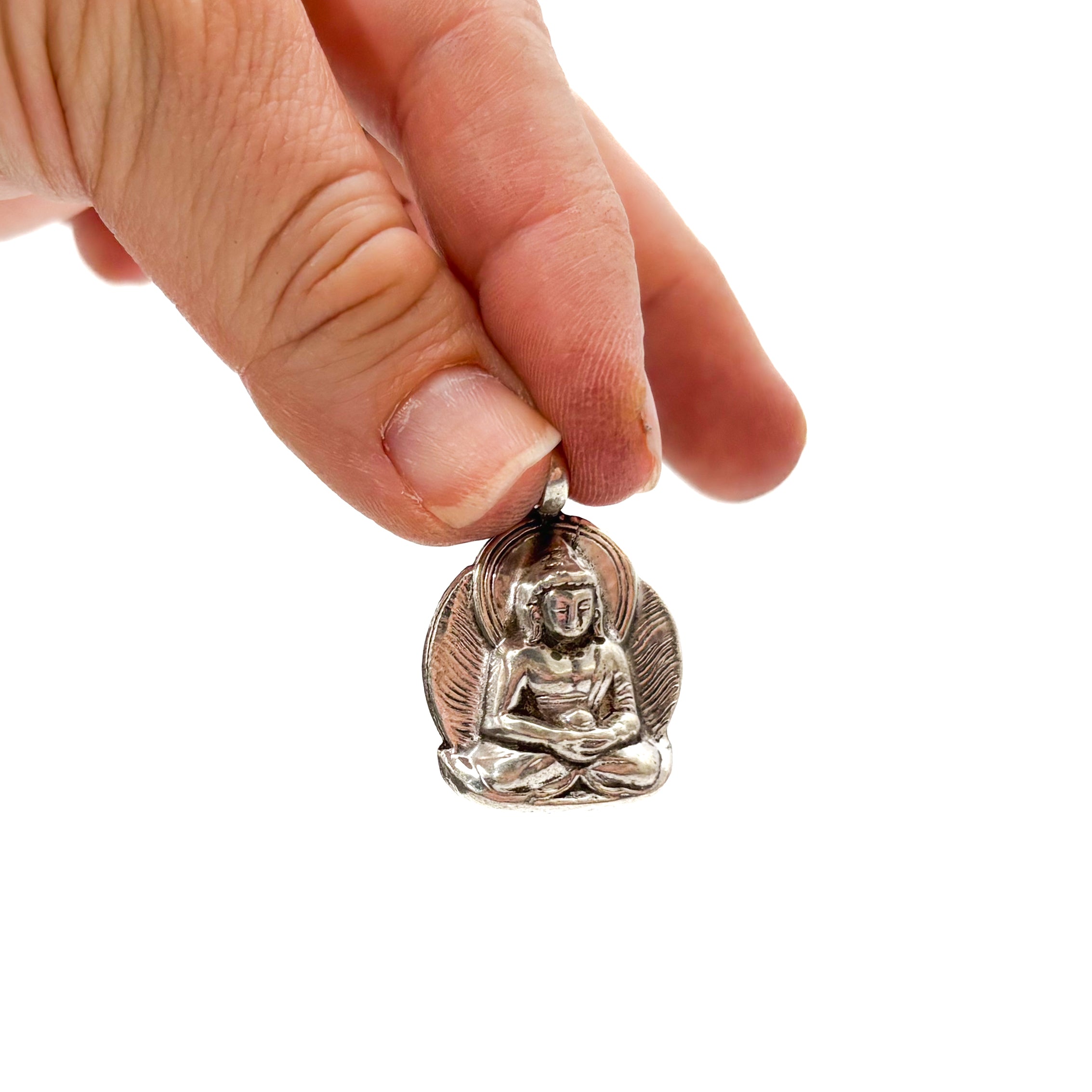 • Sterling Silver Stamped Buddha Pendant Amulet