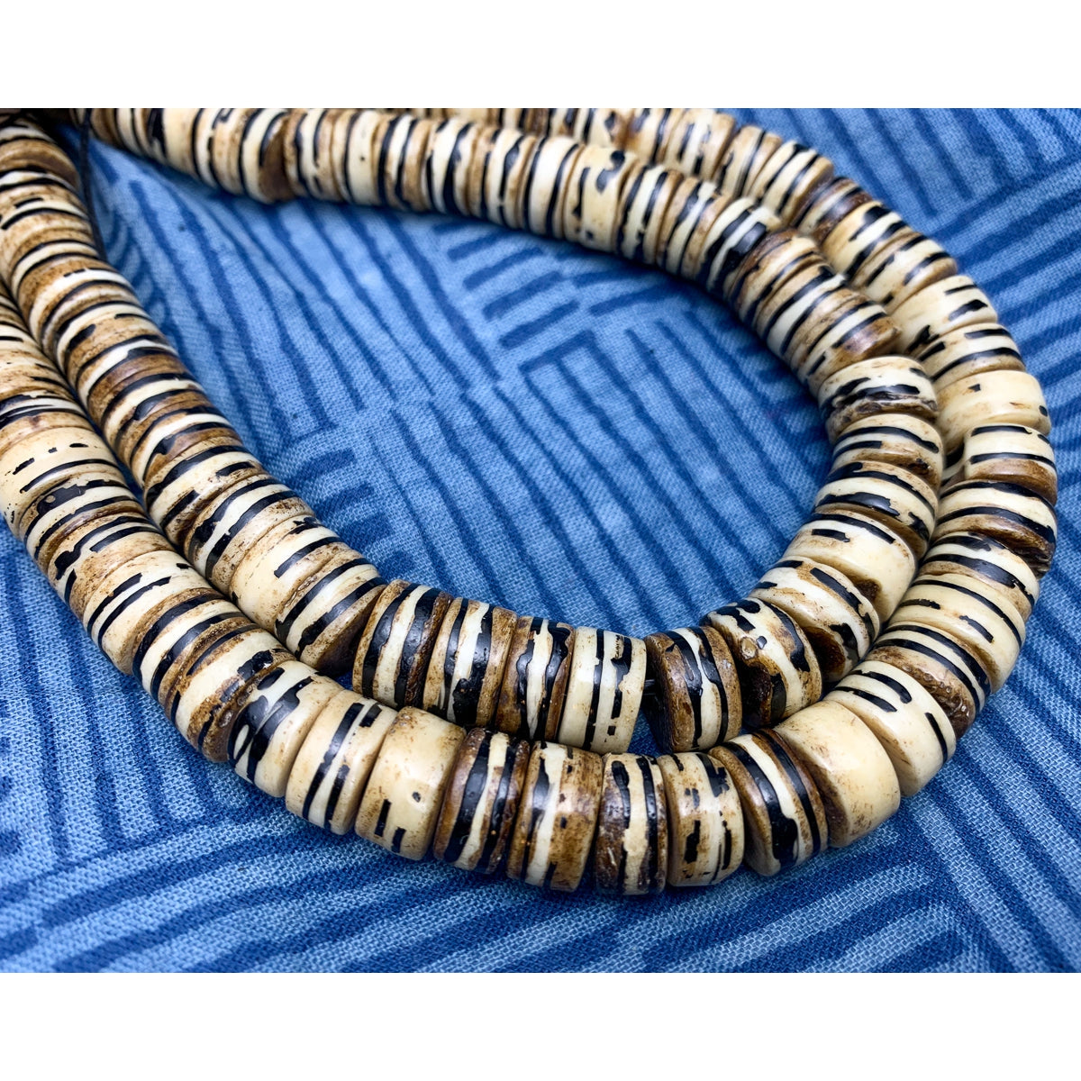 - Batik Dyed Striped Cow Bone Stretch Mala Double Wrap Bracelet