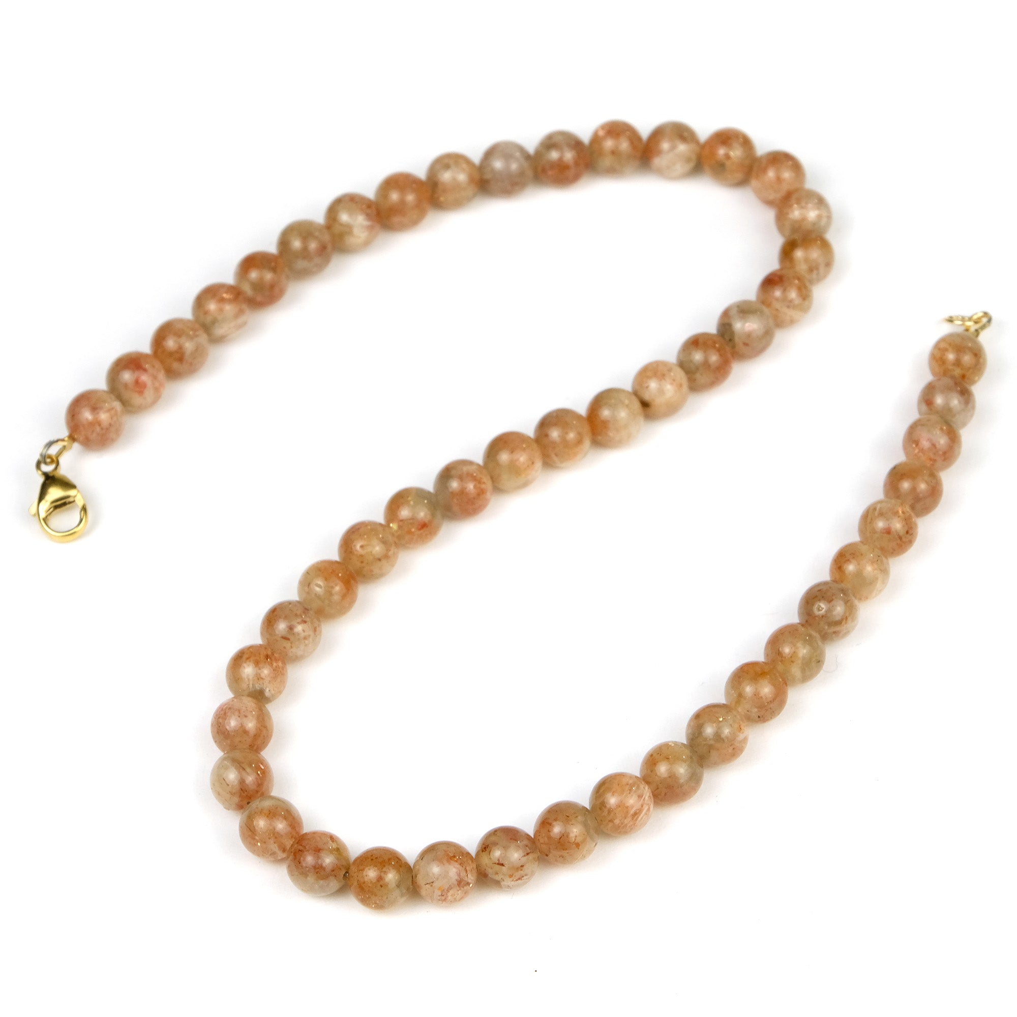 Sunstone 8mm Round Necklace with Gold Filled Trigger Clasp