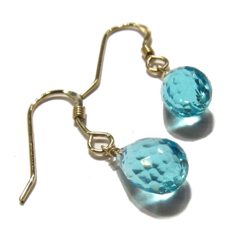 Swiss Blue Topaz Drop Earrings with Gold Filled Wire
