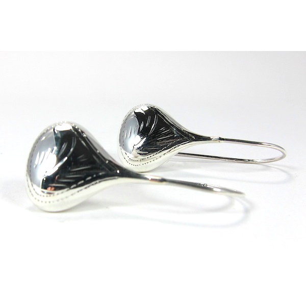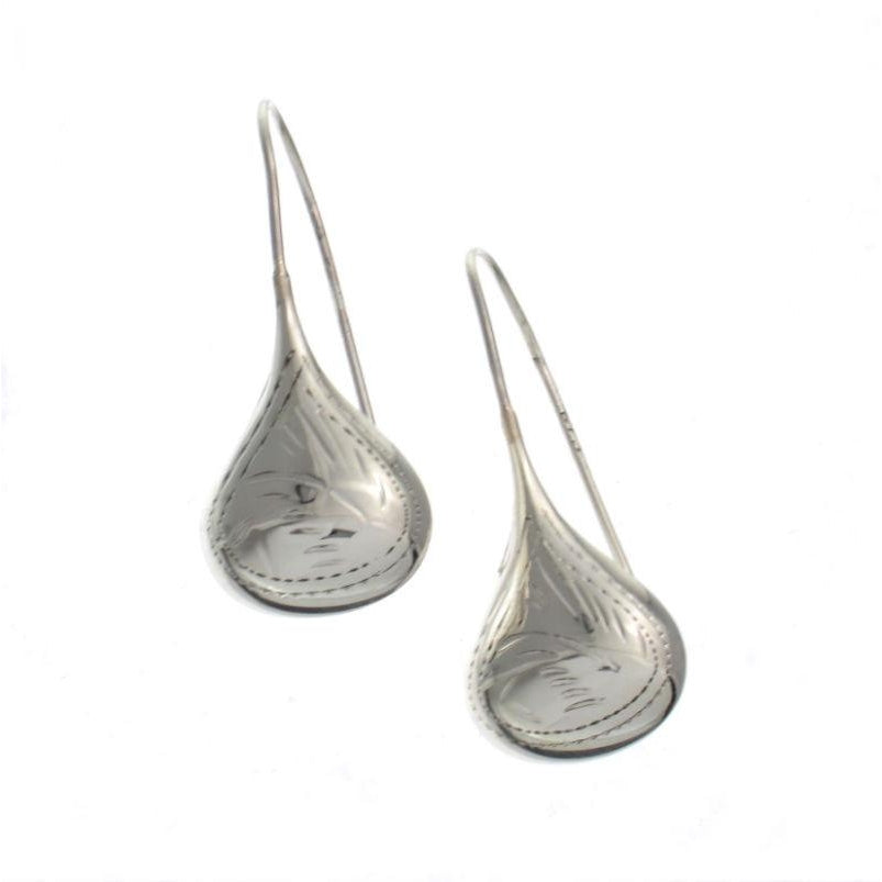 Teardrop Hand Etched Sterling Silver Earrings