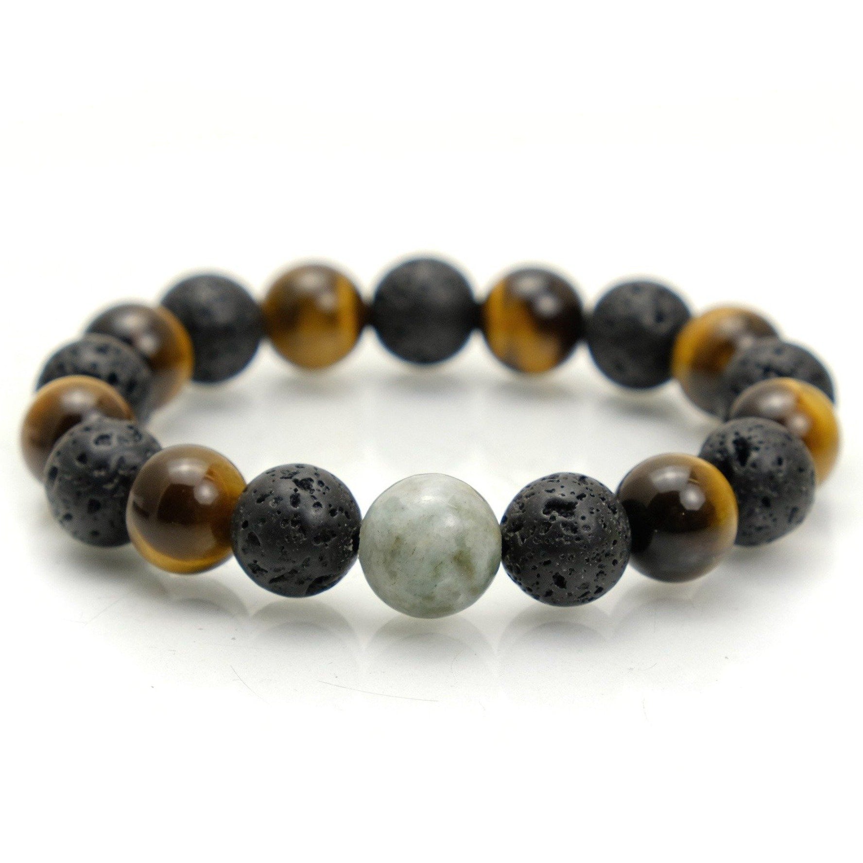 Tiger's Eye + Lava Stone + Jade Stretch Bracelet #1