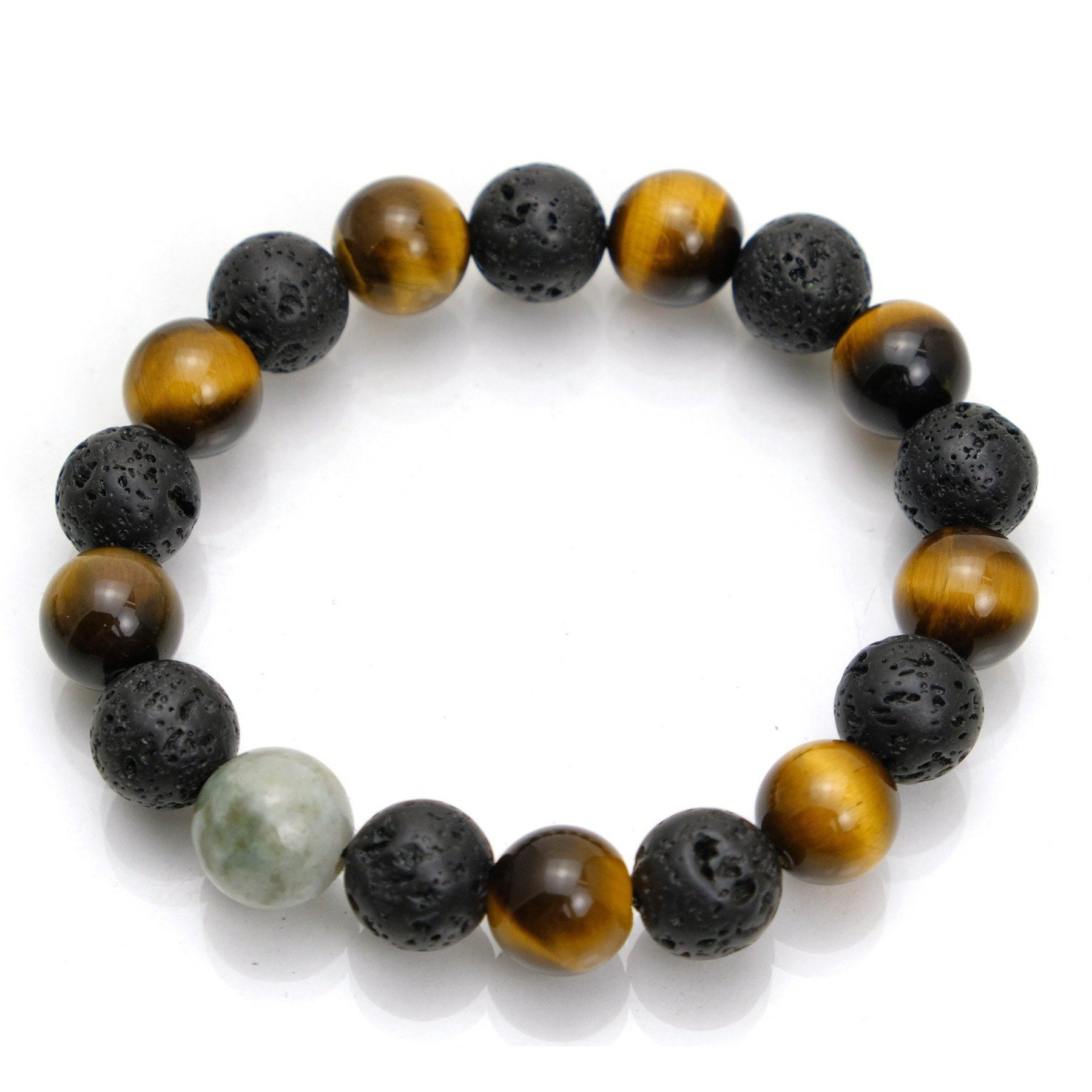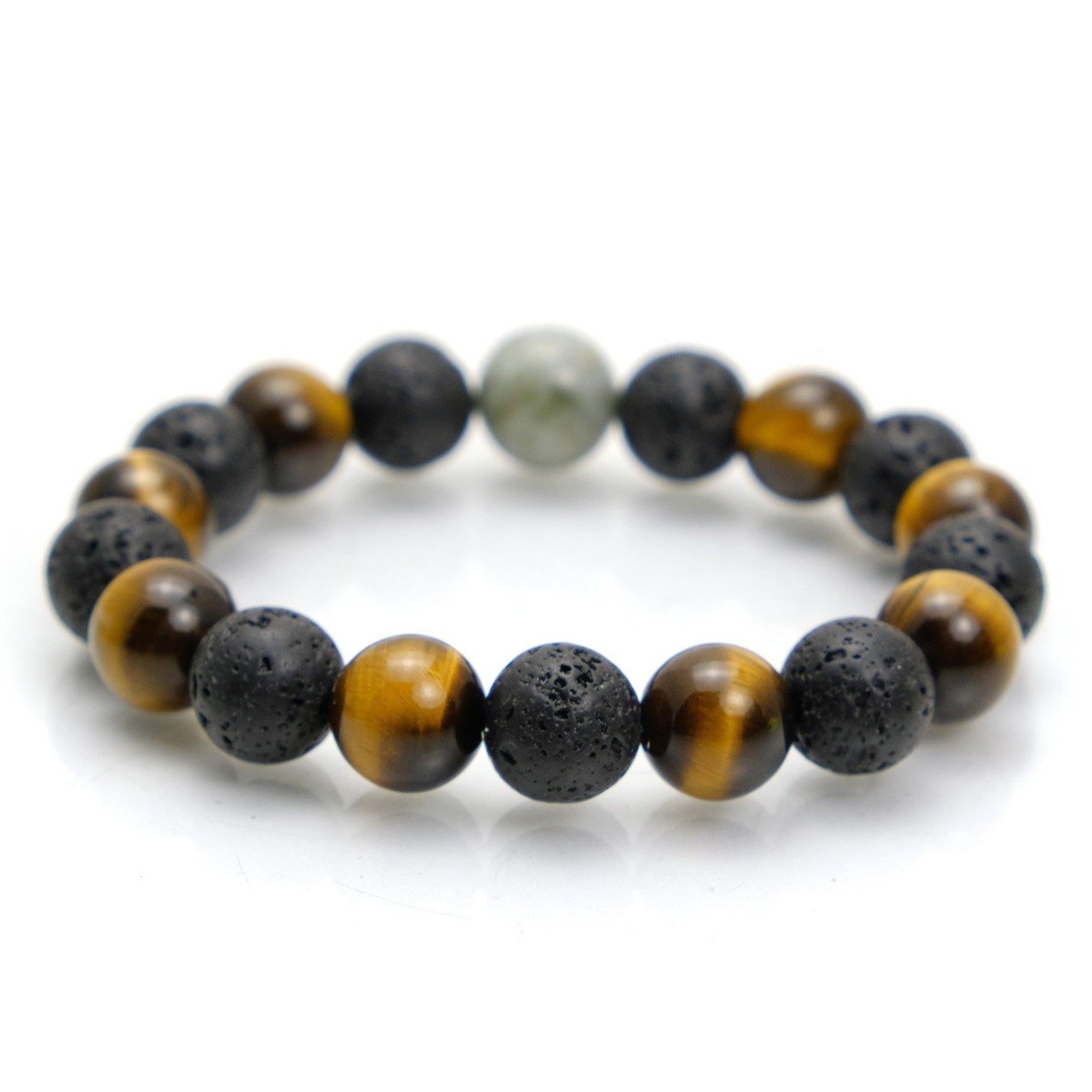 • Tiger's Eye + Lava Stone + Jade Stretch Bracelet #1
