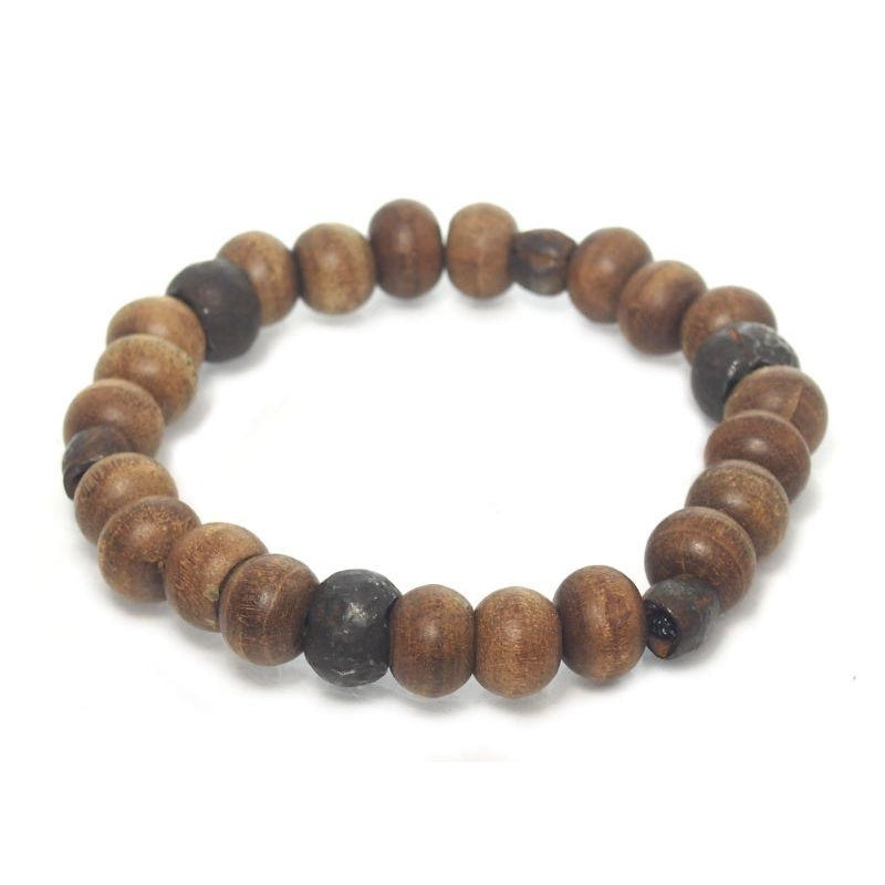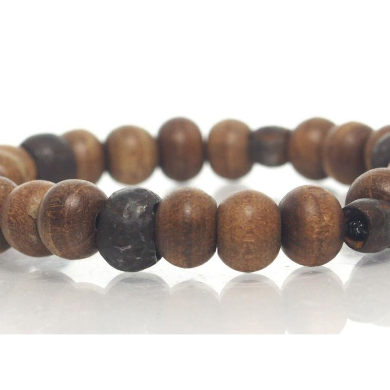 Tulsi Wood and Iron Bead Stretch Bracelet