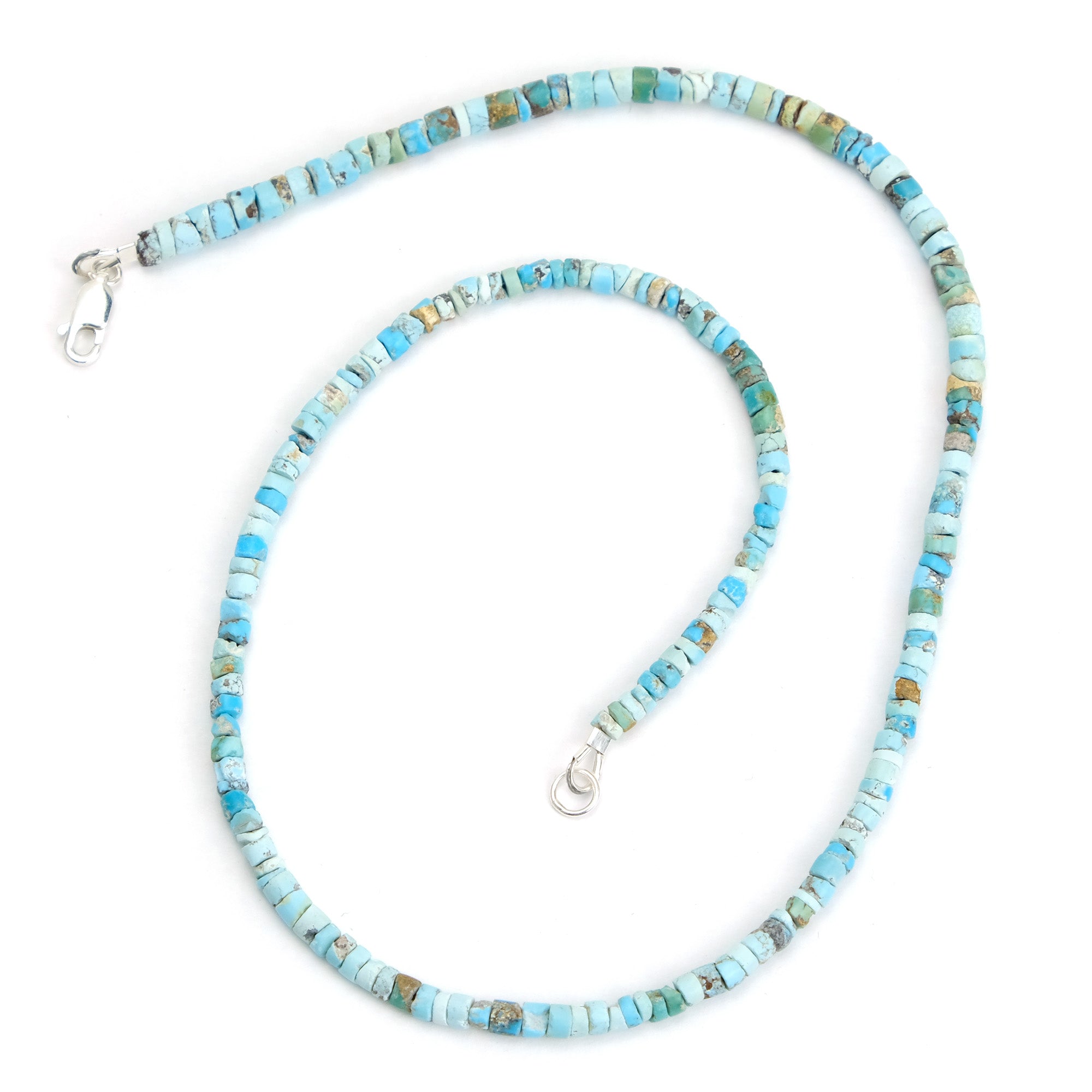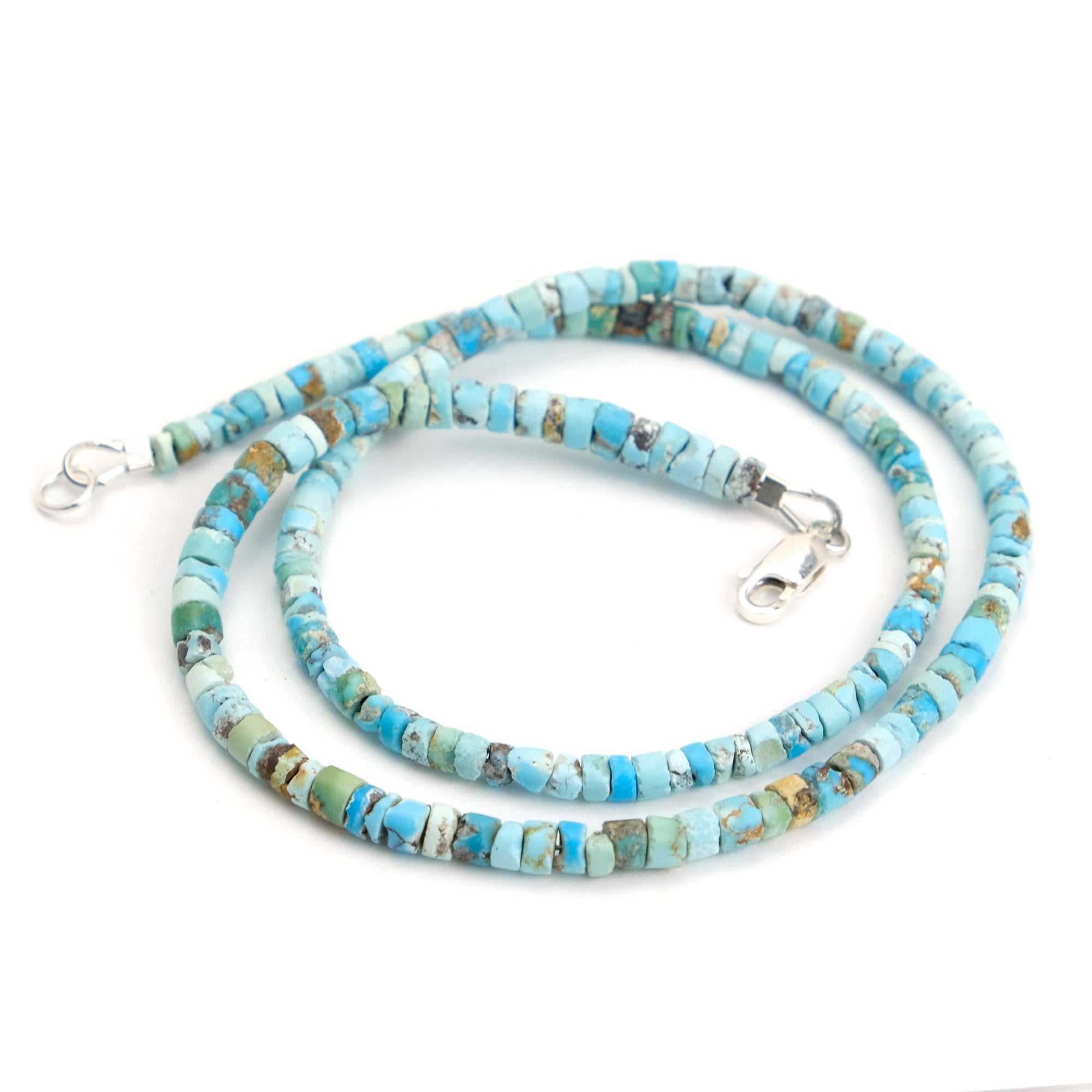 Turquoise 4mm Matte Tile Bead Necklace with Sterling Silver Lobster Clasp