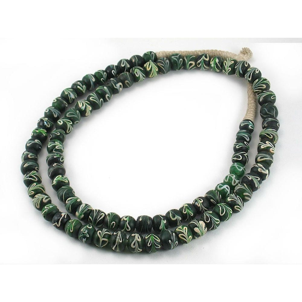 19th Century Venetian Green "Ribbon" Beads from Zaire / Necklace