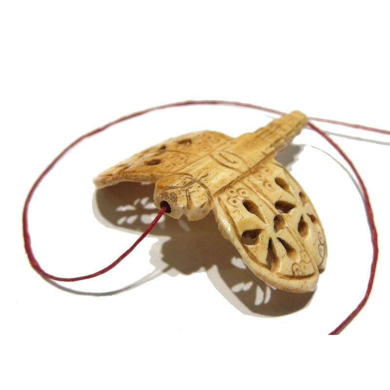 "Victory Dragonfly" Hand Carved Cow Bone Pendant Bead
