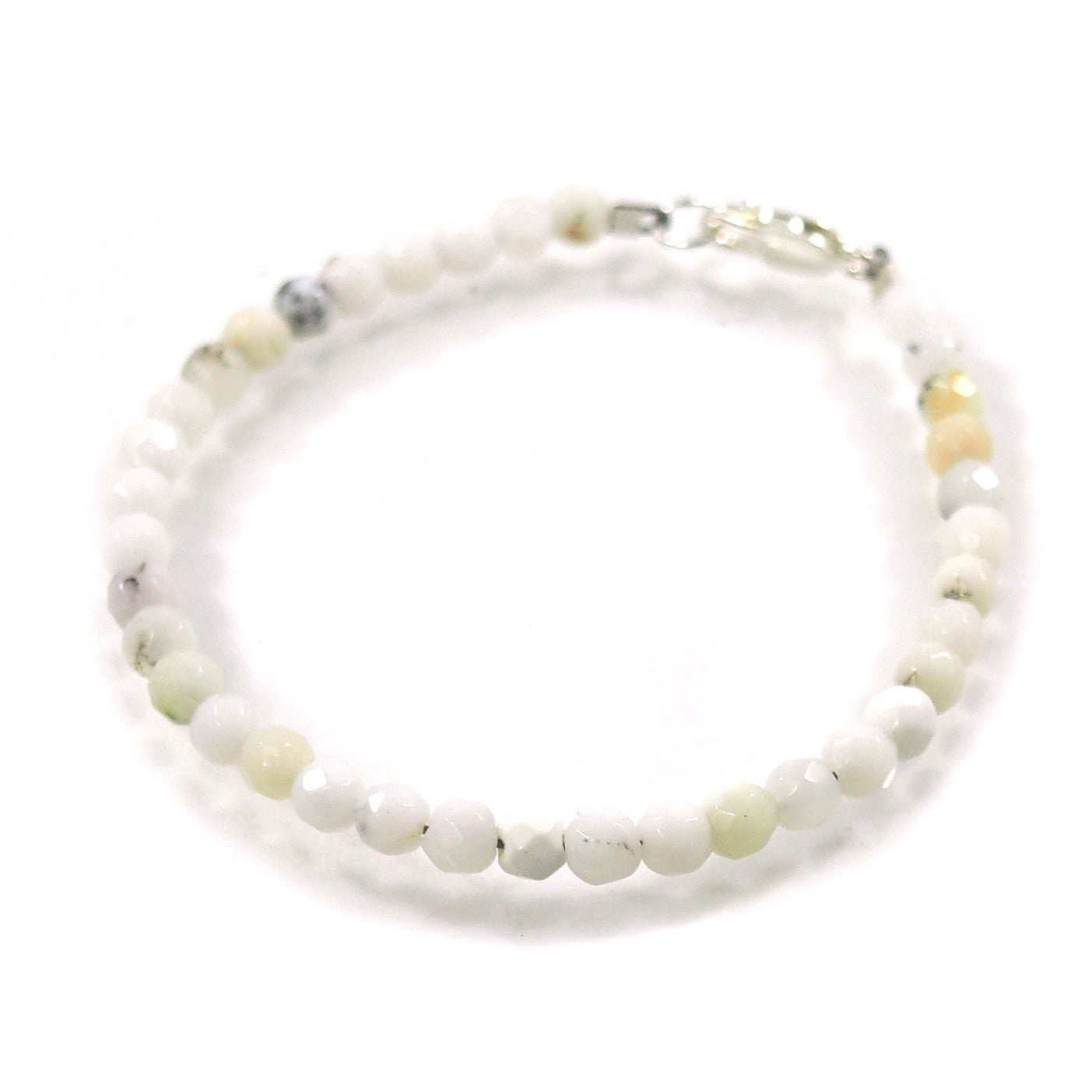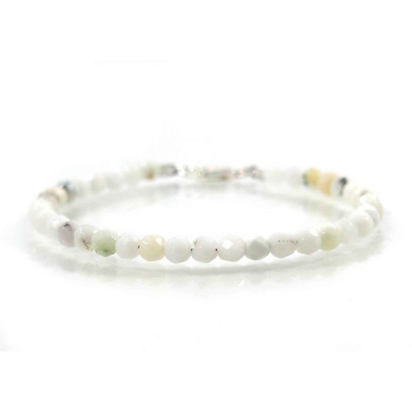 White Opal 4mm Faceted Round Bracelet with Sterling Silver Lobster Clasp