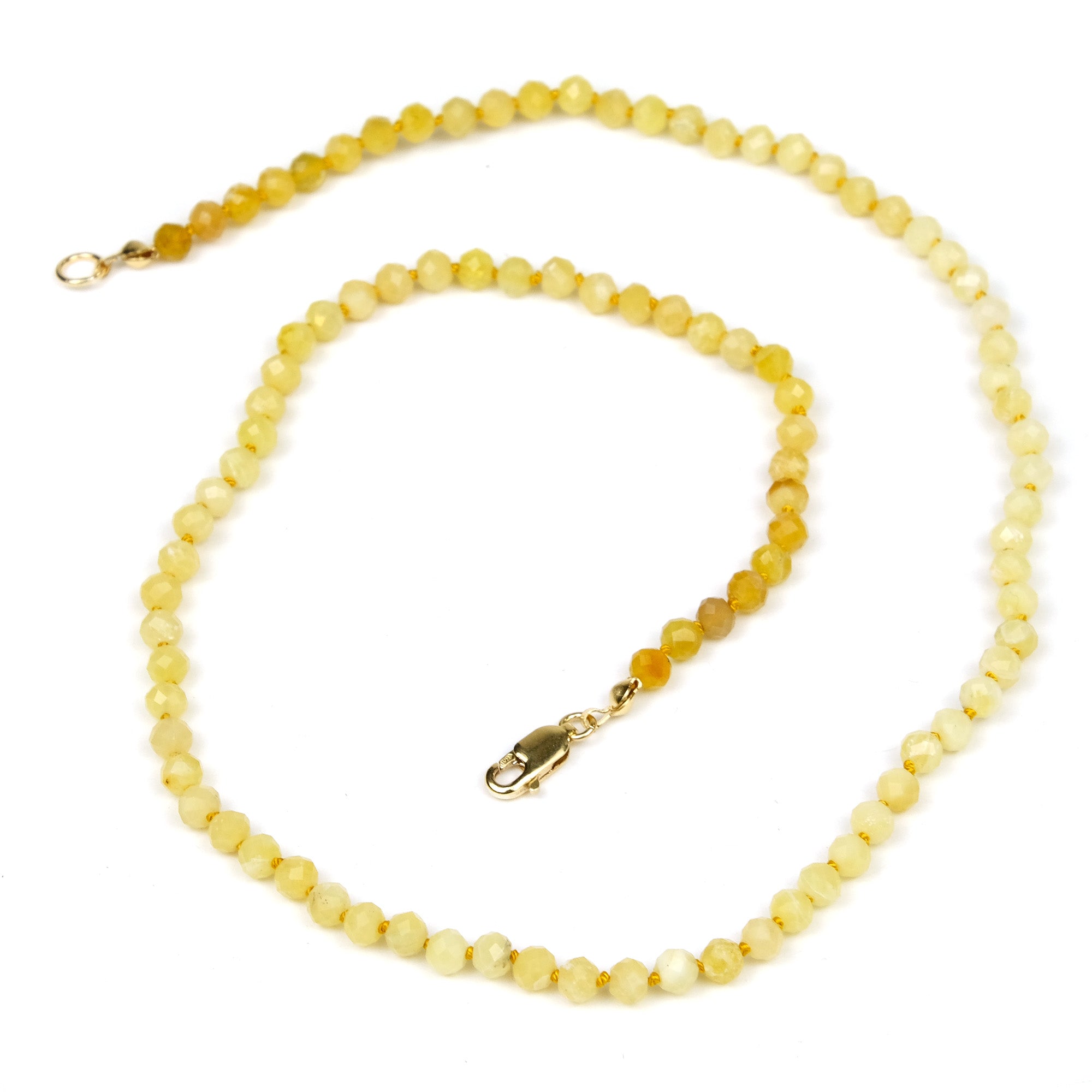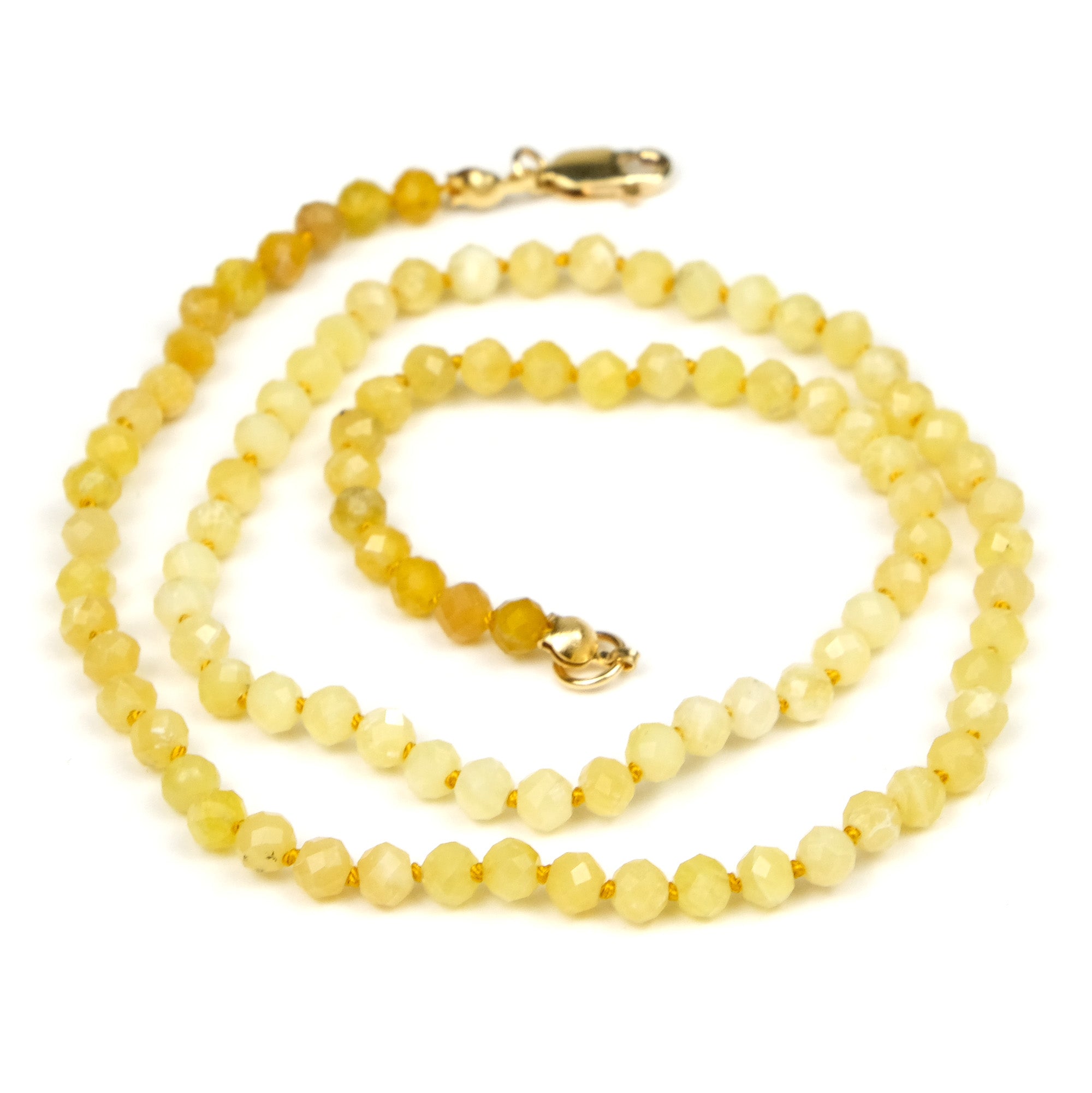 Yellow Opal 4mm Faceted Rounds Knotted Necklace with Gold Filled Trigger Clasp