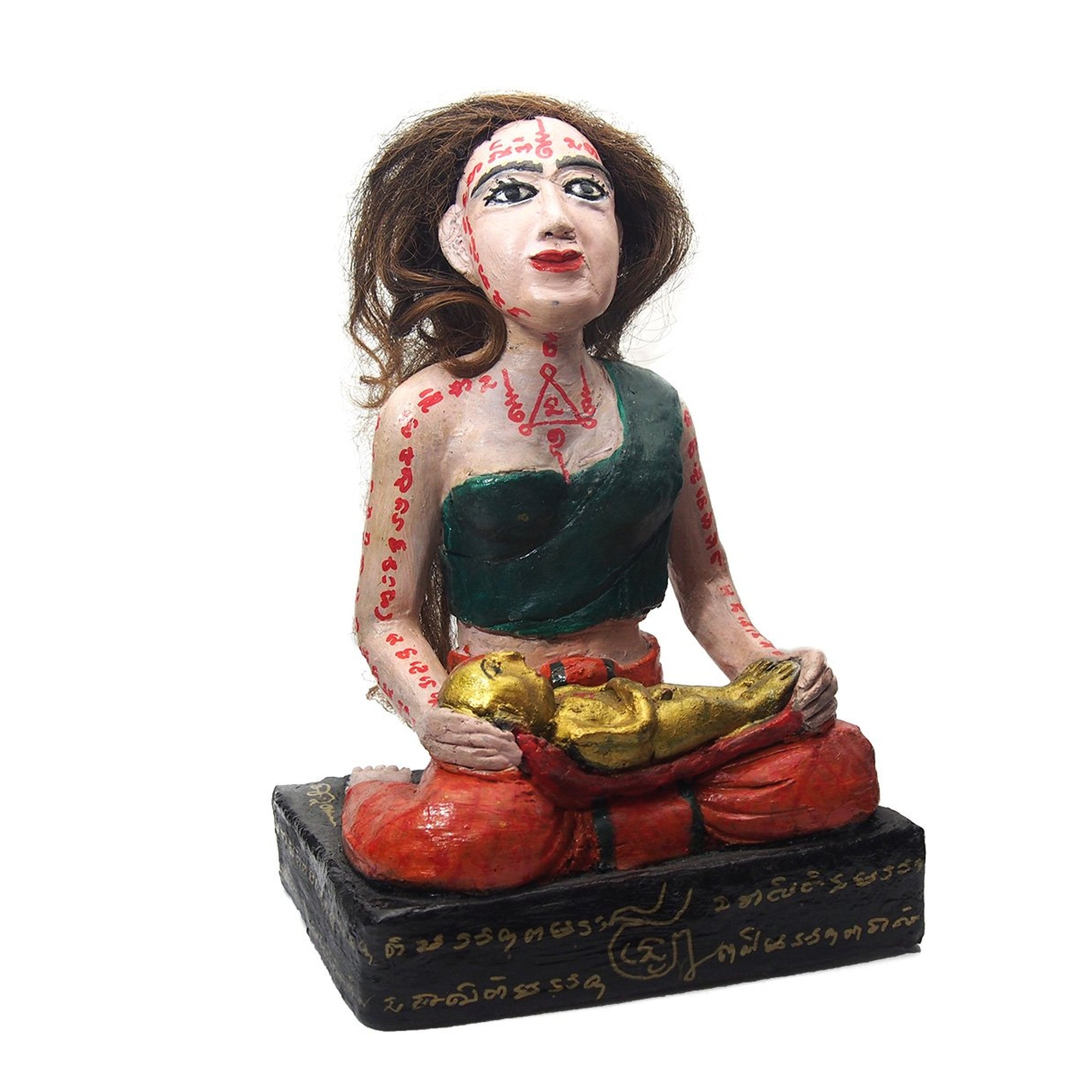 - But of course this is only a part of the story and the message. Mae Nak's remaining trace spirit was not restricted to the buckle; only her negative energy and dangerous form was captured there. Her new identity as the Protective and Powerful Goddess is assured. Though located in the sacred space of the Mahabhute Temple, the style of worship of Mae Nak is not that of orthodox, canonical Buddhism. It is localized and popular worship, with the expectations of blessing and benefits being bestowed on her worshippers. The usual offerings of flowers, candles and incense and gold leaf are made, but also traditional clothes and gowns are offered to them, both mother and child; cosmetics for the mother, diapers and toys for the child. She is said to be particularly kindly to soldiers, because her husband was one. She hates military conscription, because it was that which took her loving husband away from her. She is especially popular in the days preceding a lottery draw. She has appeal for young men called up for the other kind of lottery, the notorious red bean black bean draw, which decides whether the young man does military service or not. Mae Nak hates conscription so she will help to ensure that those who make the appropriate offerings to her avoid being called up. Even worried mothers of teenage military aged sons approach her on this matter. The status of Mae Nak as a trans-regional Goddess, not just a local one, and her extra Buddhist identity, while not contradicting Buddhism, does indicate that she is fulfilling needs not ordinarily addressed by orthodox or elite Buddhist teachings.