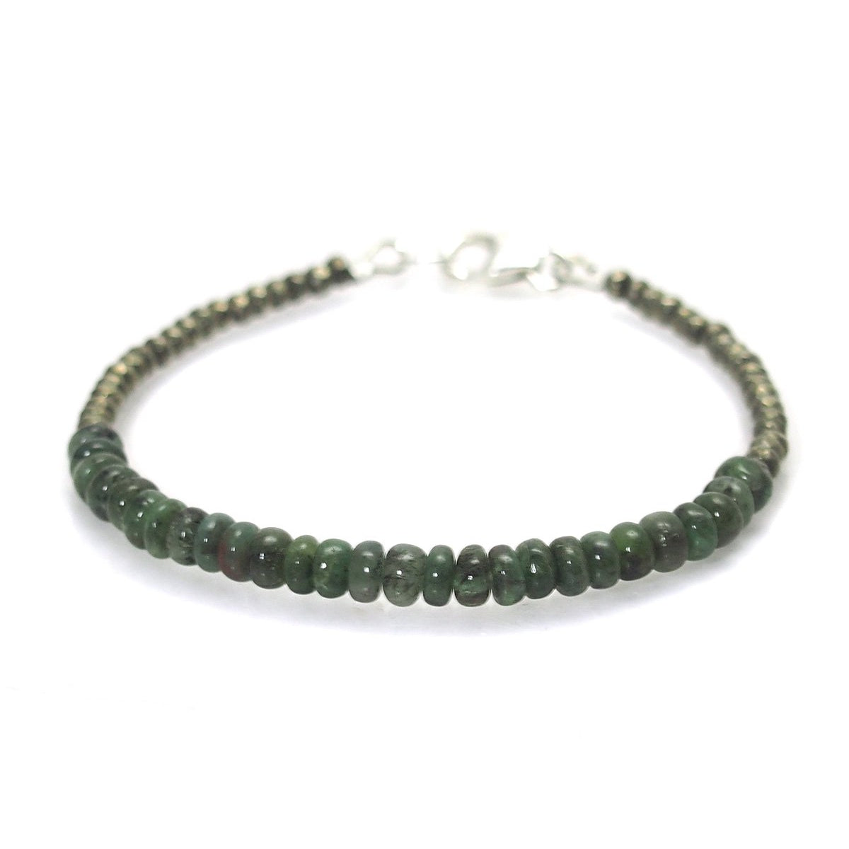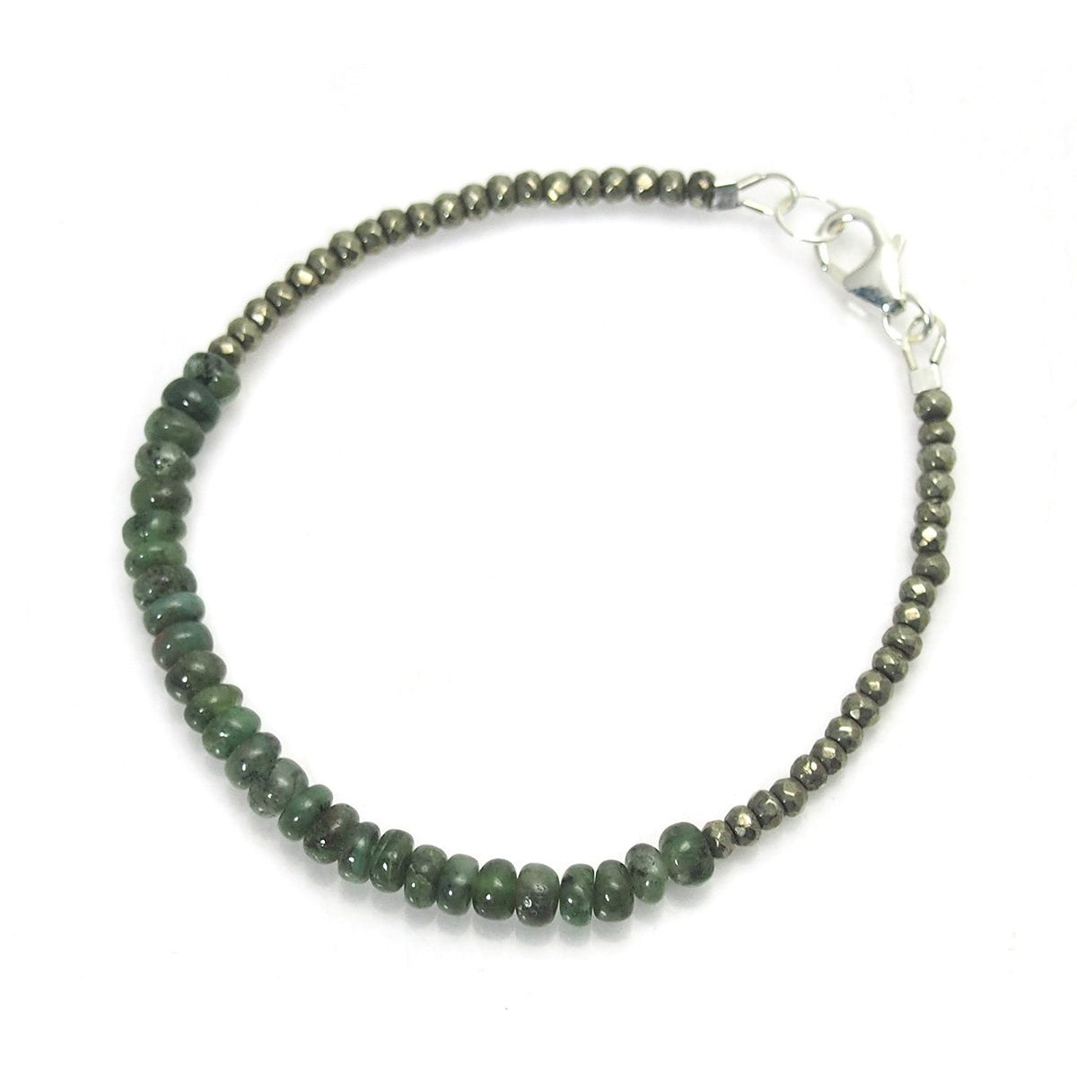 Emerald and Faceted Pyrite Bracelet with Sterling Silver Lobster Claw Clasp