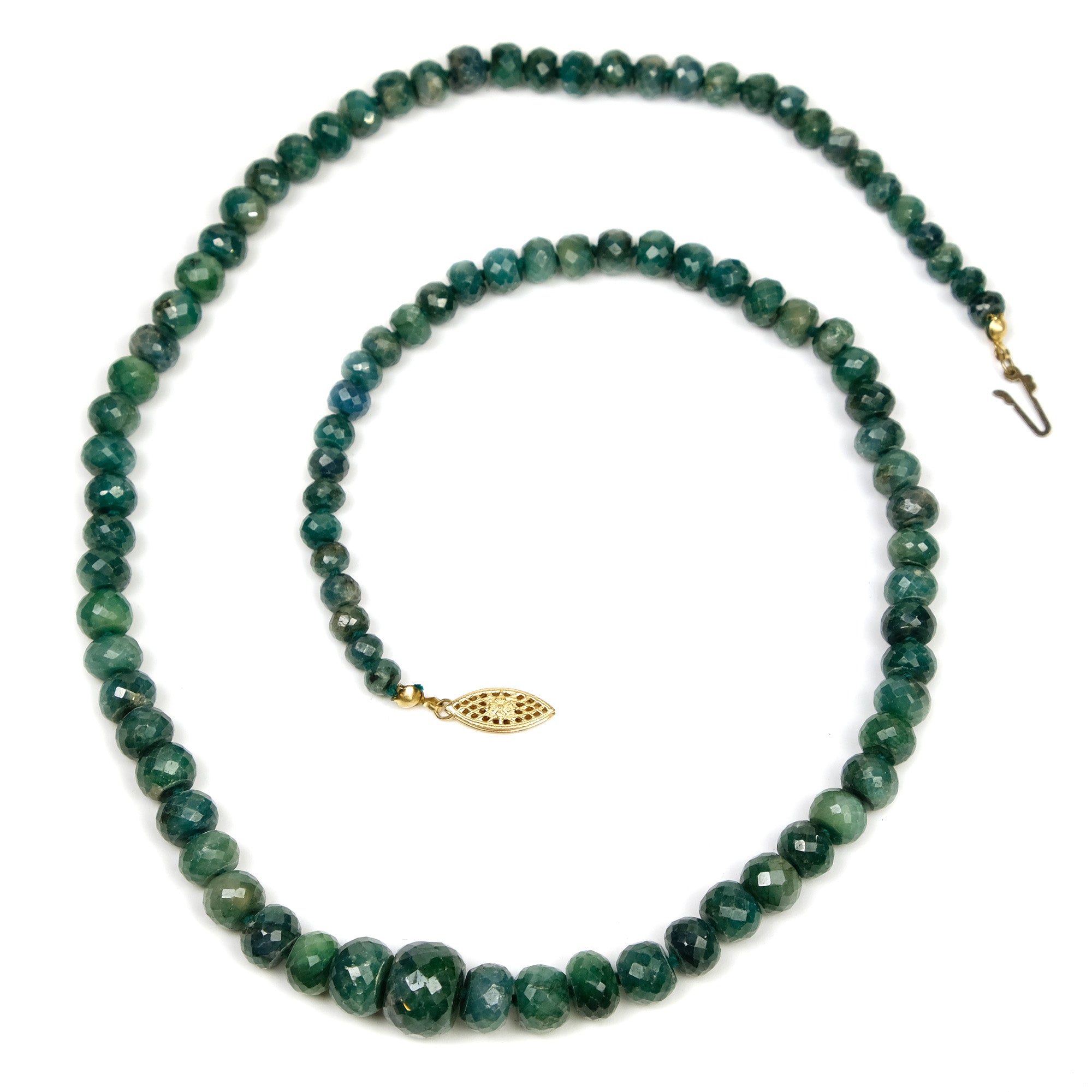 Emerald Knotted Necklace with Gold Filled Box Clasp