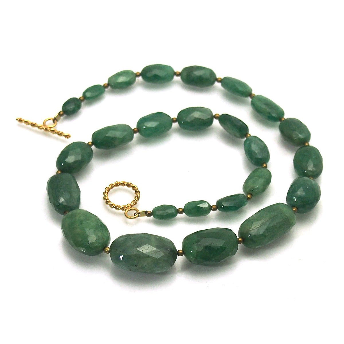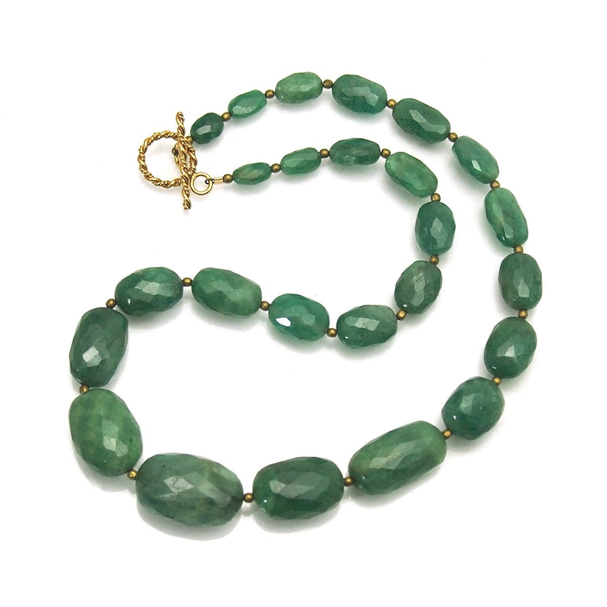 Emerald Necklace with Gold Filled Spiral Toggle Clasp