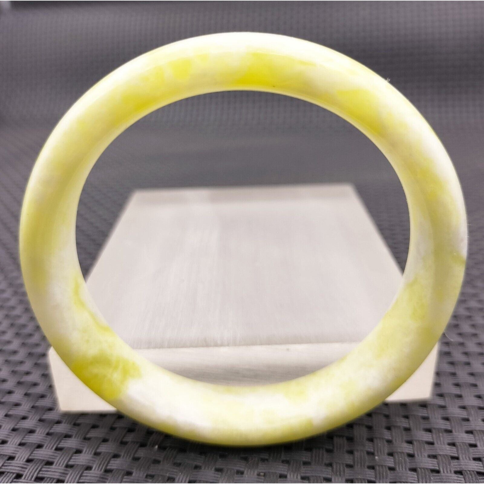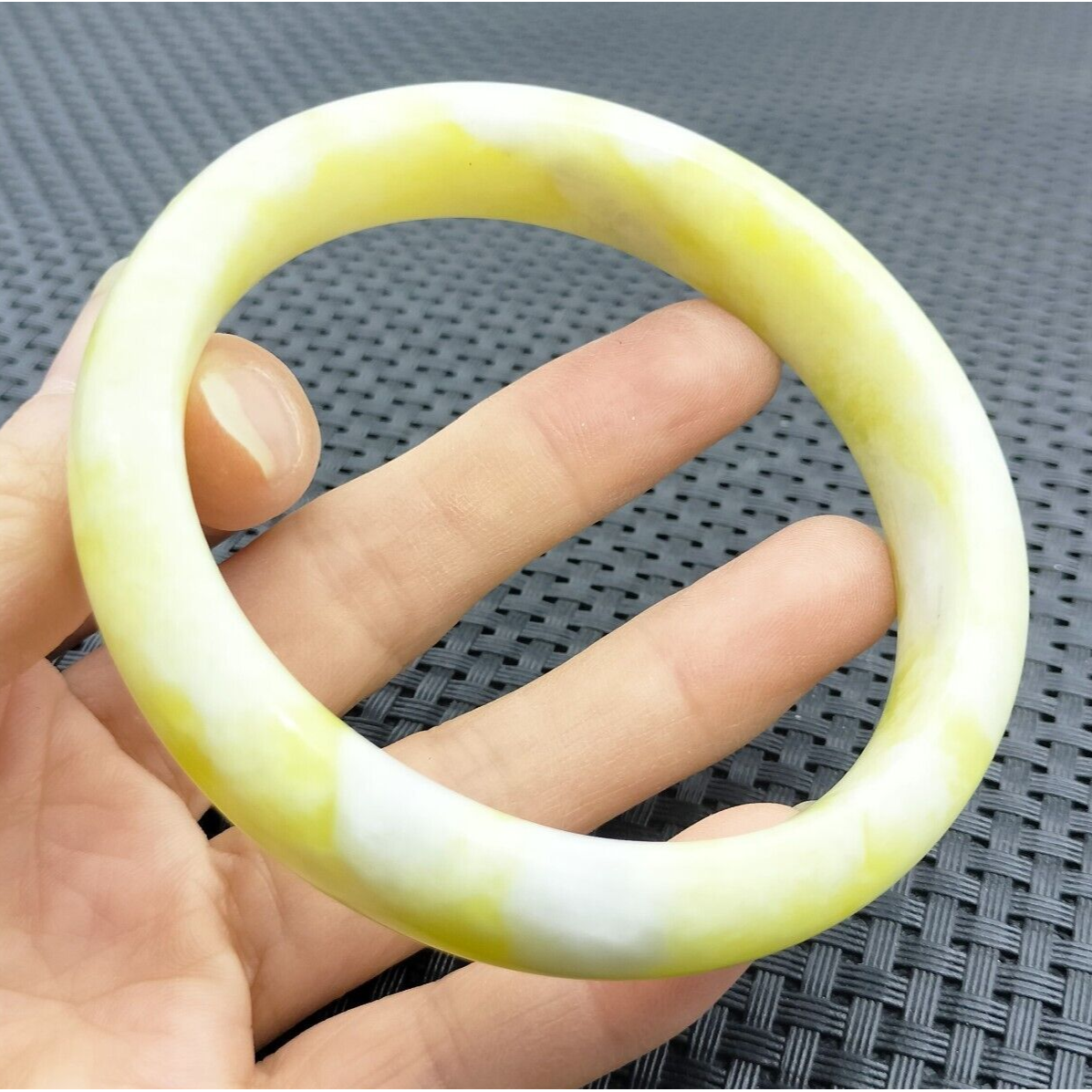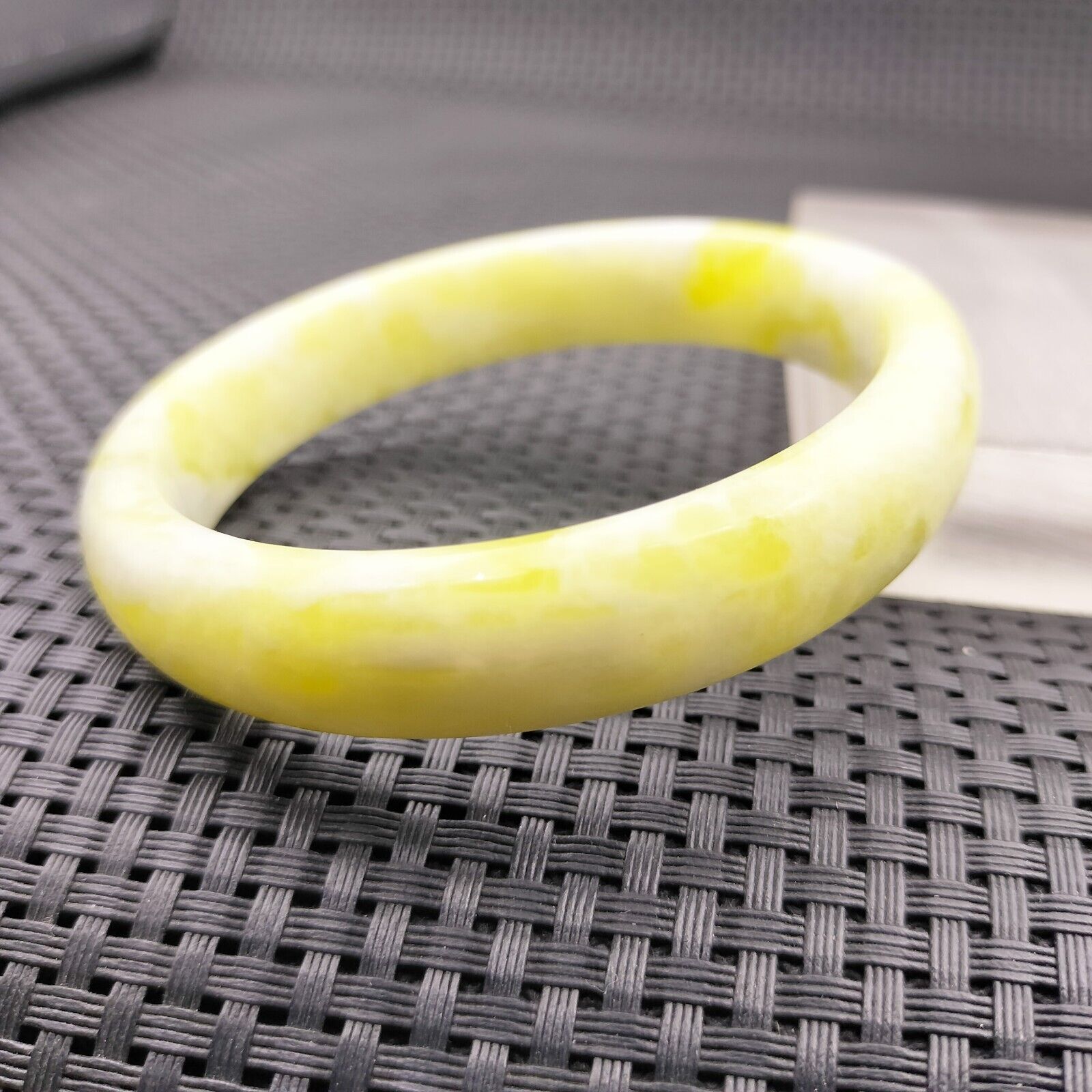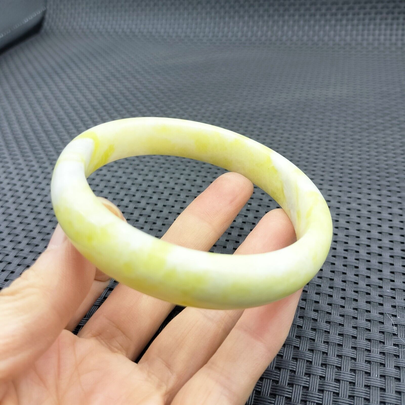 64mm Natural Yellow Green Jade Carved Wide Bracelet Chinese Northern Jade 126