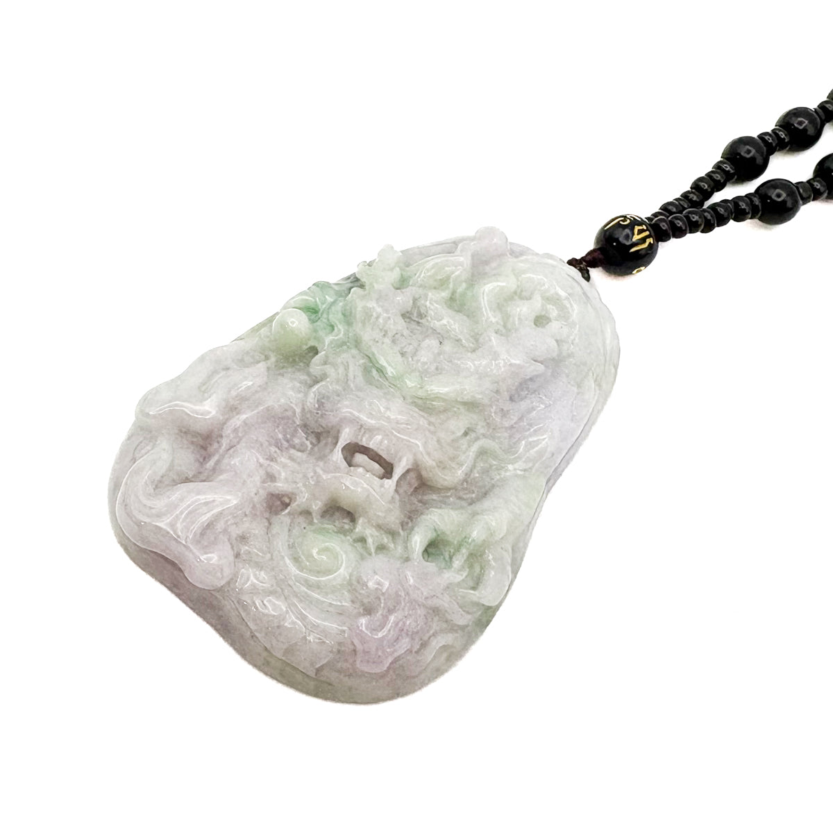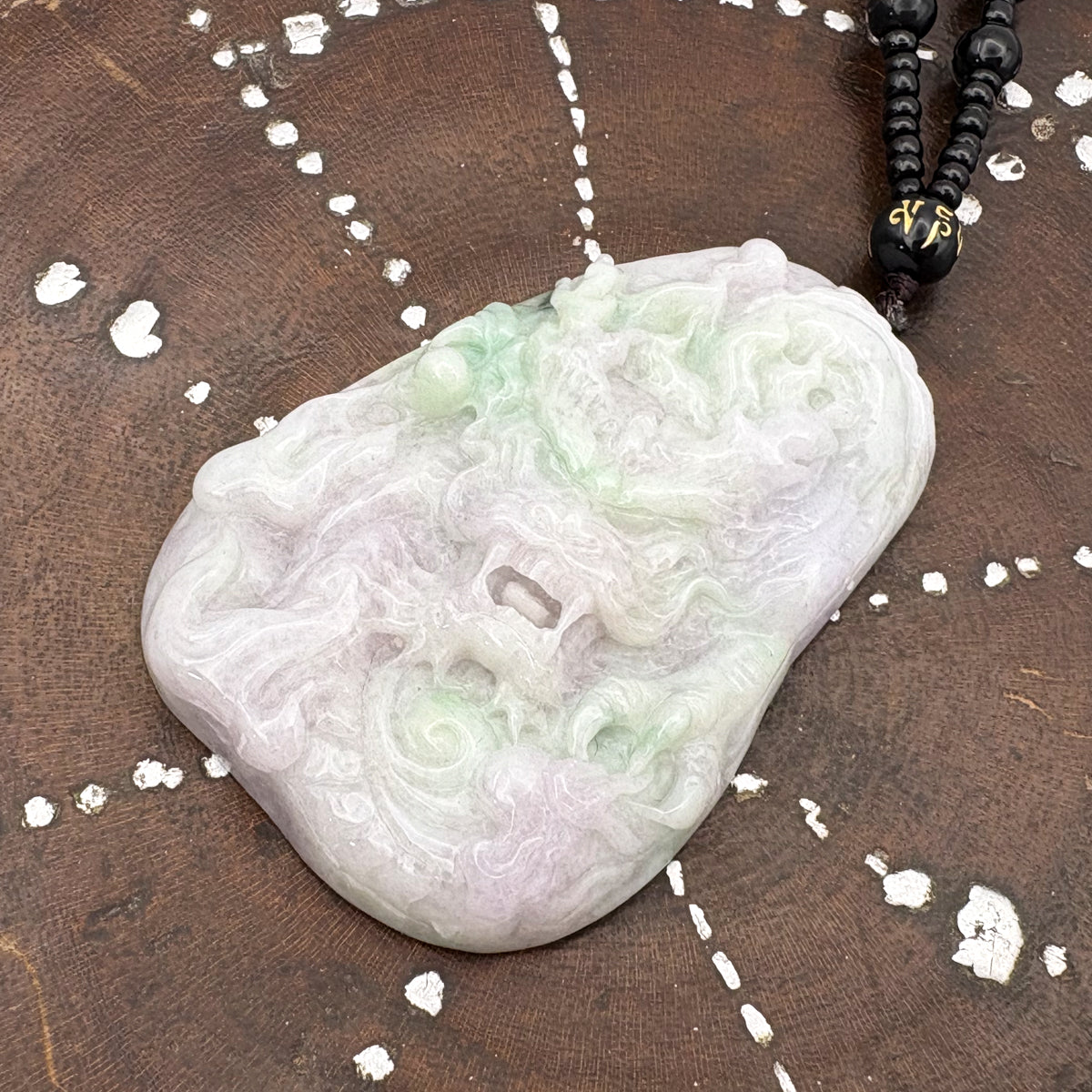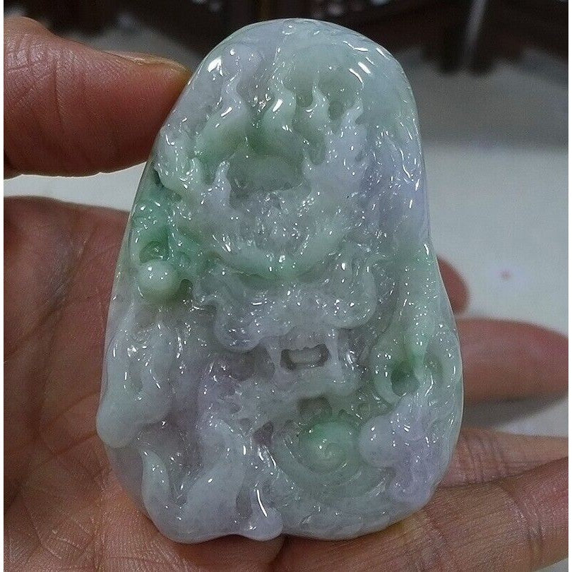 • Certified Natural Type A Lavender Green Jadeite Jade Dragon Pendant