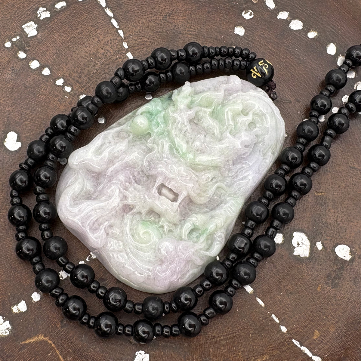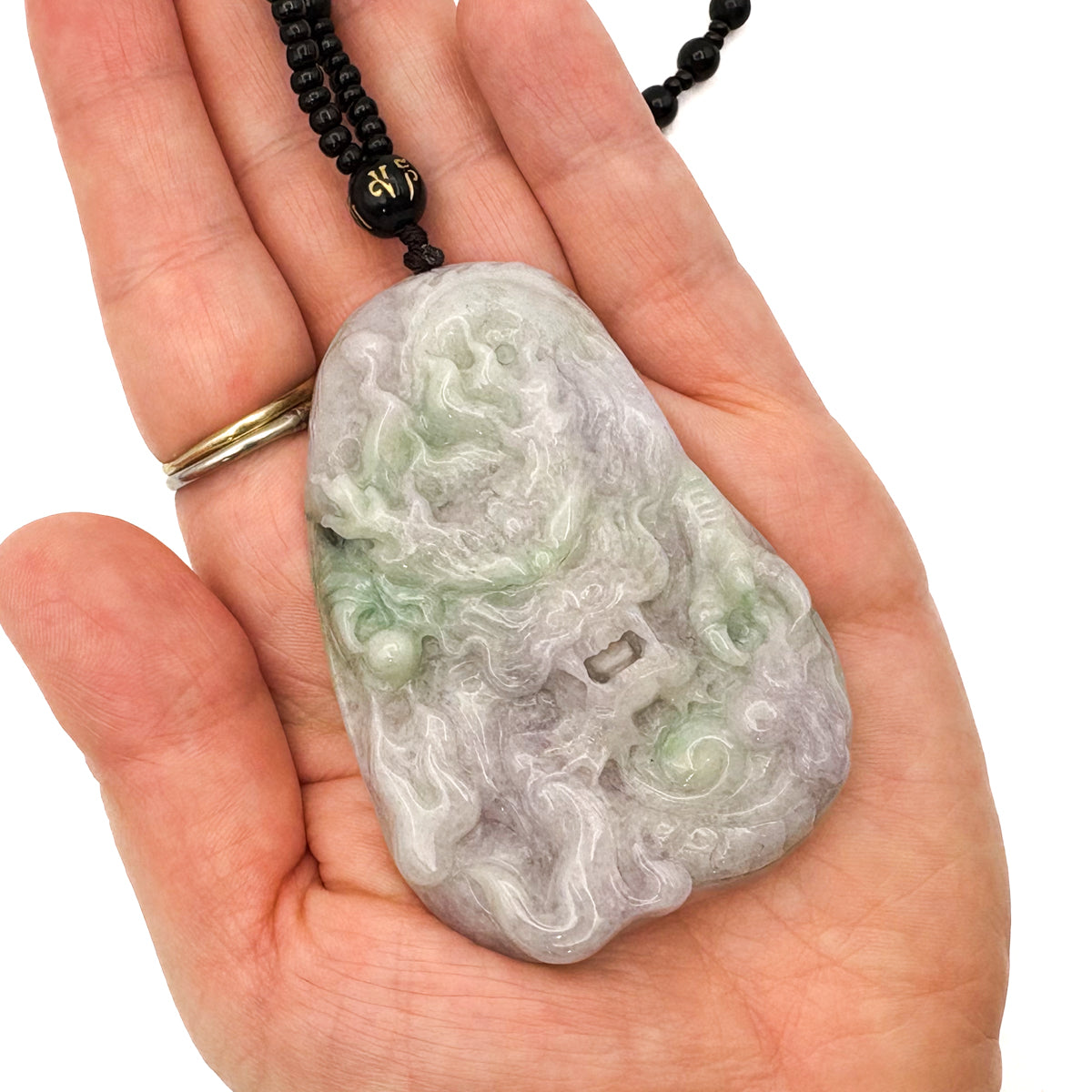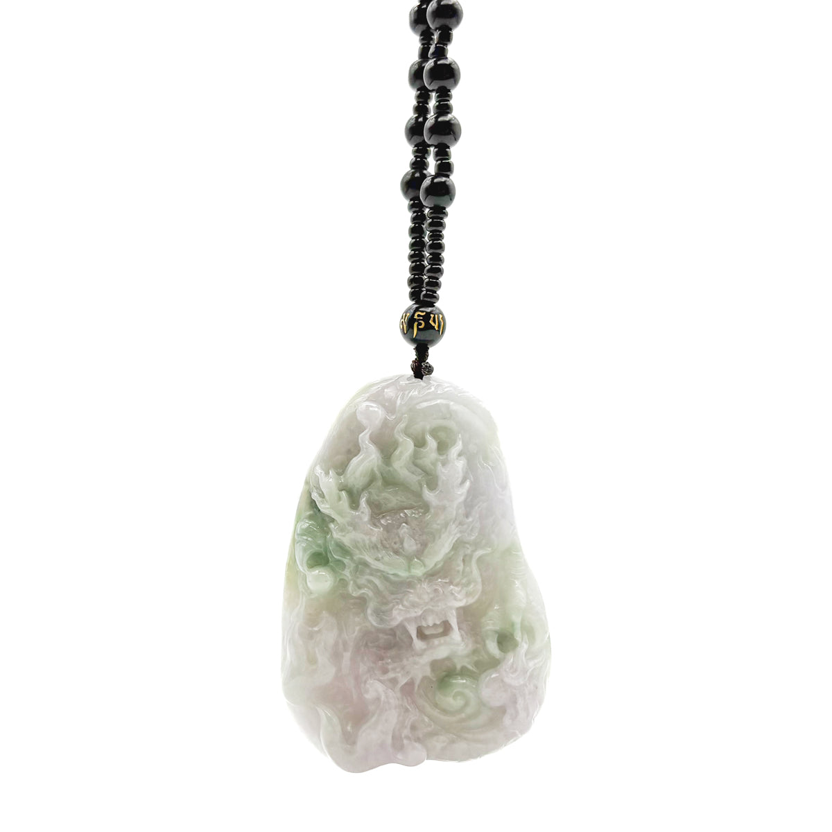 • Certified Natural Type A Lavender Green Jadeite Jade Dragon Pendant