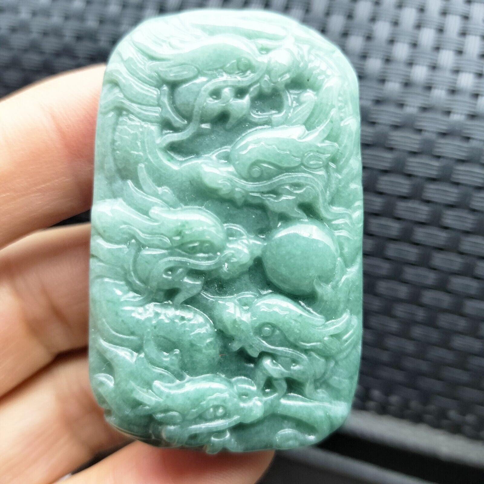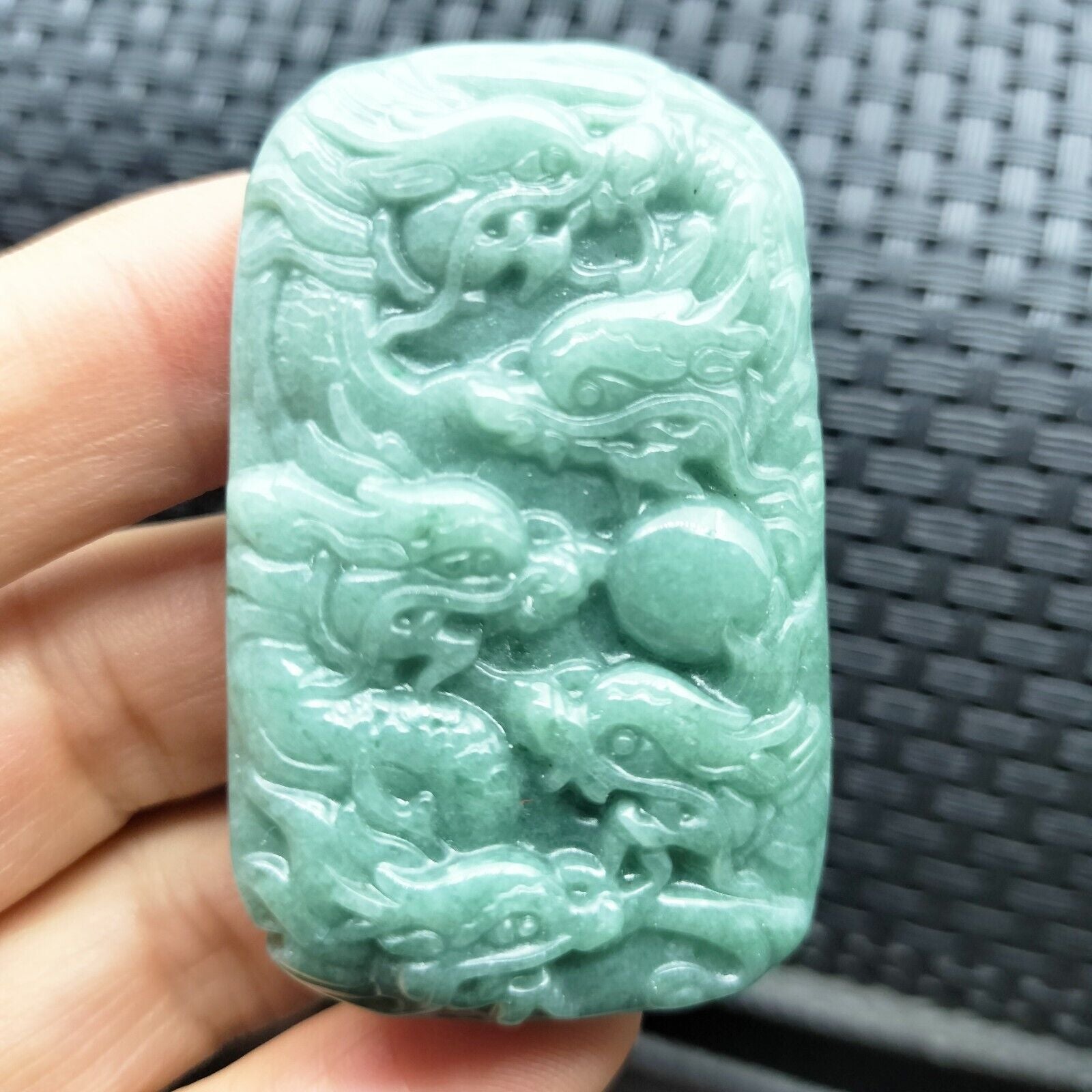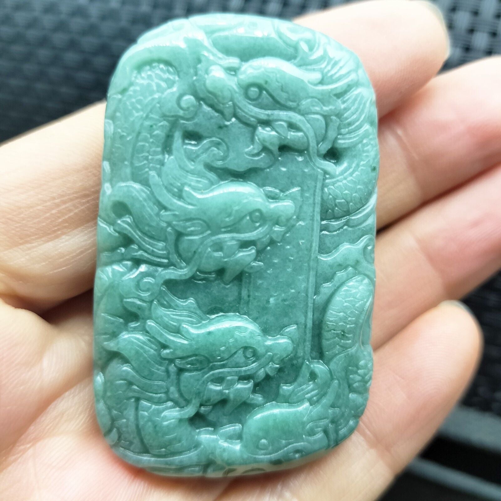 • Certified Blue Green Natural Type A Jade Jadeite Carved Nine Dragons Pendant