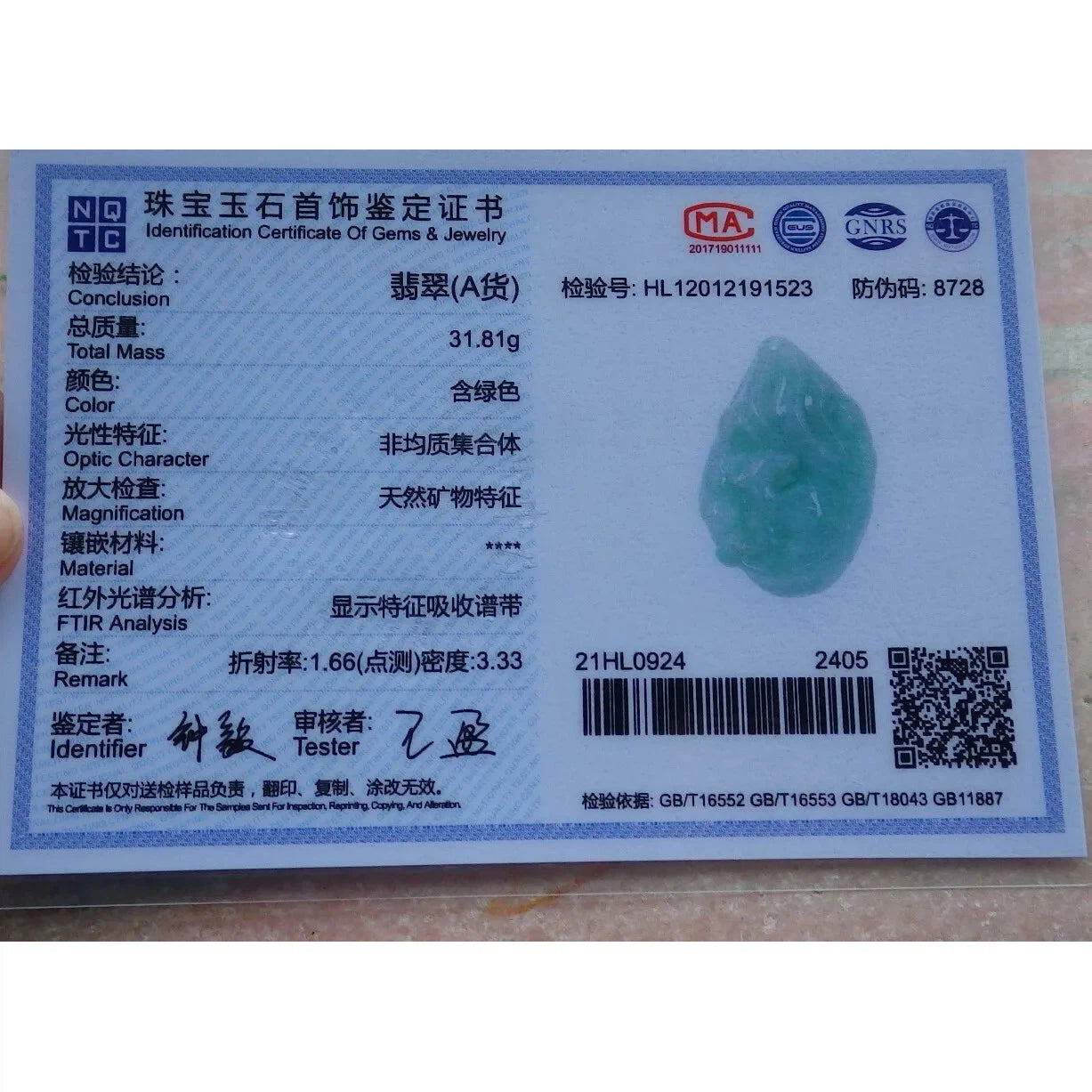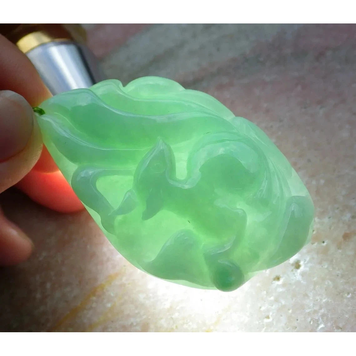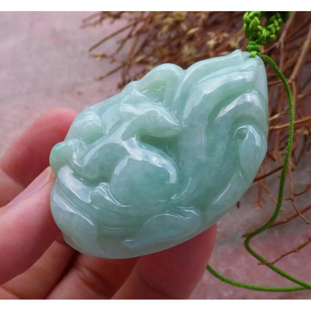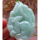 Certified Green Burma 100% Natural A Jade Jadeite Pendant Fox Necklace