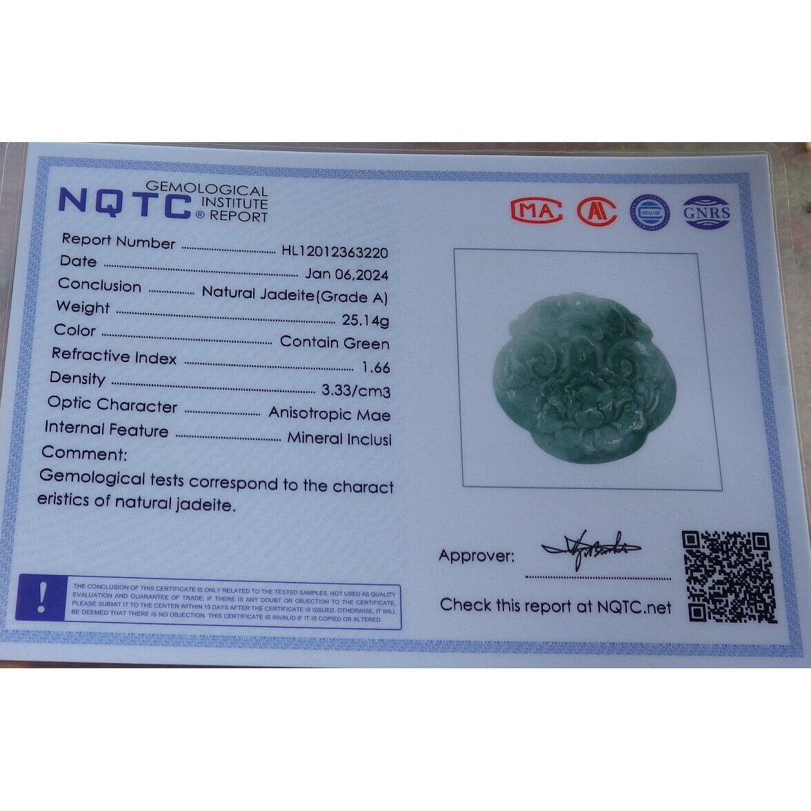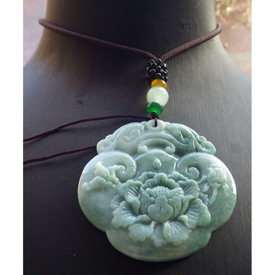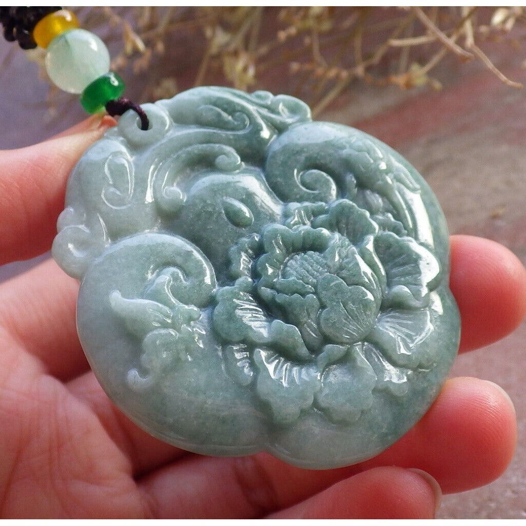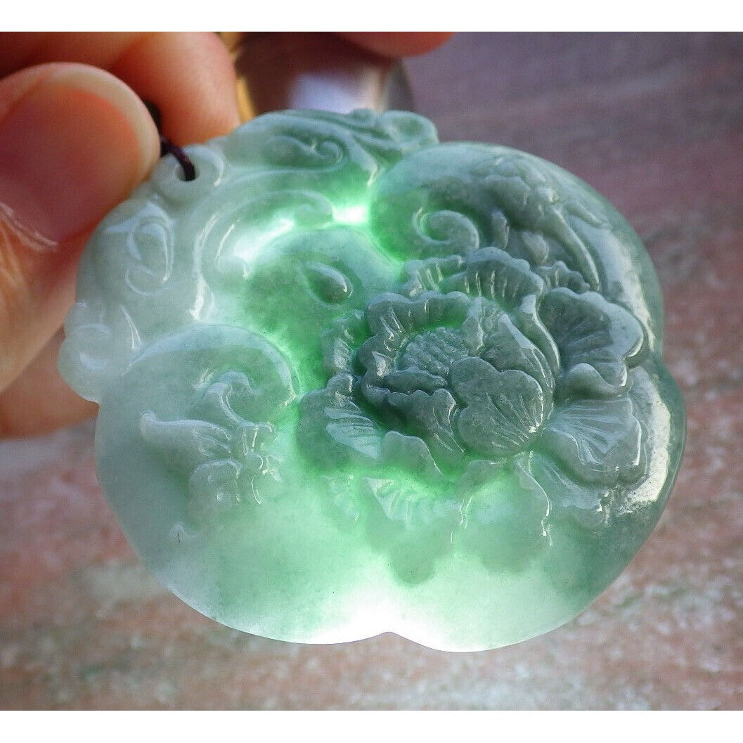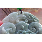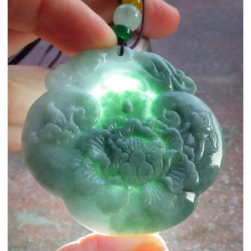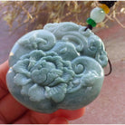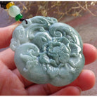Certified Green Burma Natural A Jade Jadeite Pendant Dragon Ruyi Flower