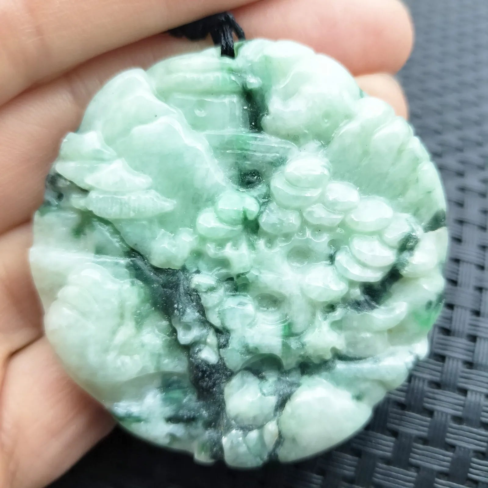 Certified Green Lavender Natural A Jade Jadeite Pendant Landscape Painting Necklace