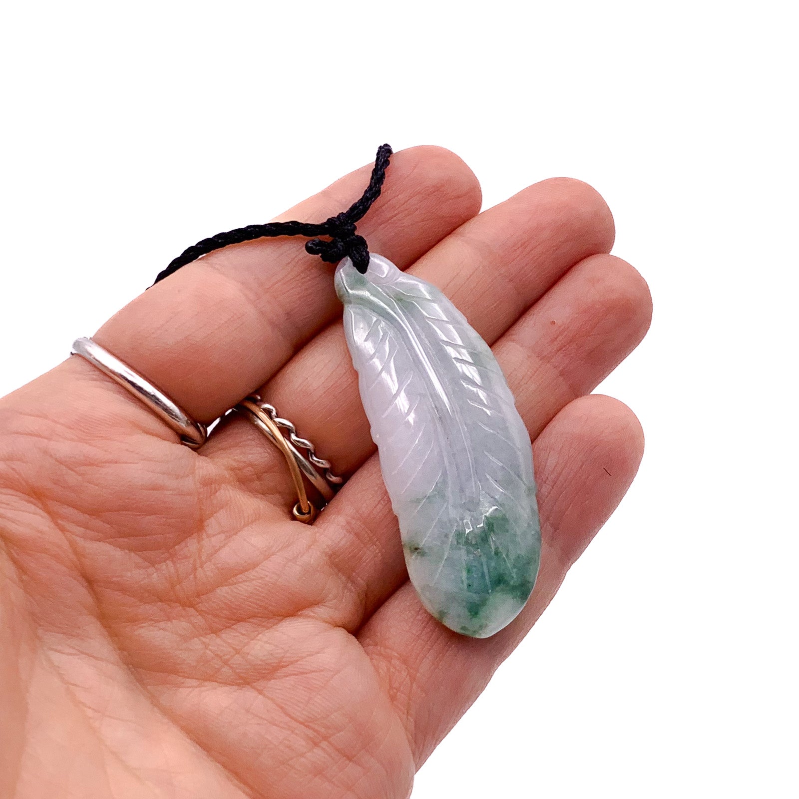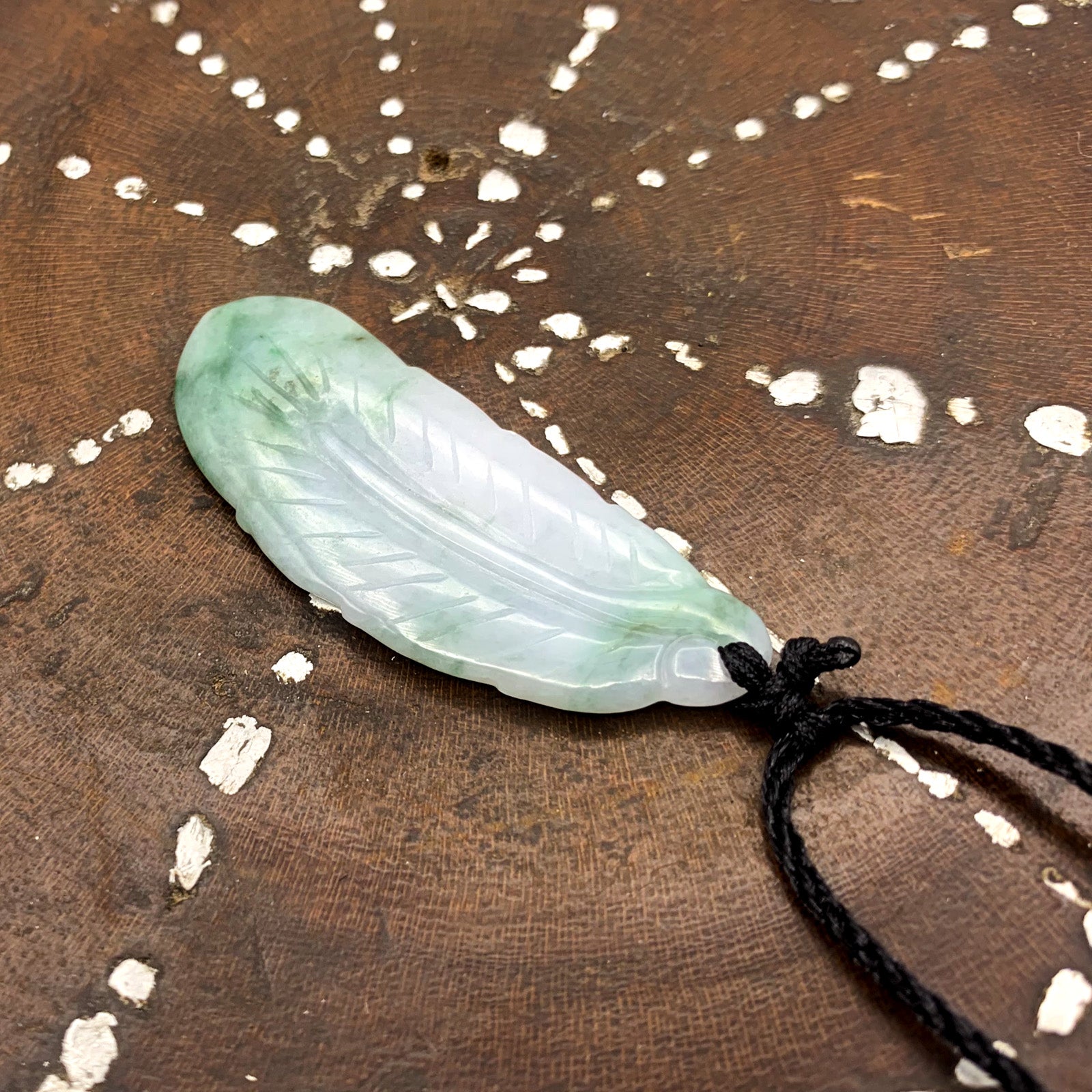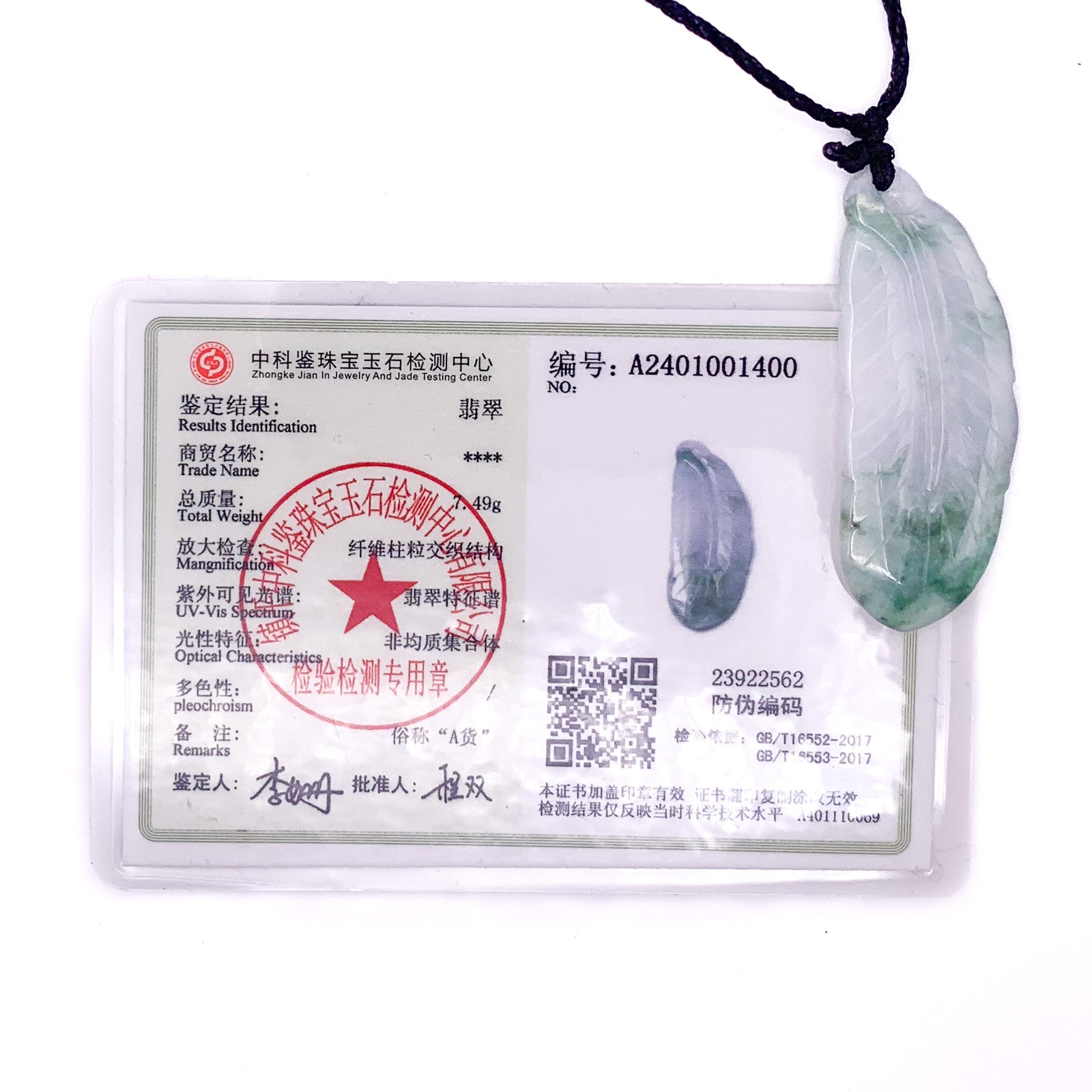 Certified Green Lavender Natural Type A Jade Jadeite Carved Feather Pendant