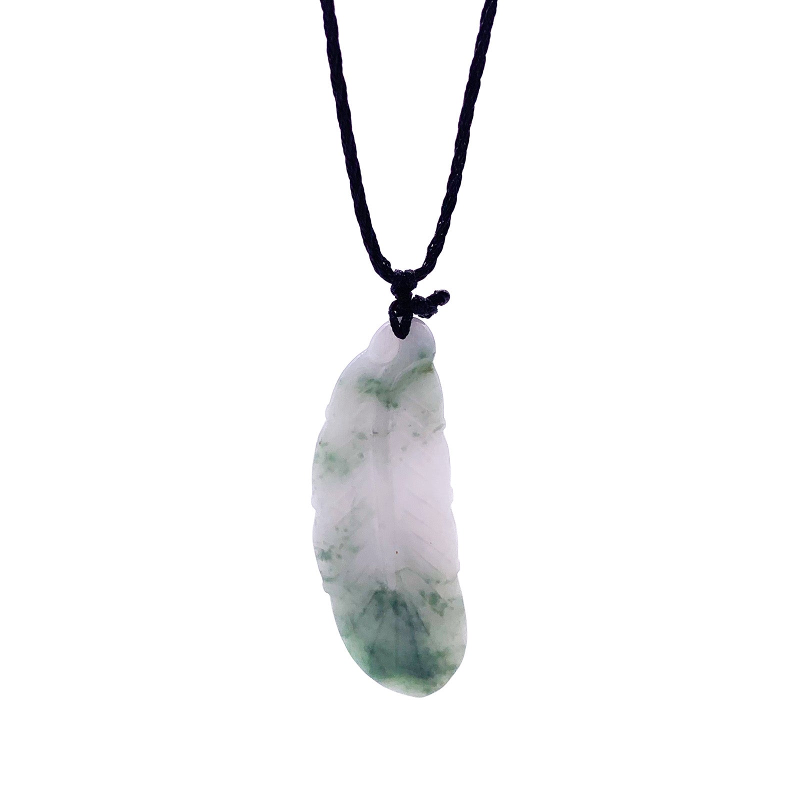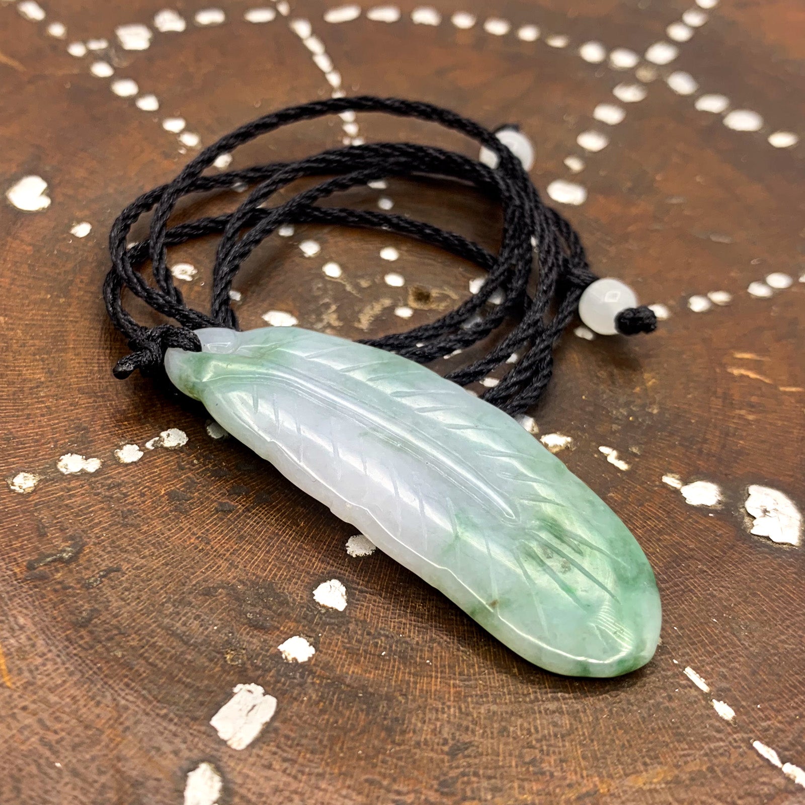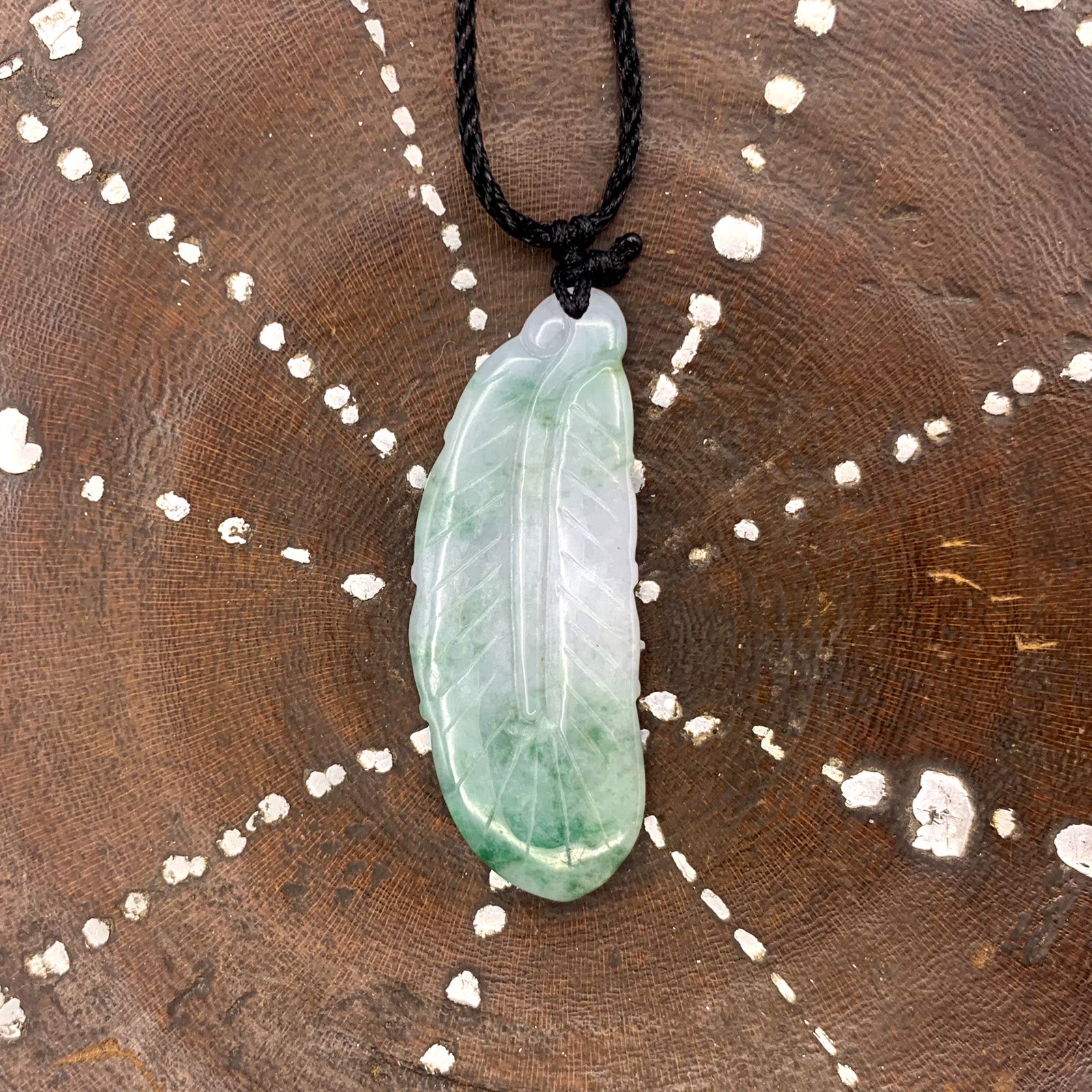 Certified Green Lavender Natural Type A Jade Jadeite Carved Feather Pendant