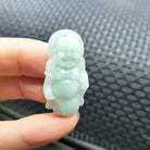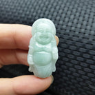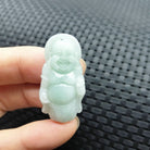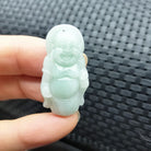 Certified Green Lavender Natural Type A Jadeite Carved Happy Buddha God Pendant