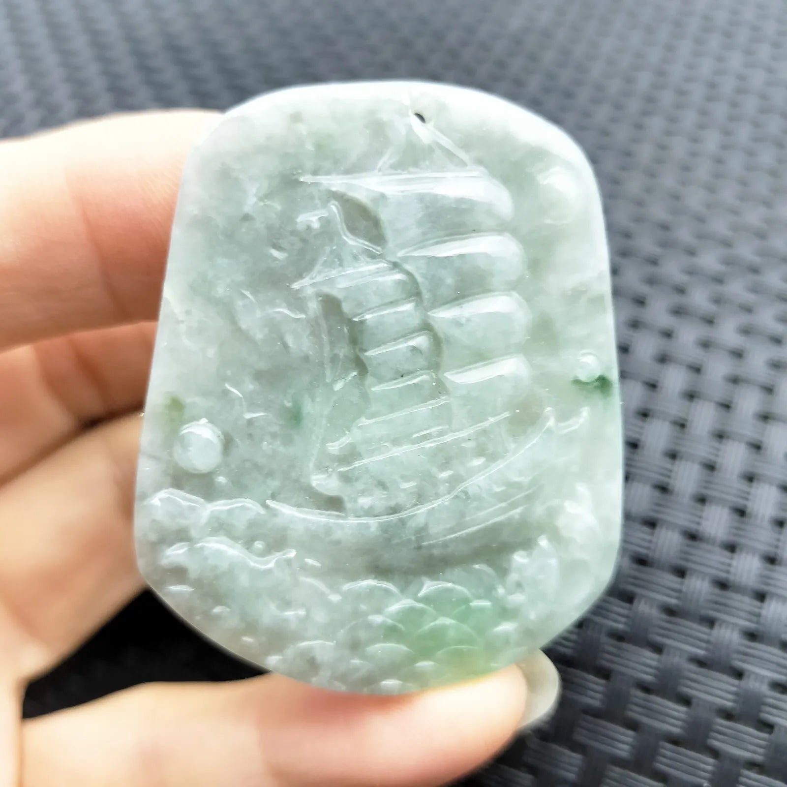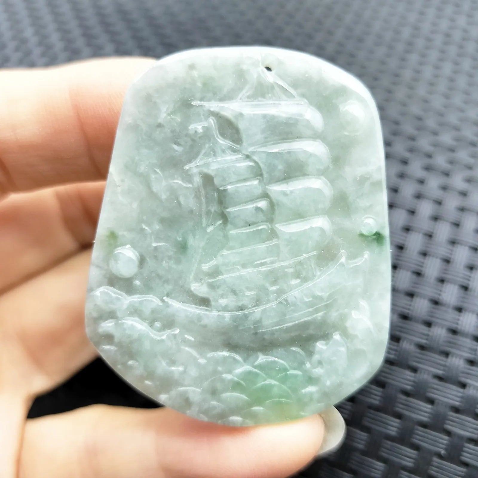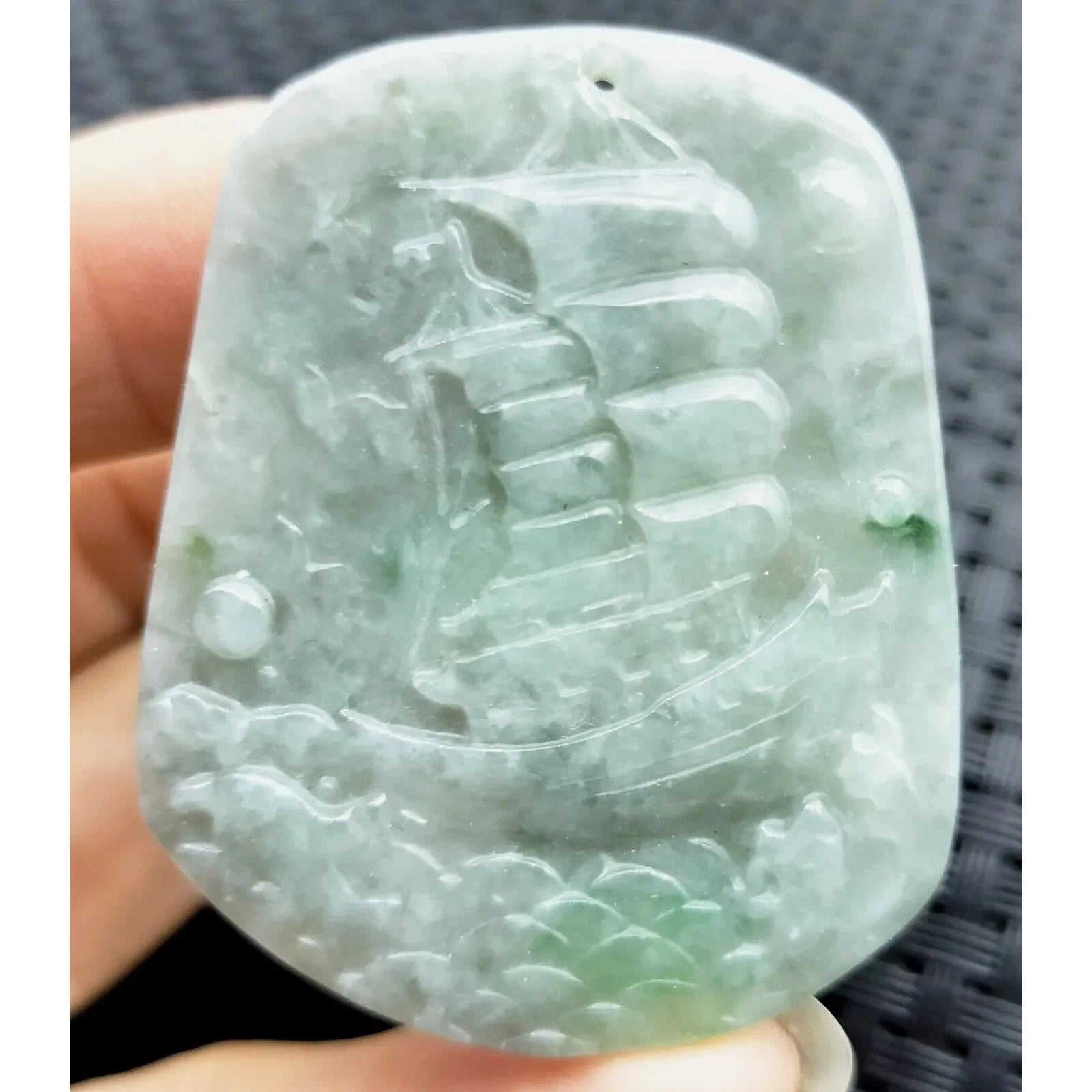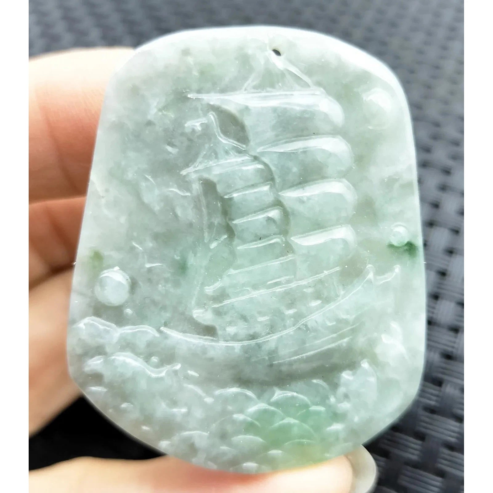 • Certified Green Lavender Natural Type A Jadeite Carved Ship Bird Pendant