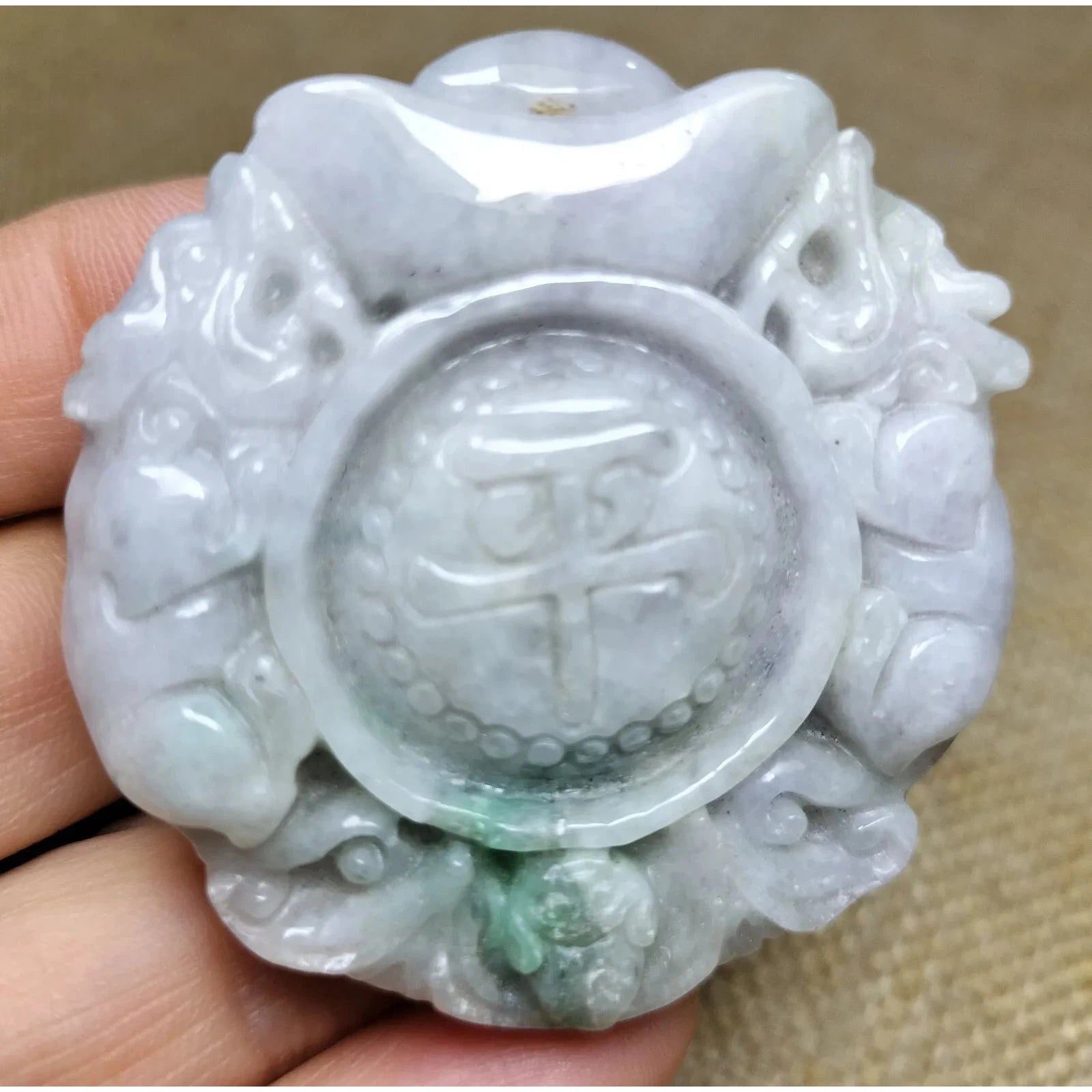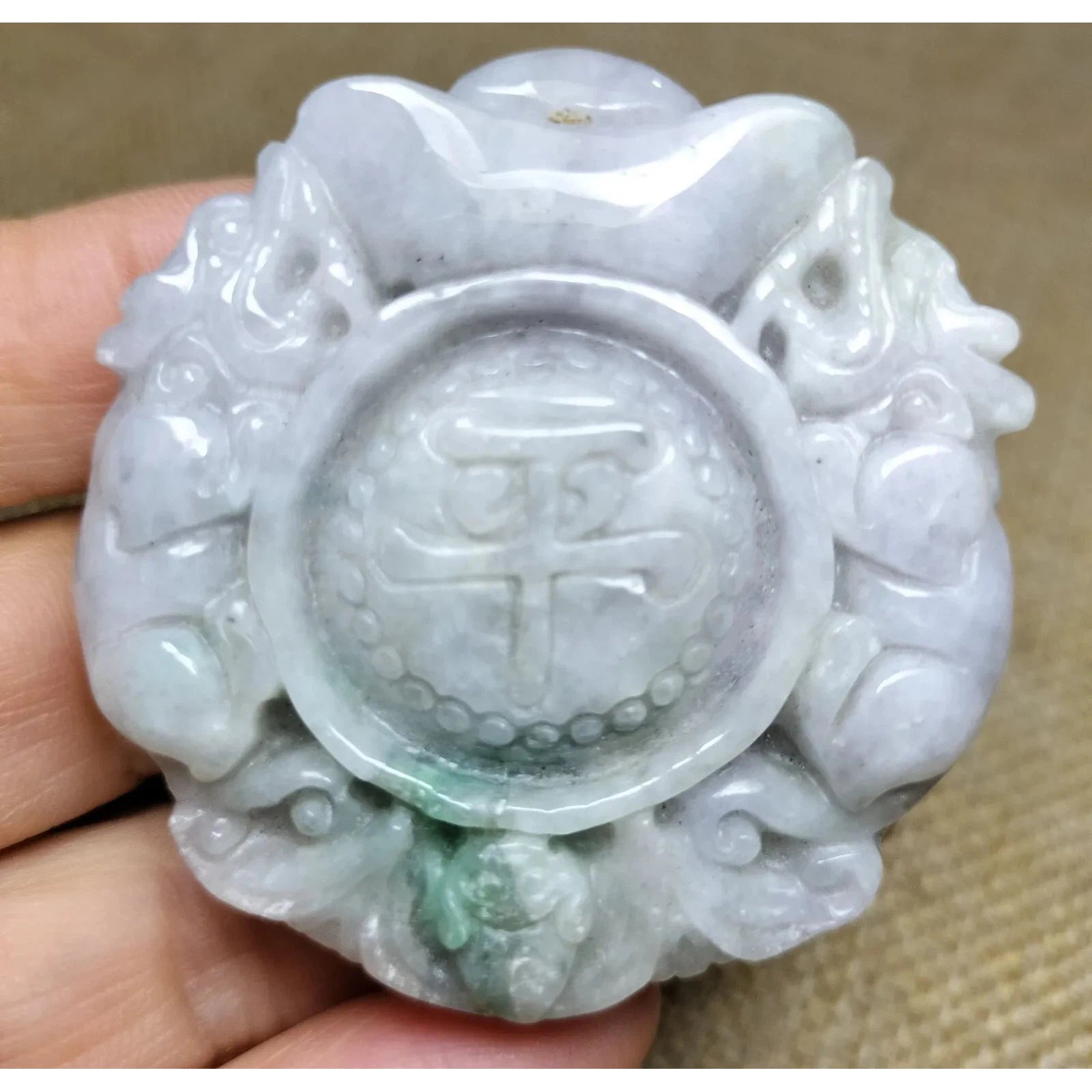 • Certified Green Lavender Natural Type A Jadeite Dragon Bat YuanBao Safe Pendant