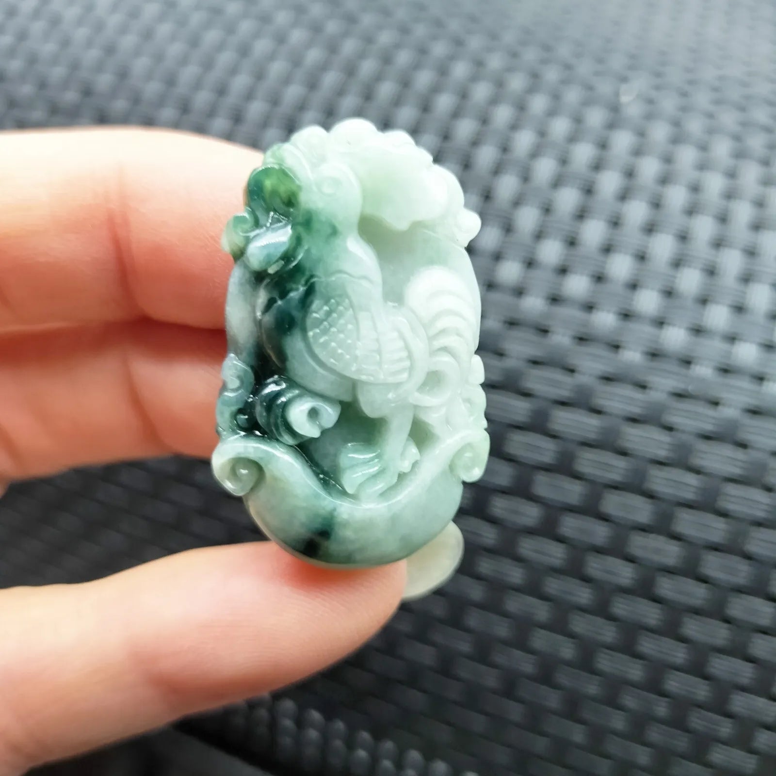 Certified Green Lavender Natural Type A Jadeite Rooster Cock Hen YuanBao Pendant