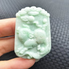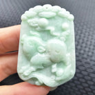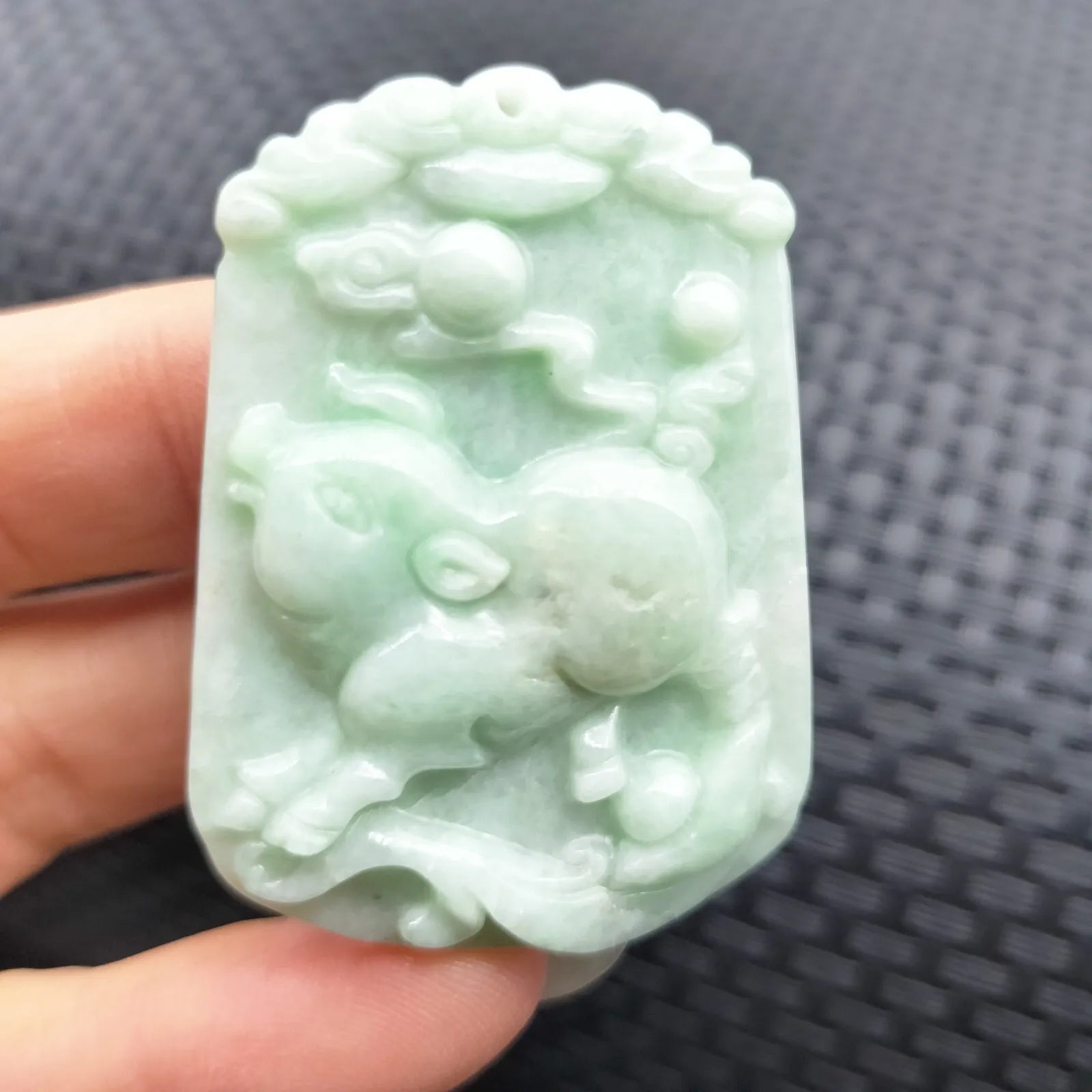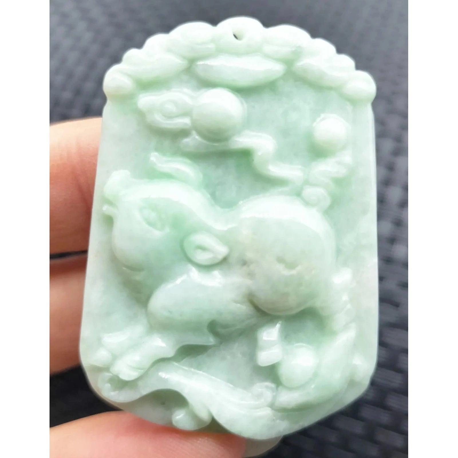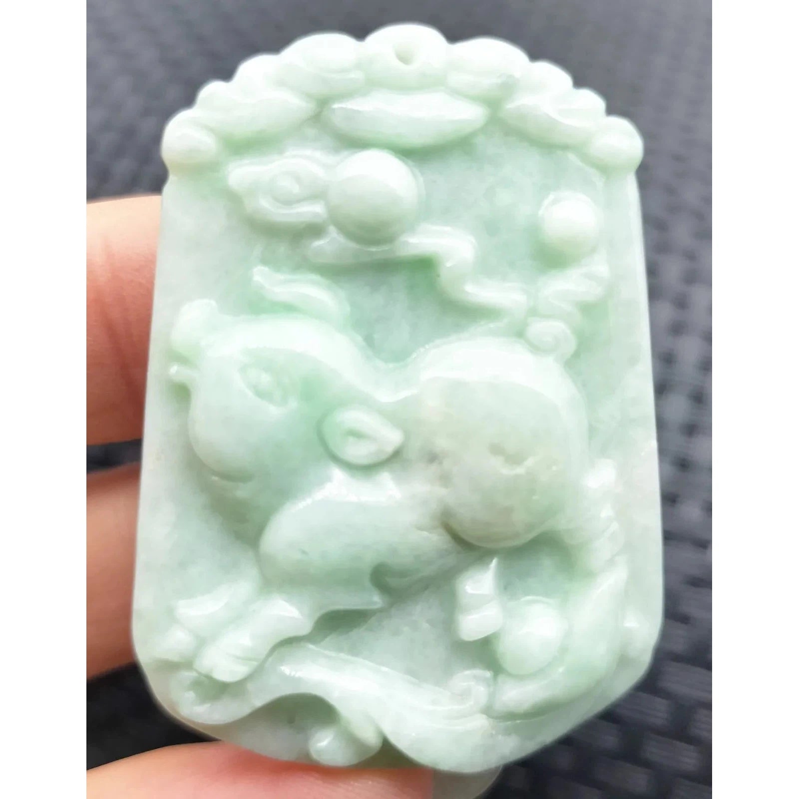 Certified Green Natural Jade Jadeite Carved Pig Ruyi YuanBao Pendant Grade A