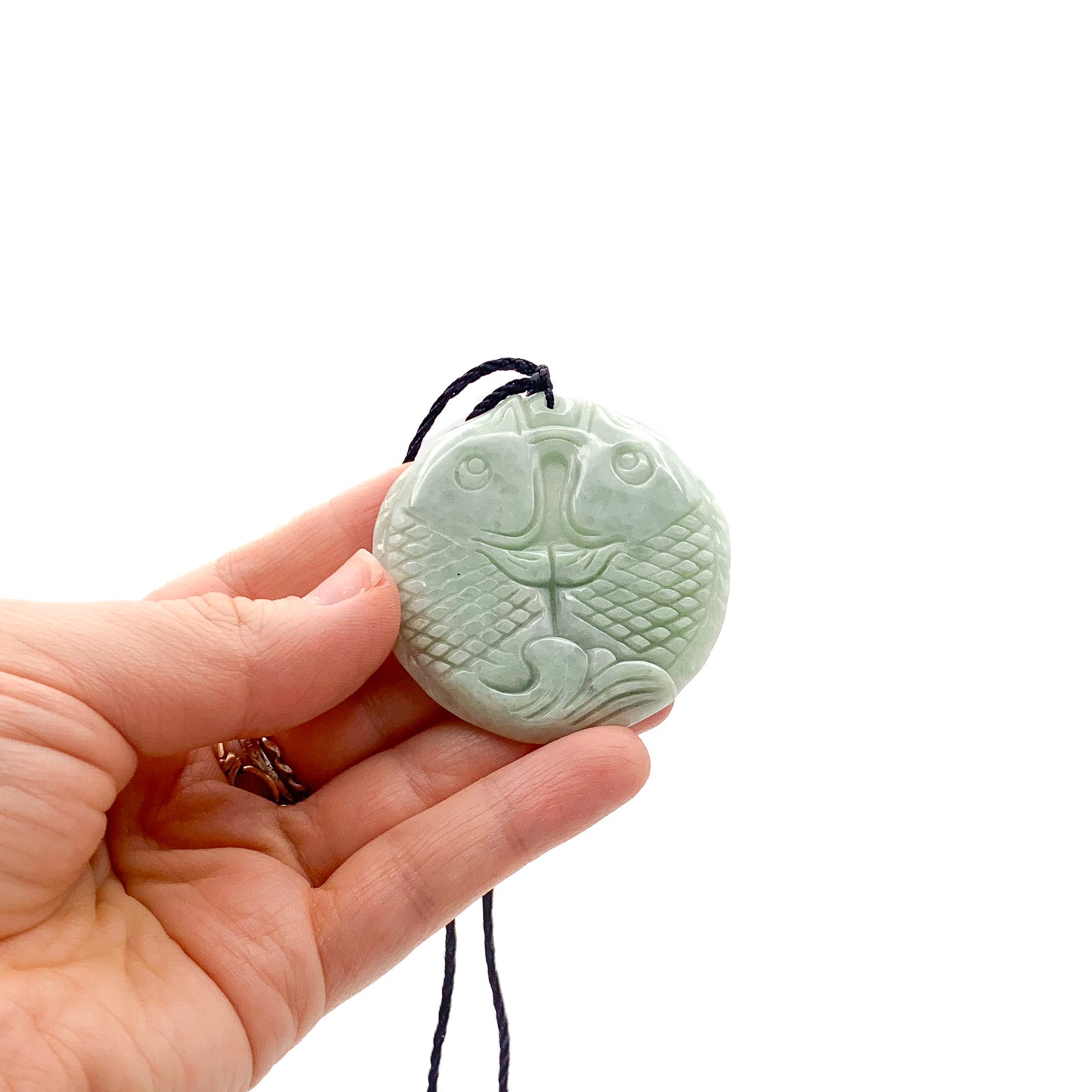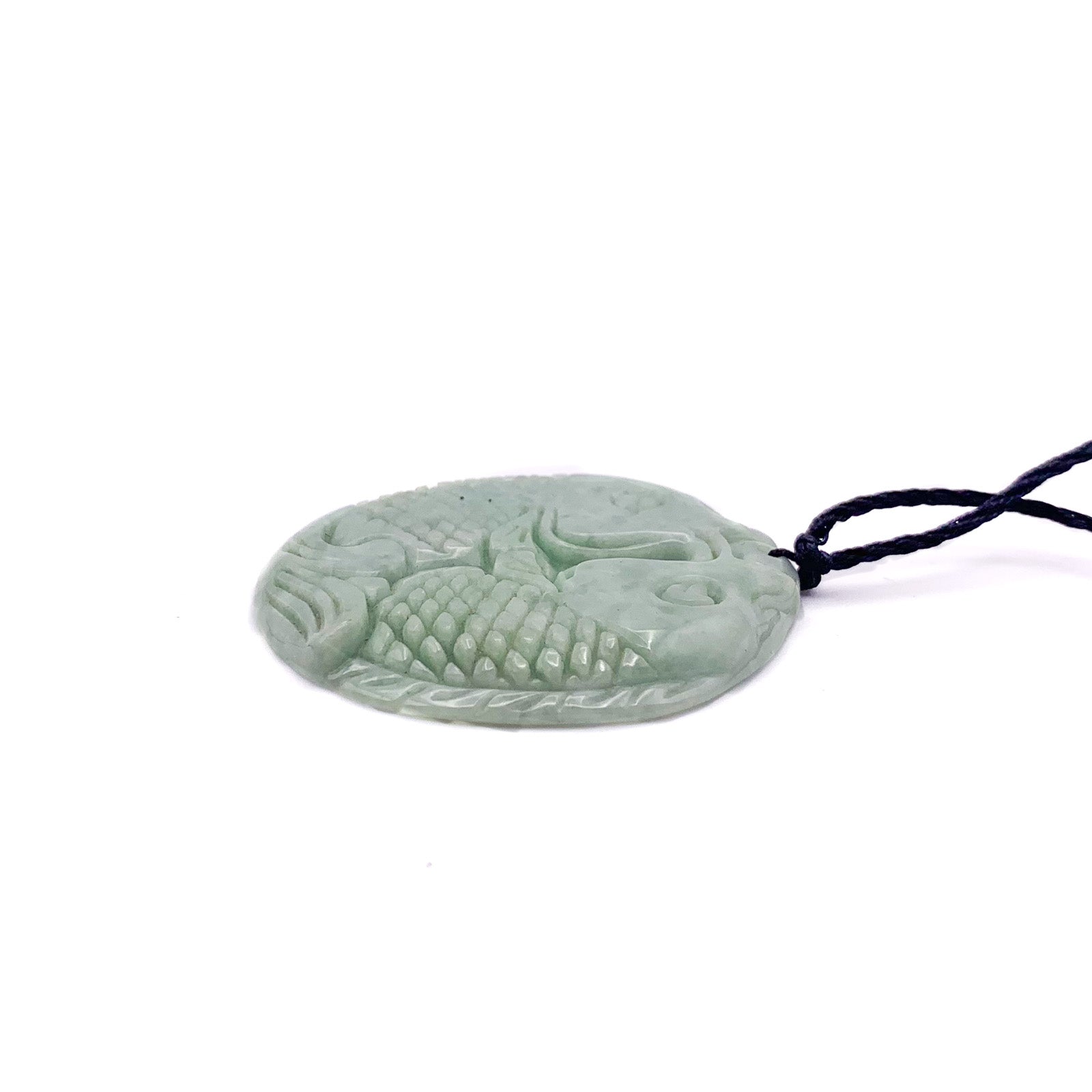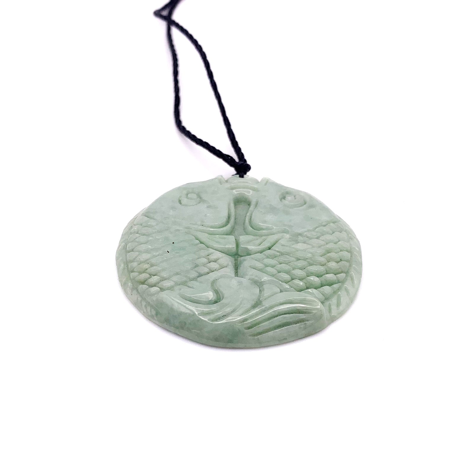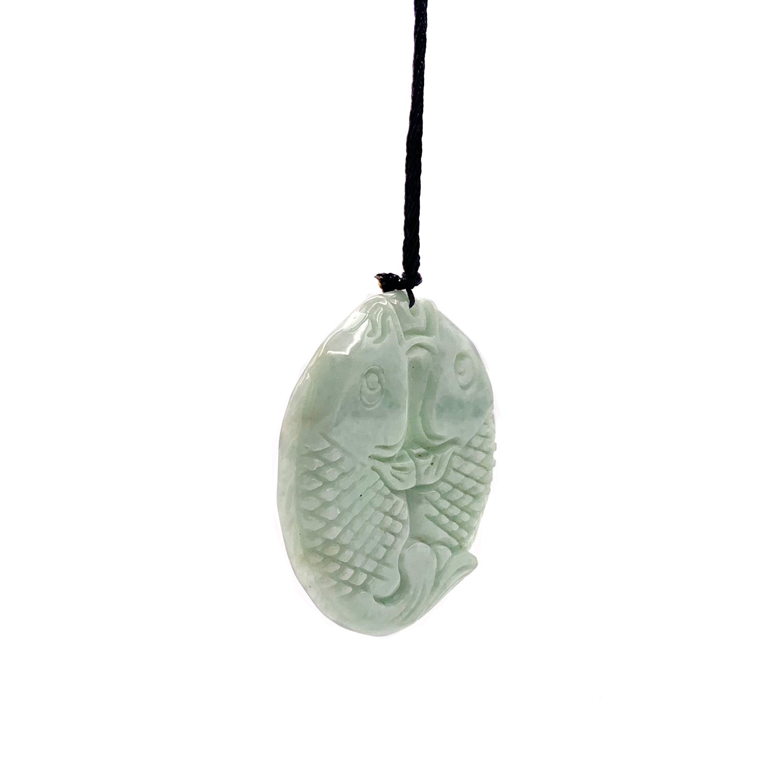 • Certified Green Natural Jade Jadeite Carved Double Fish Happiness in Marriage Pendant