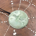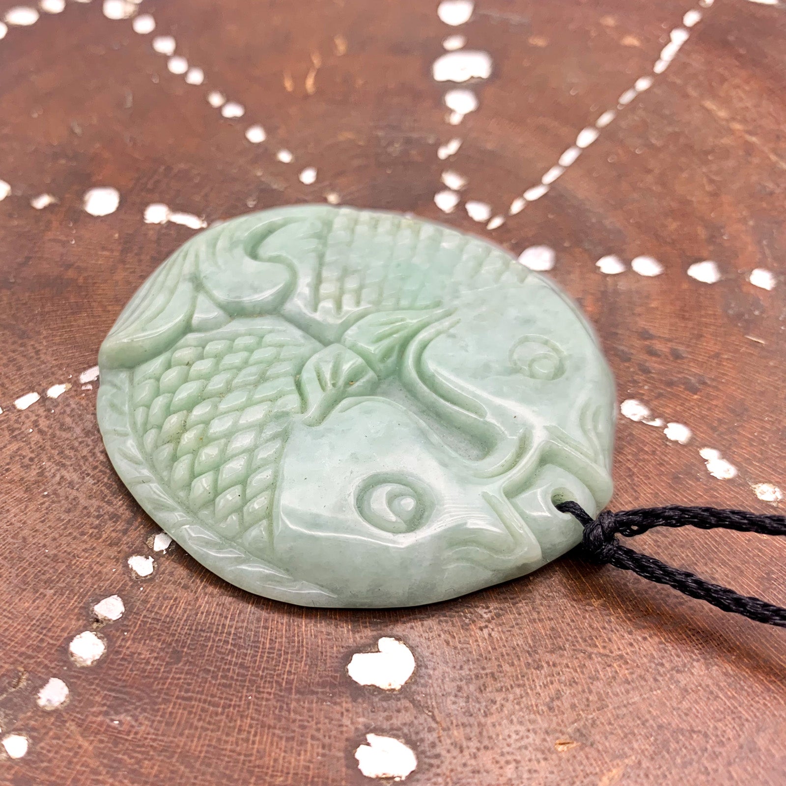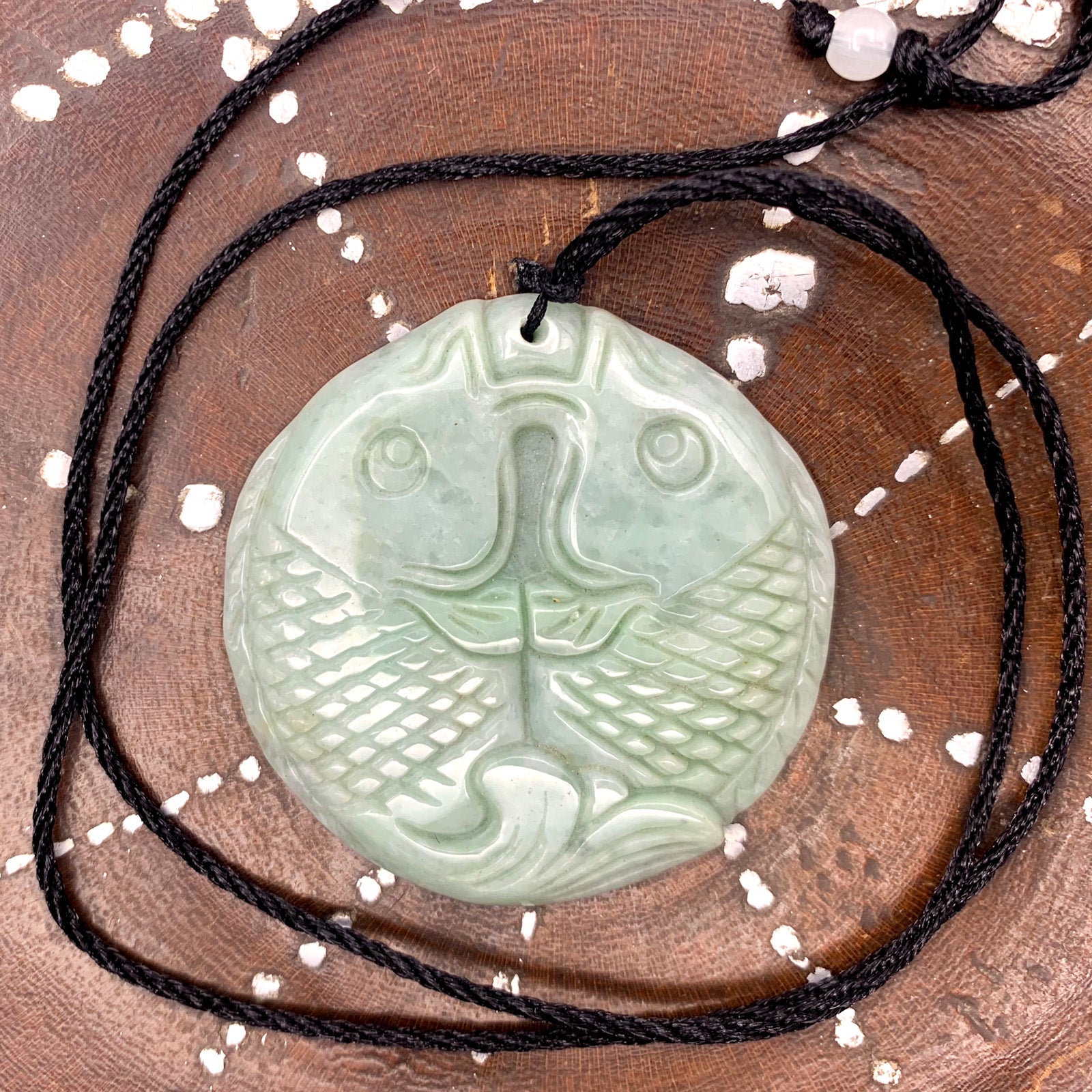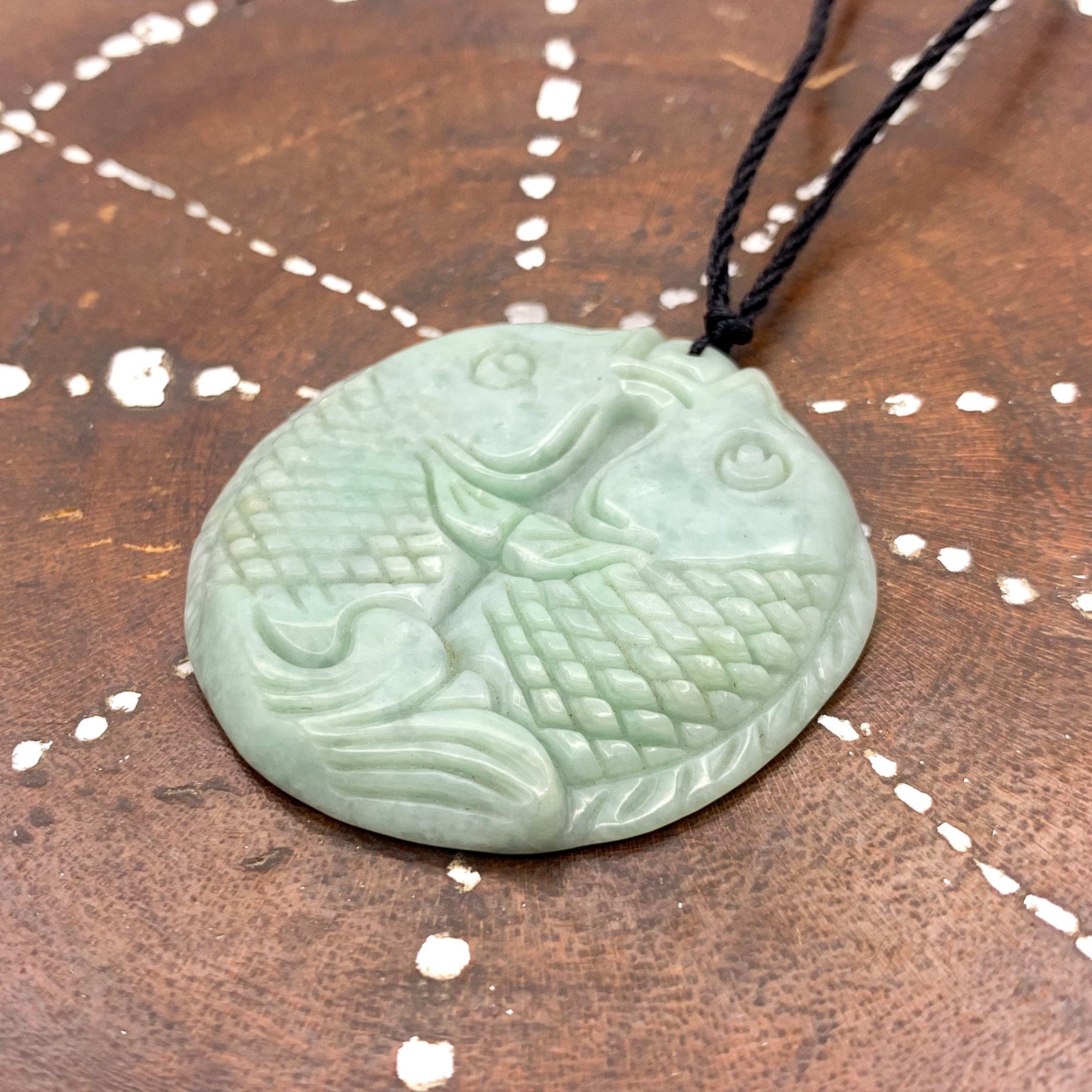 • Certified Green Natural Jade Jadeite Carved Double Fish Happiness in Marriage Pendant