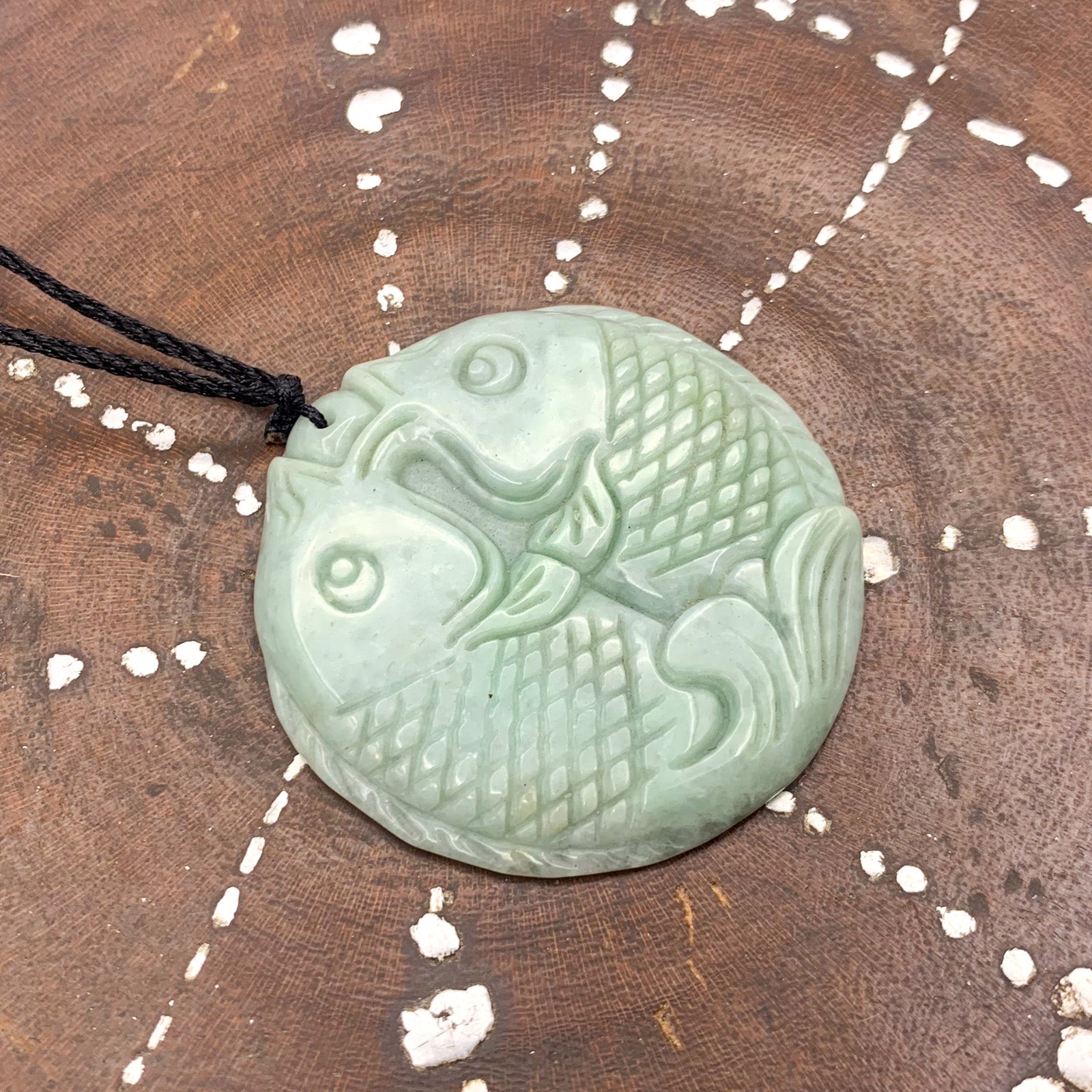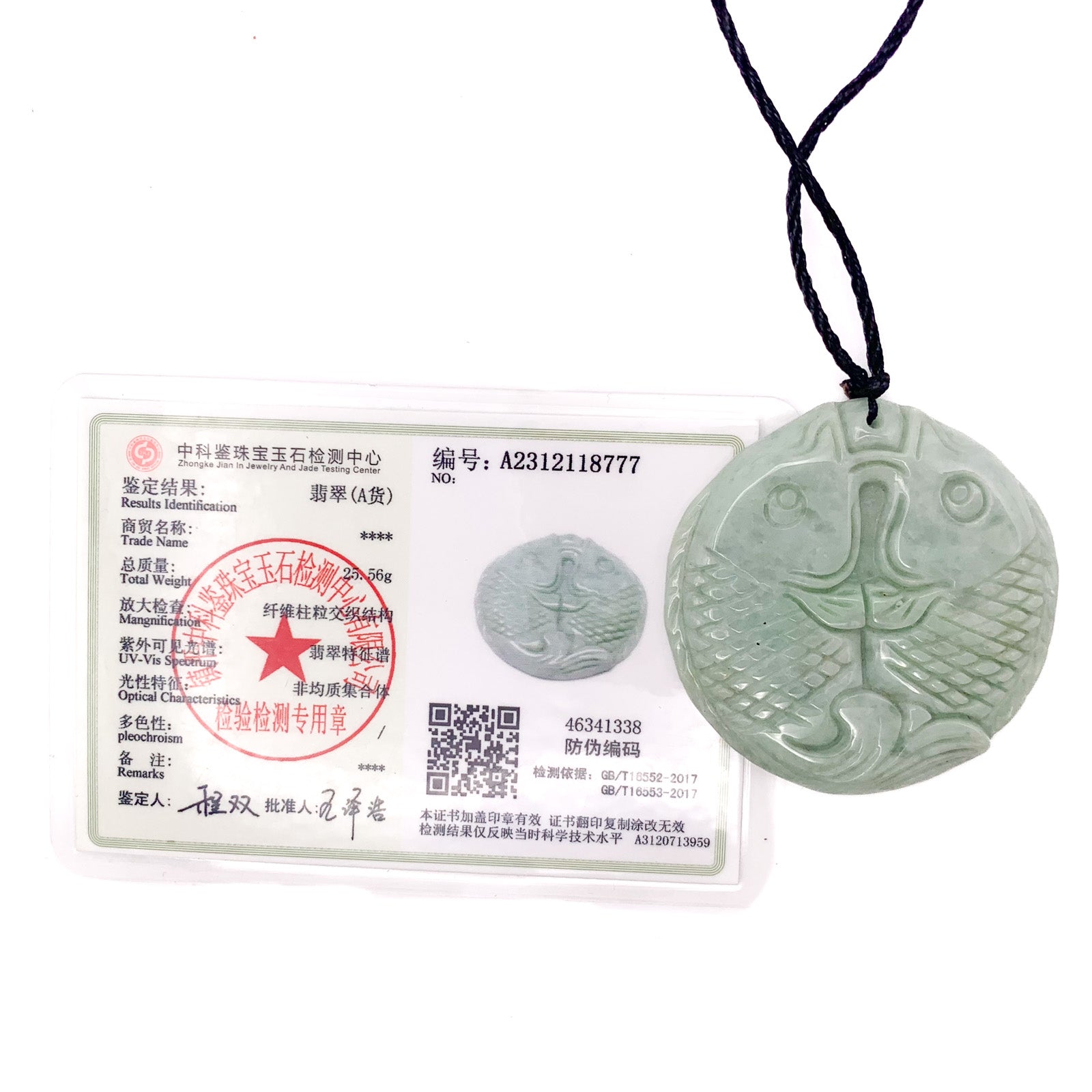 Certified Green Natural Jade Jadeite Carved Double Fish Happiness in Marriage Pendant