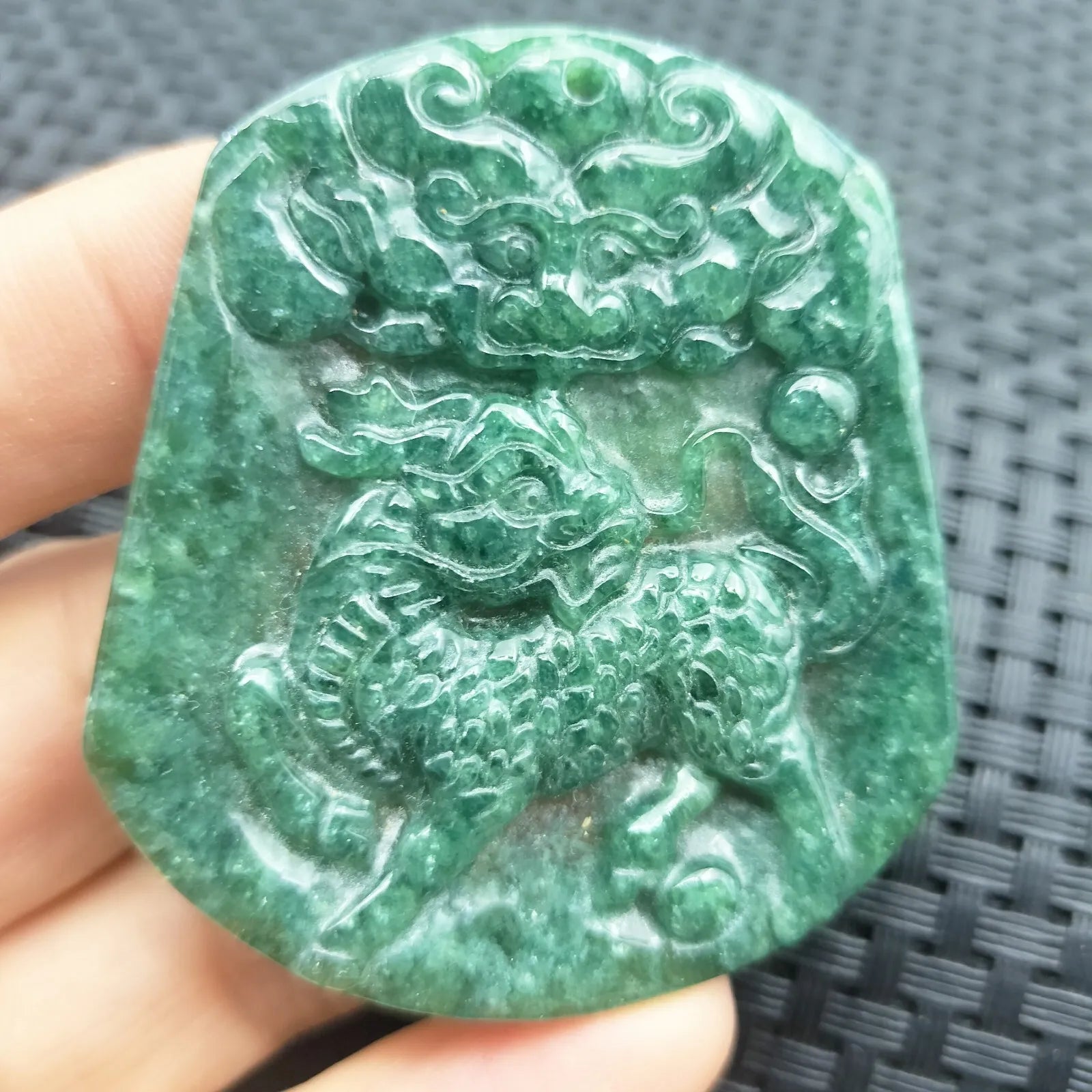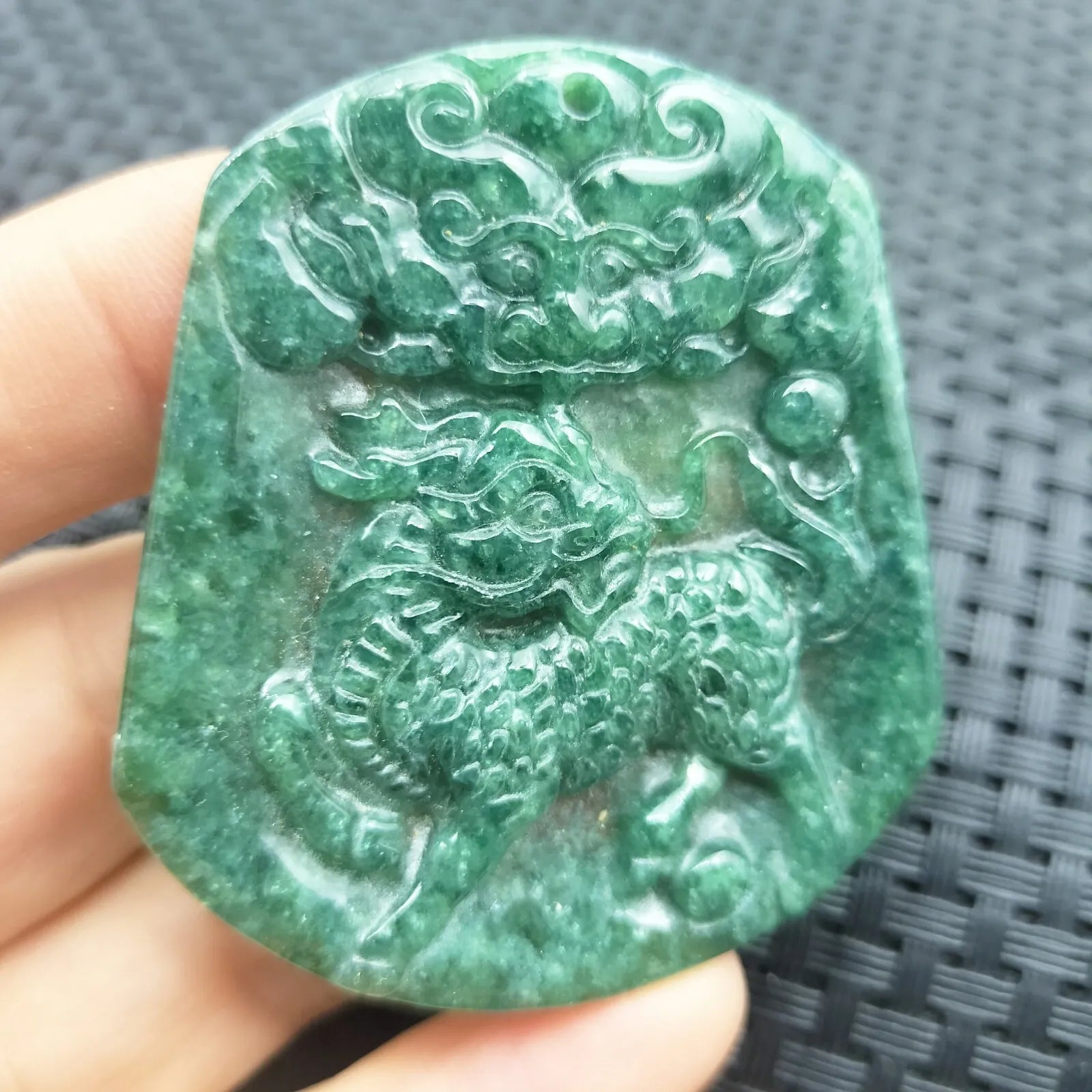 Certified Icy Green Natural Type A Jade Jadeite Carved Kylin Ball Pendant