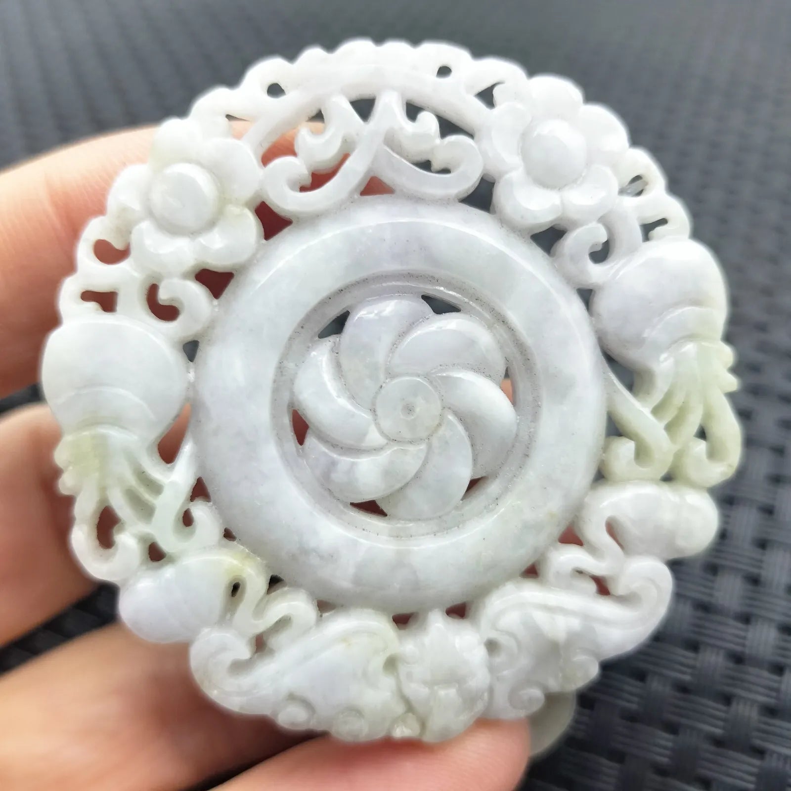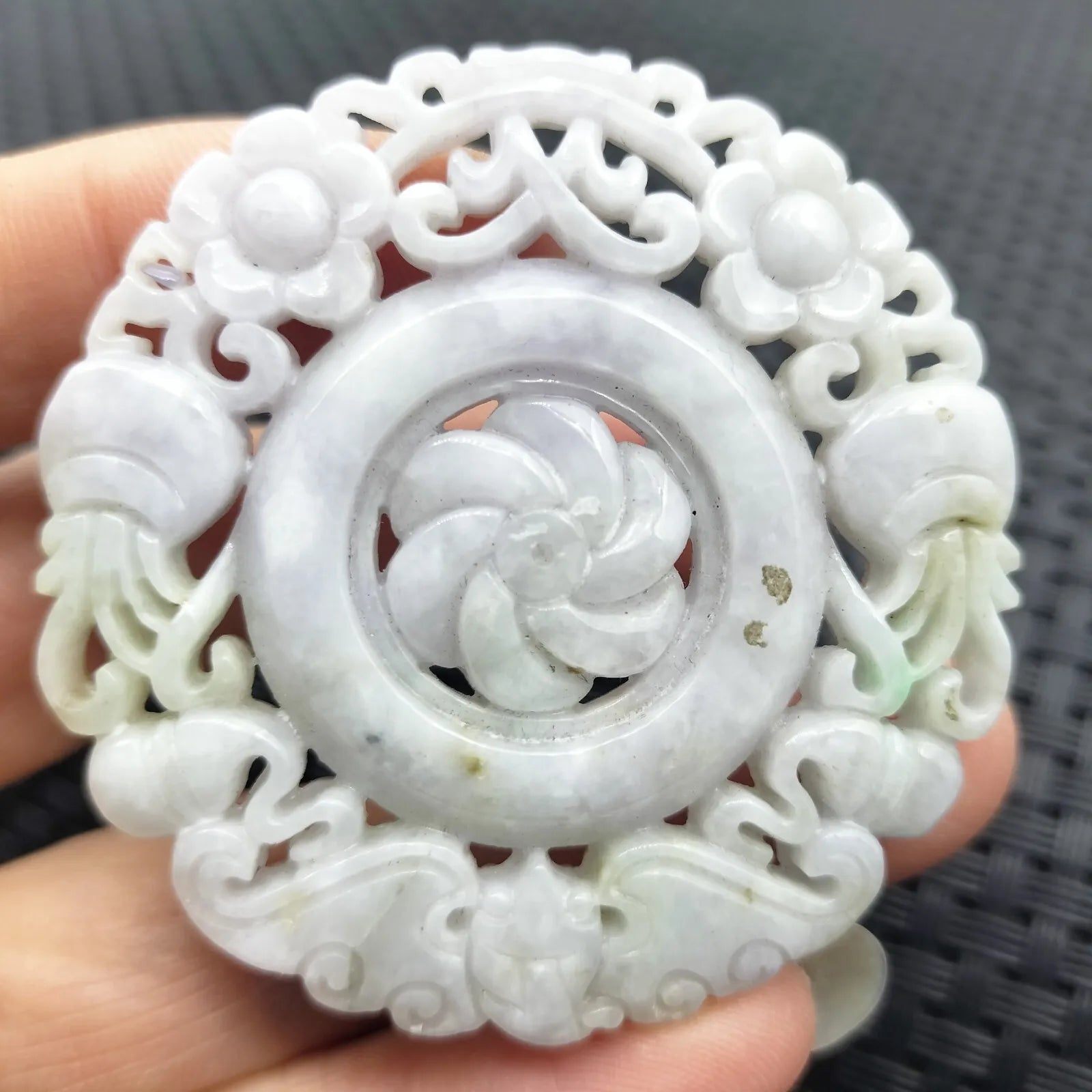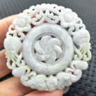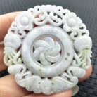 Certified Lavender Natural Type A Jade Jadeite Carved Circle Knotted Bat Pendant