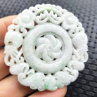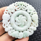 • Certified Lavender Natural Type A Jade Jadeite Carved Circle Knotted Bat Pendant