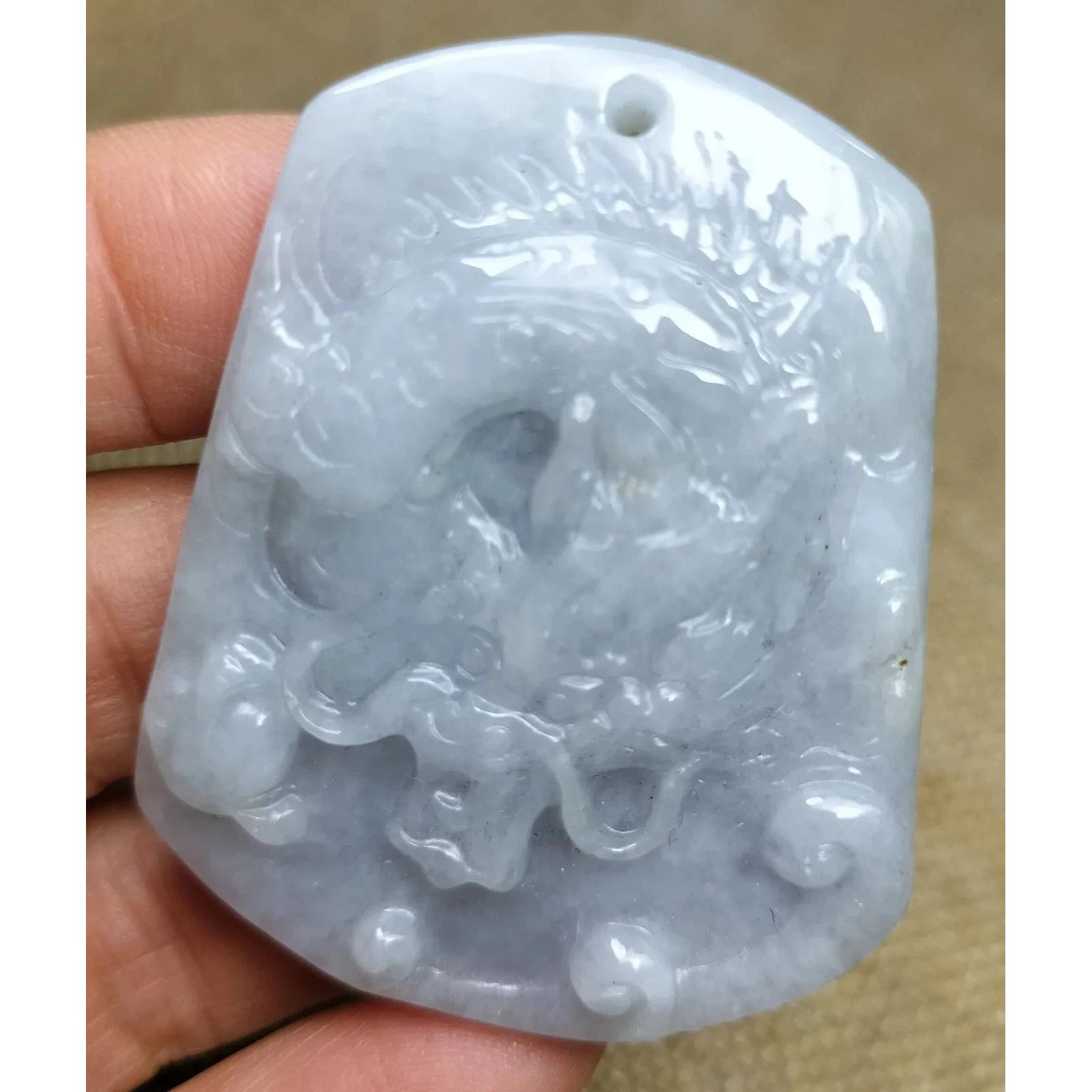 • Certified Lavender Natural Type A Jade Jadeite Carved Dragon Bead Pendant
