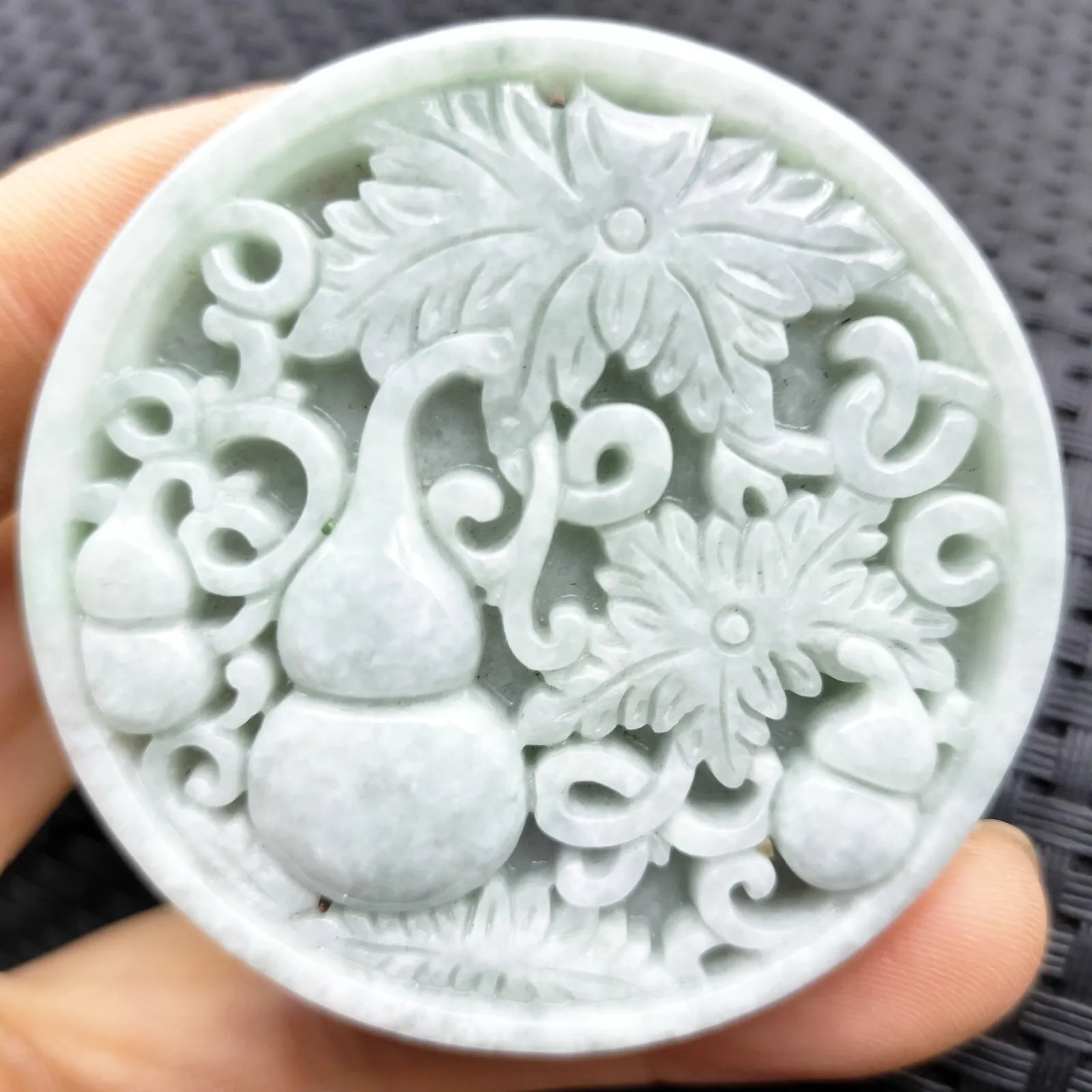 • Certified Lavender Natural Type A Jade Jadeite Carved Gourd Leaf Pendant