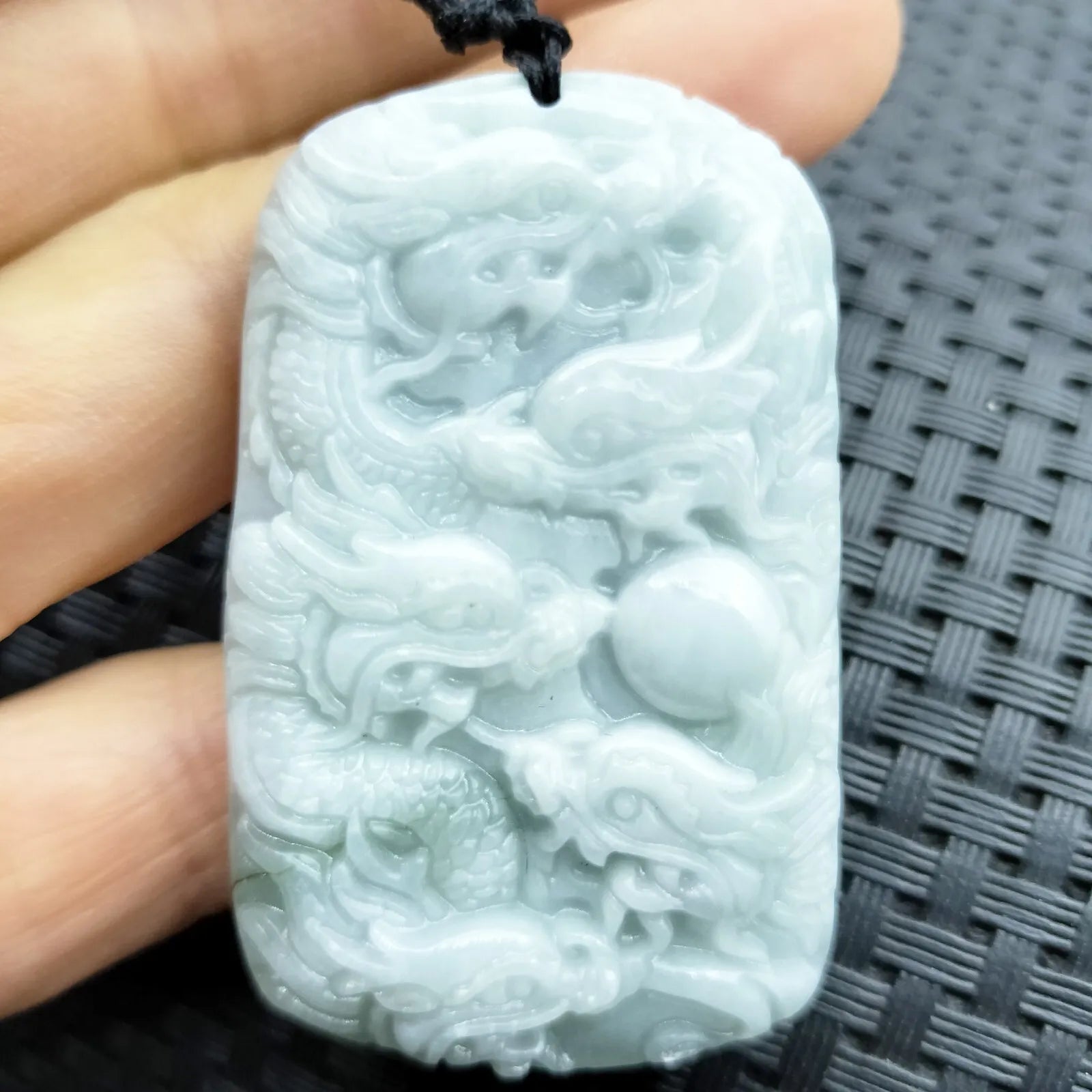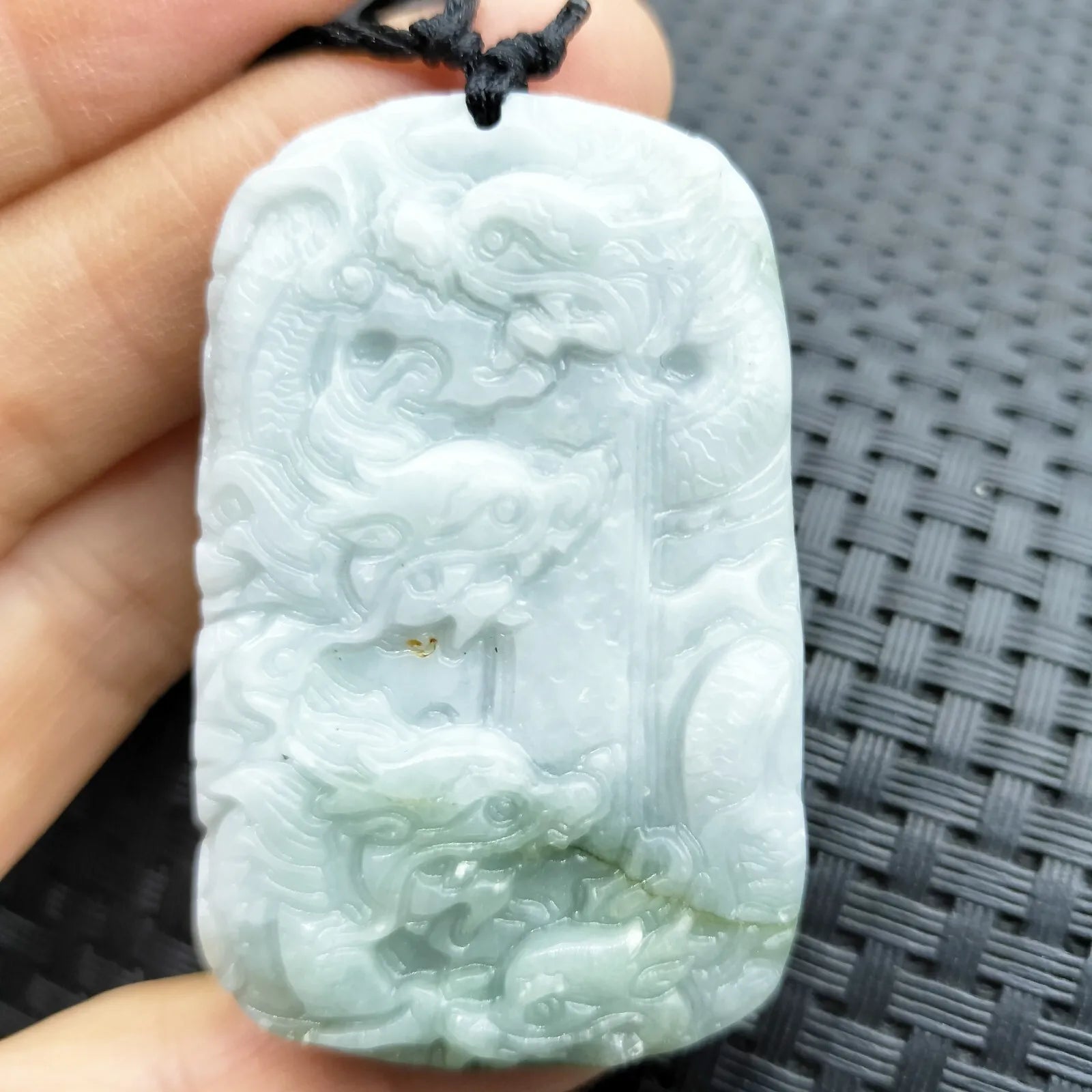 Certified Lavender Natural Type A Jade Jadeite Carved Nine Dragons Bead Pendant