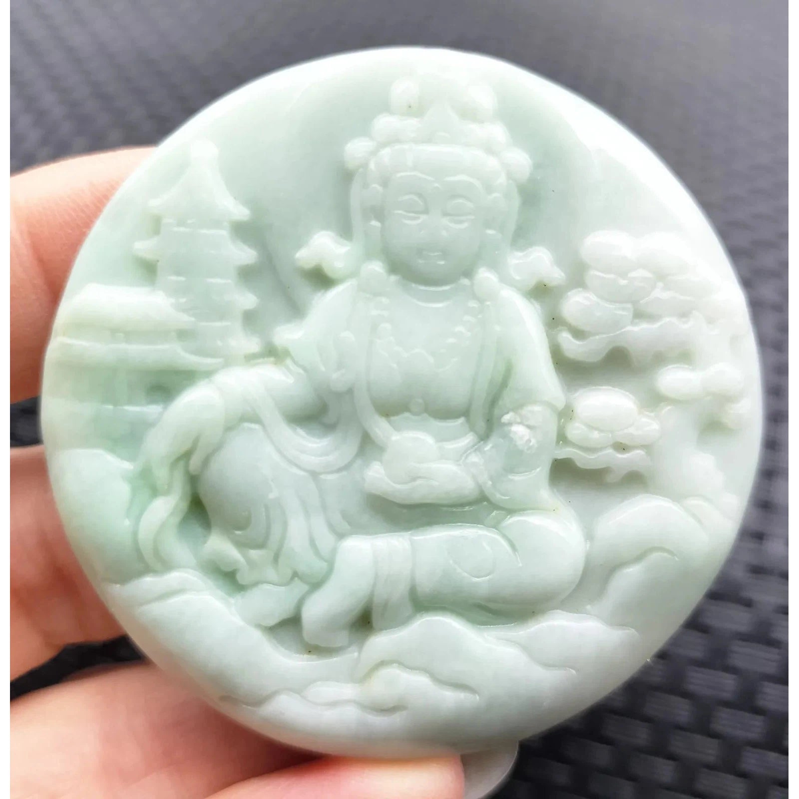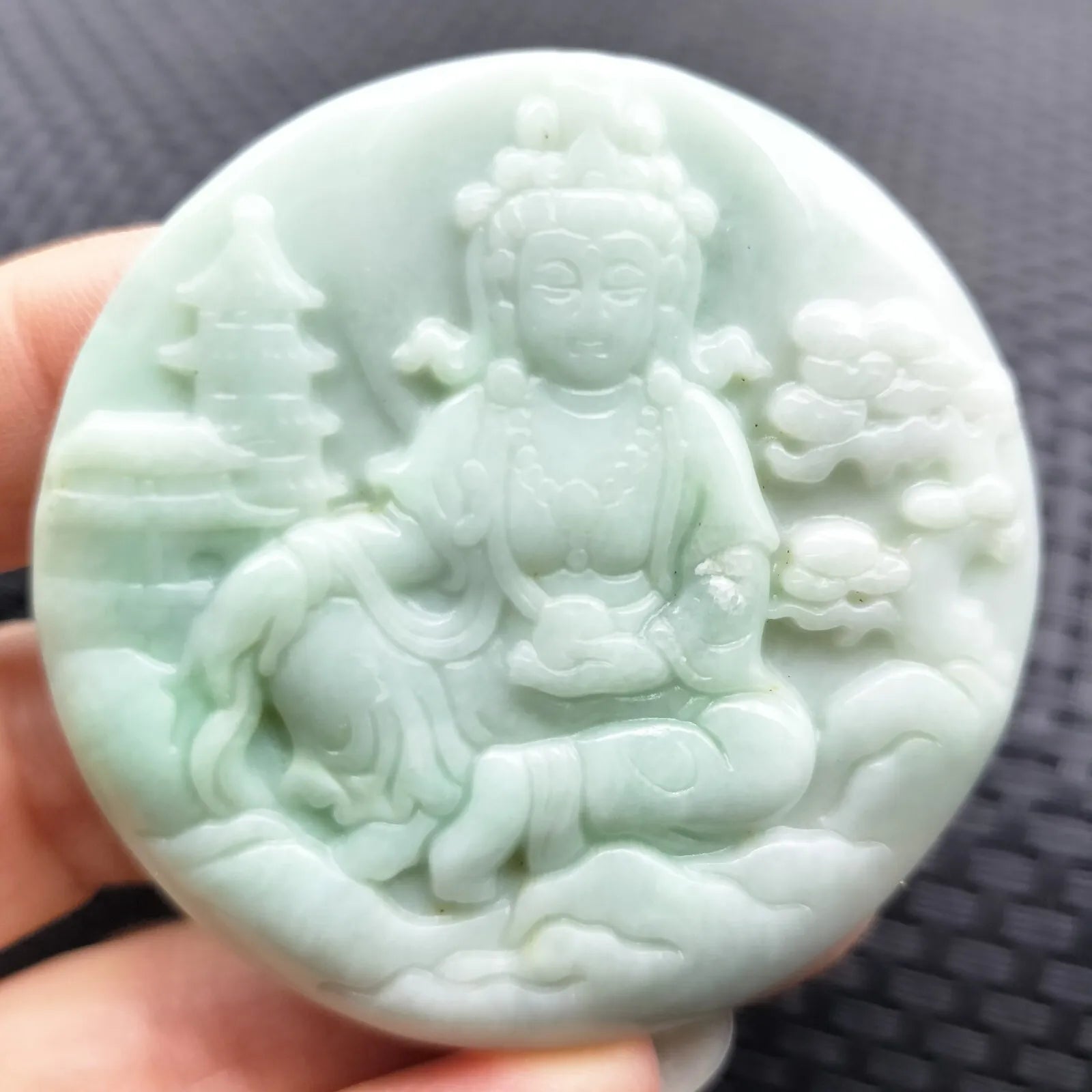 Certified Light Green Natural A Jadeite Carved Guanyin Kwan Yin God Pendant