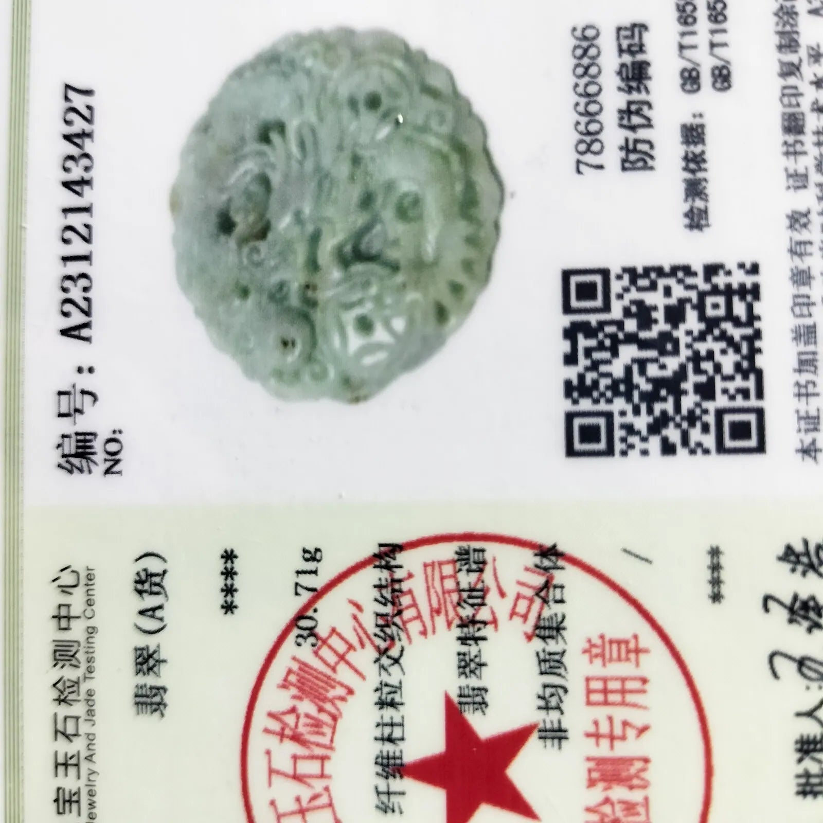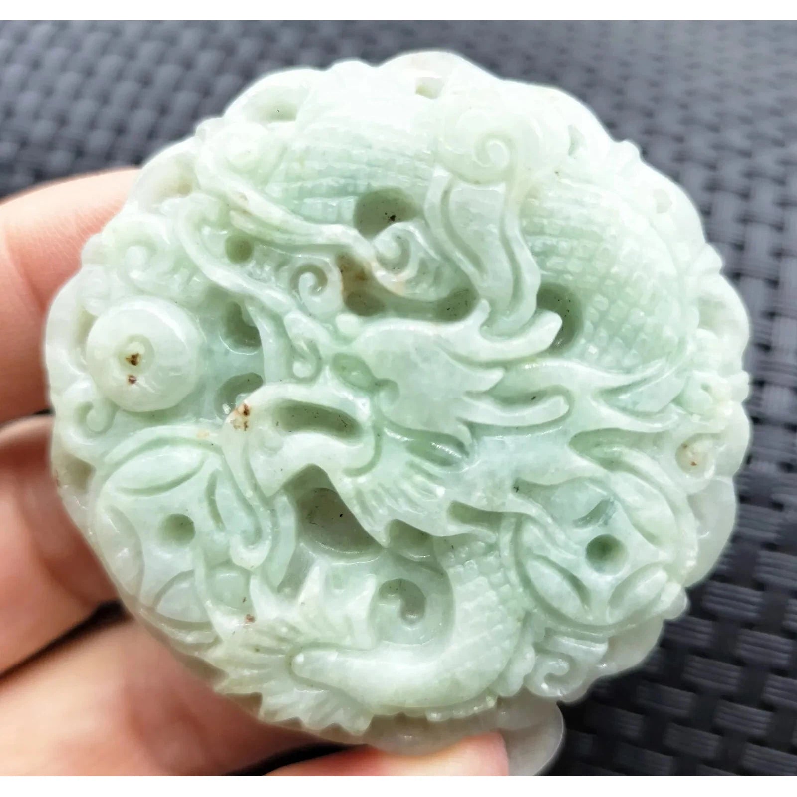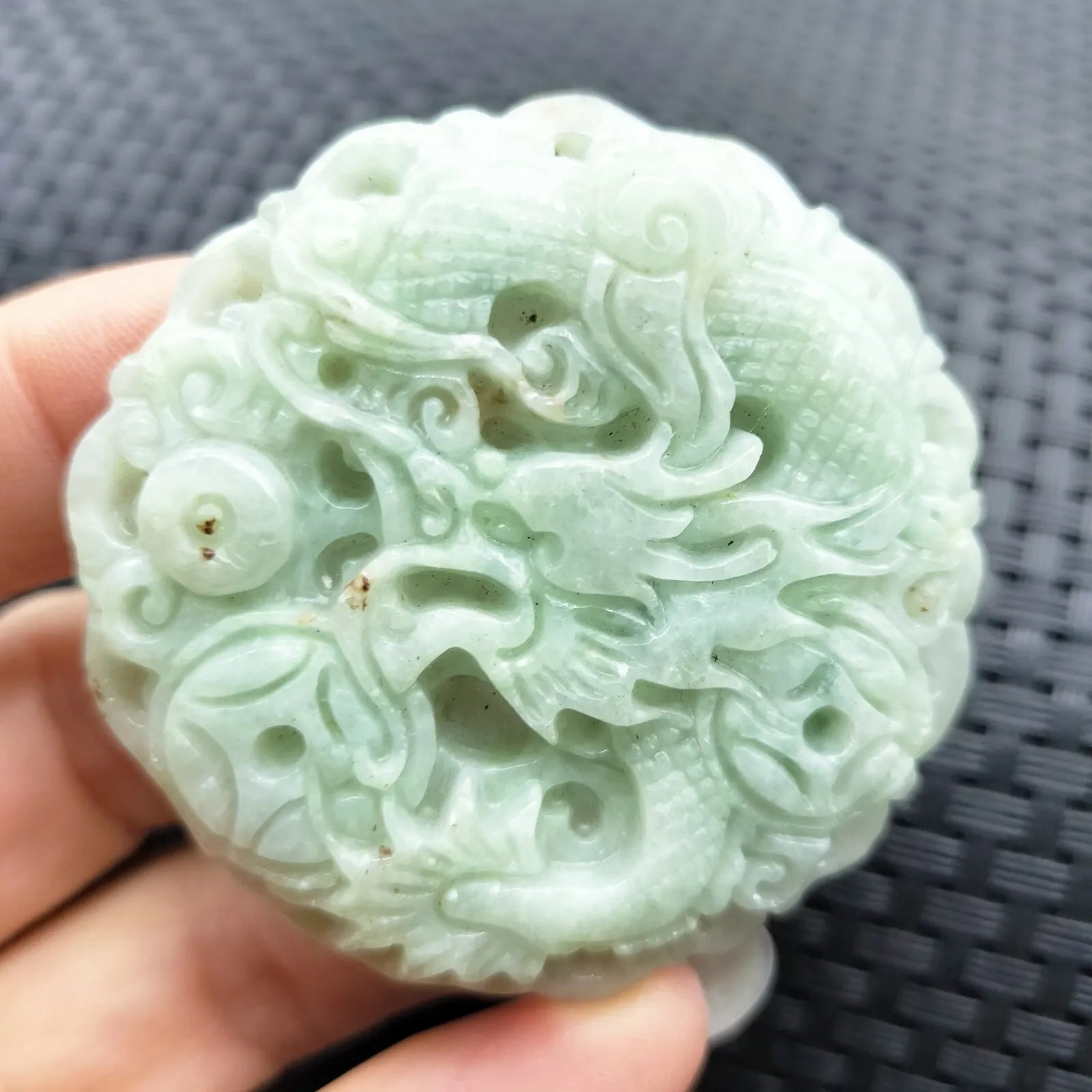 Certified Light Green Natural Type A Jade Jadeite Carved Dragon Coin Pendant