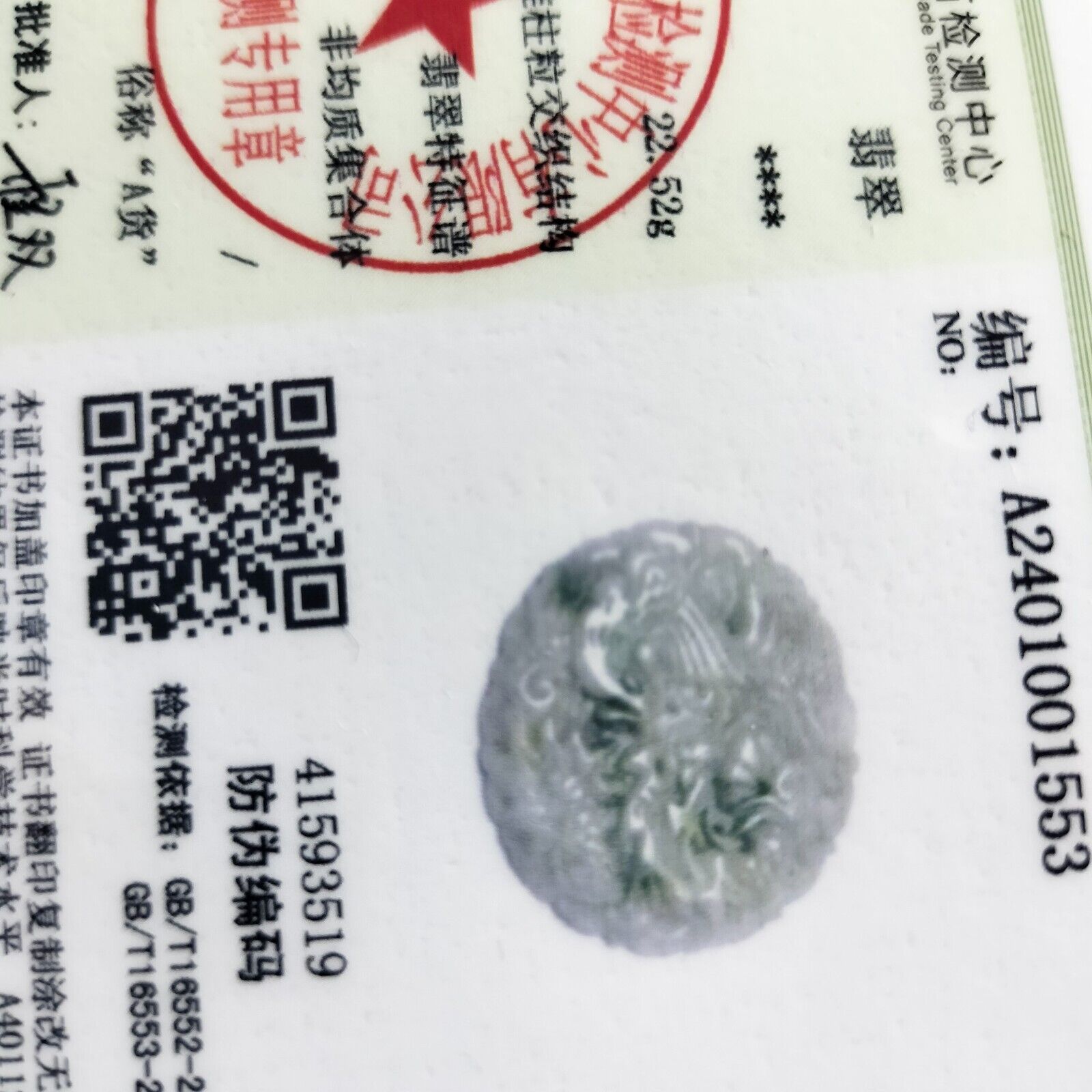 Certified Light Green Natural Type A Jade Jadeite Carved Dragon Phoenix Pendant